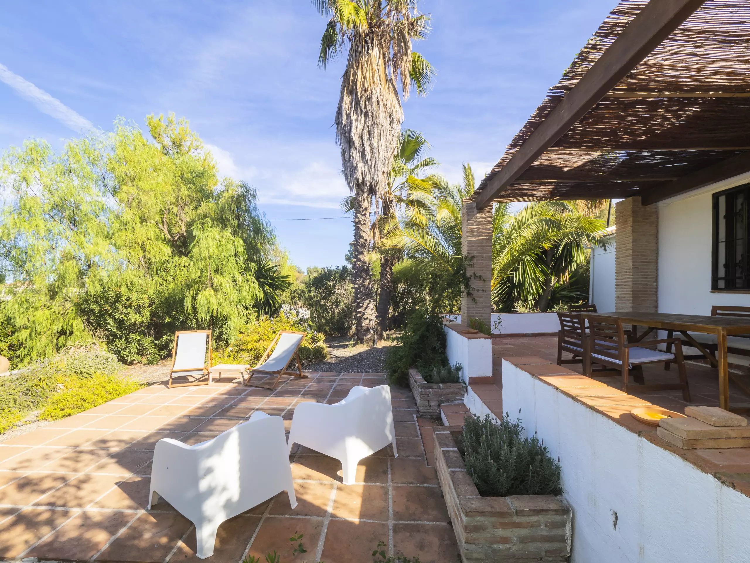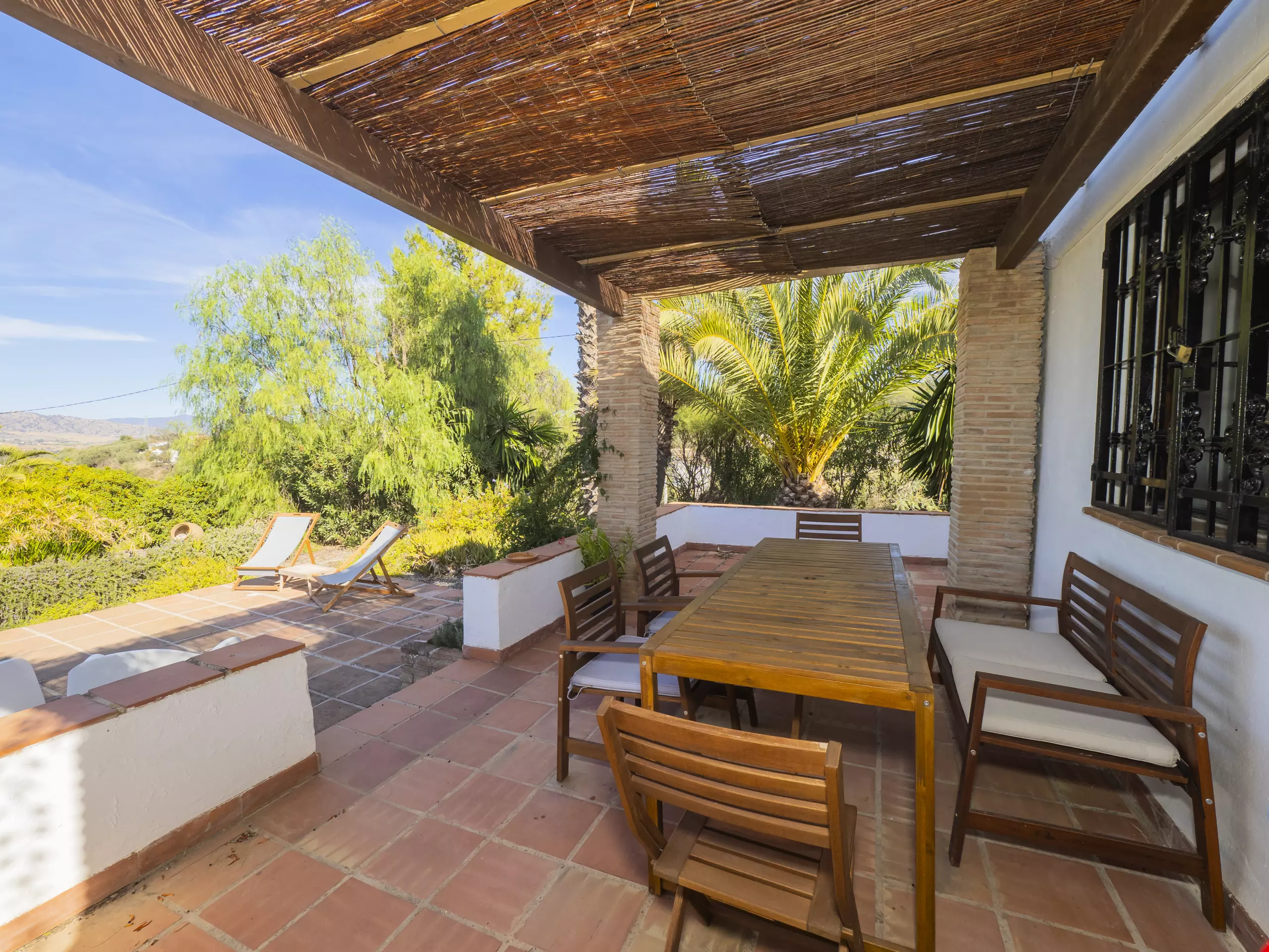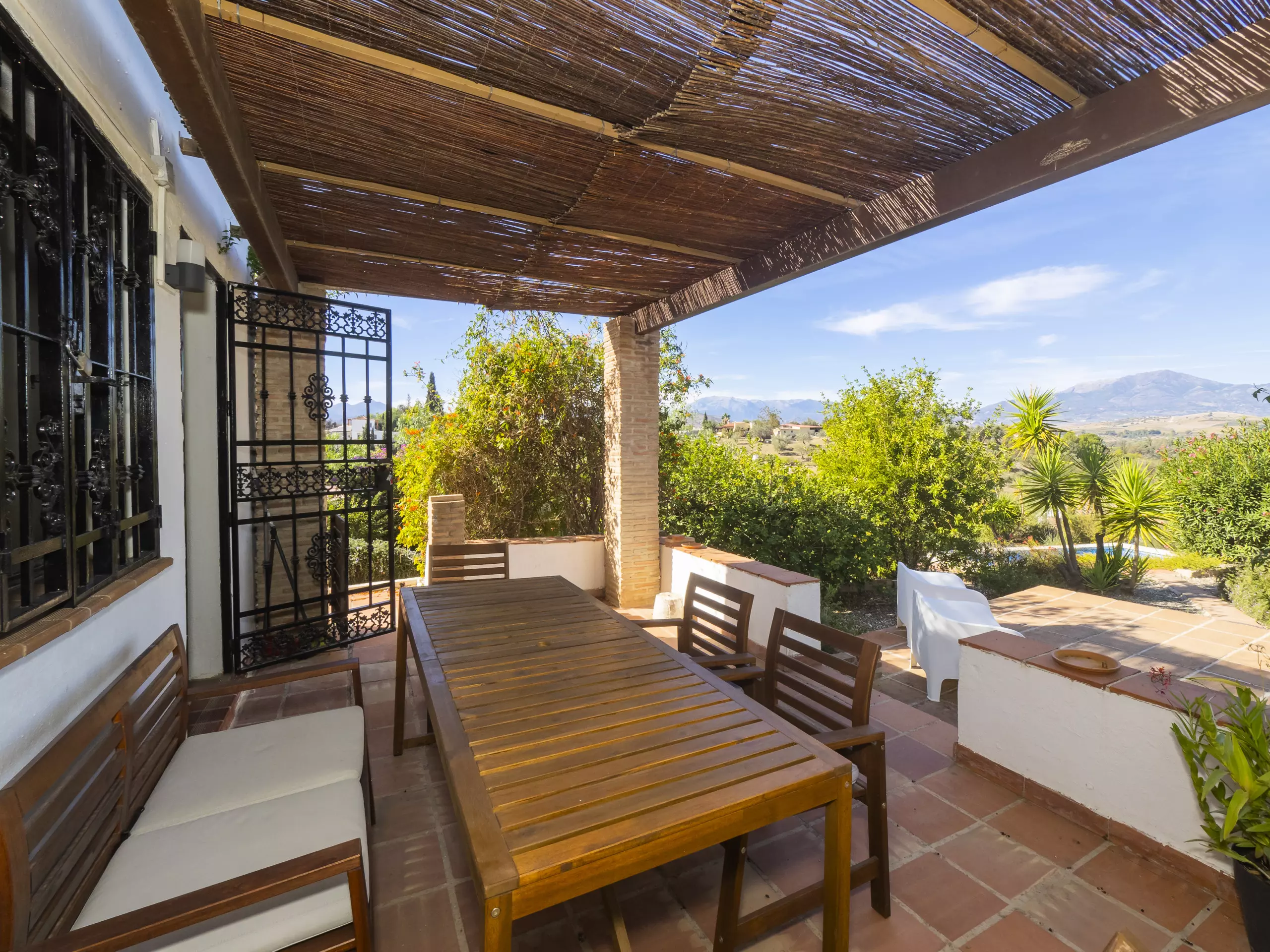 L'extérieur est équipé de mobilier fonctionnel et confortable, idéal pour les déjeuners en famille ou les moments de tranquillité, tant dans la zone près de la cuisine que sur la terrasse couverte connectée au salon-salle à manger. ??