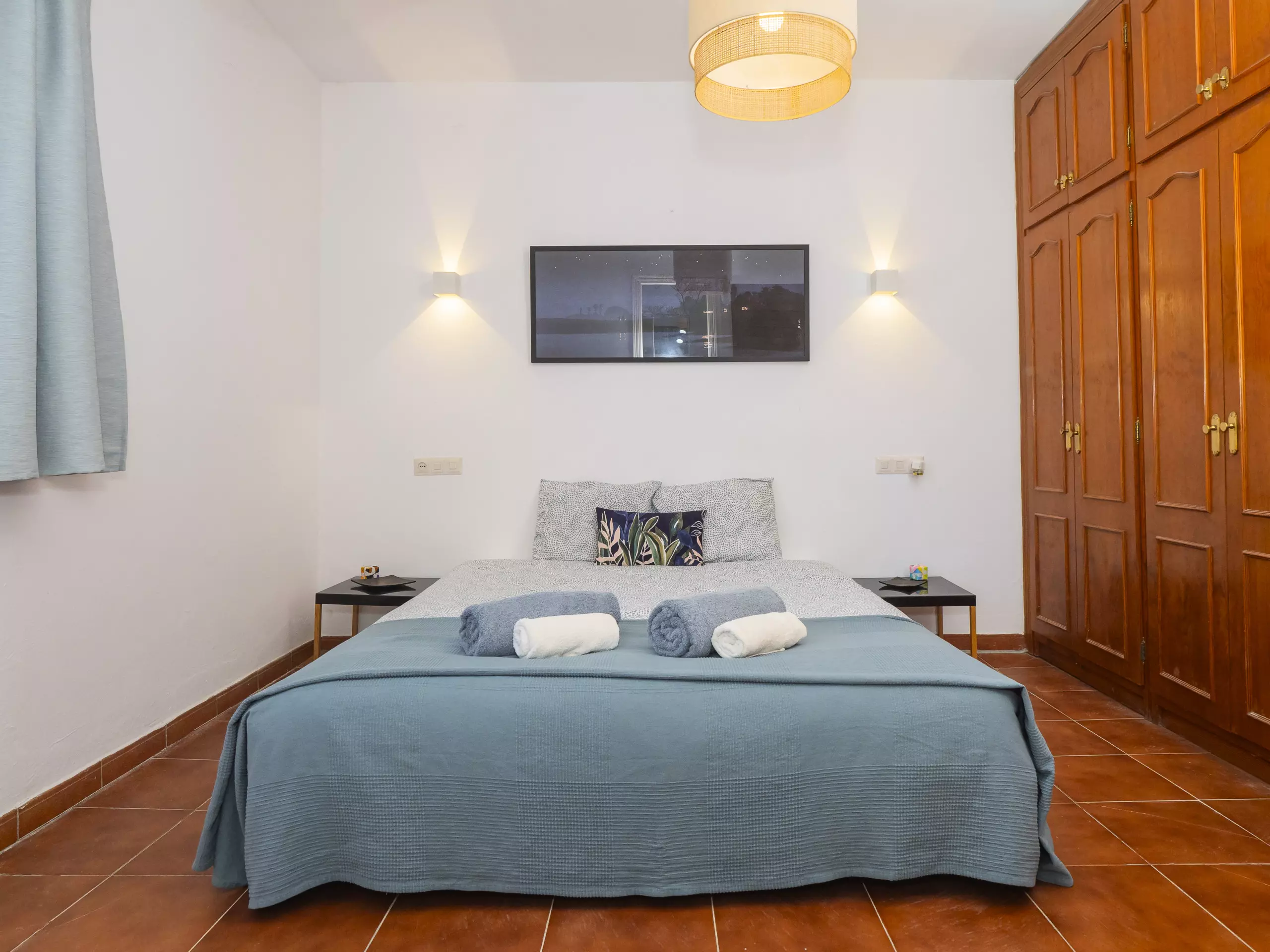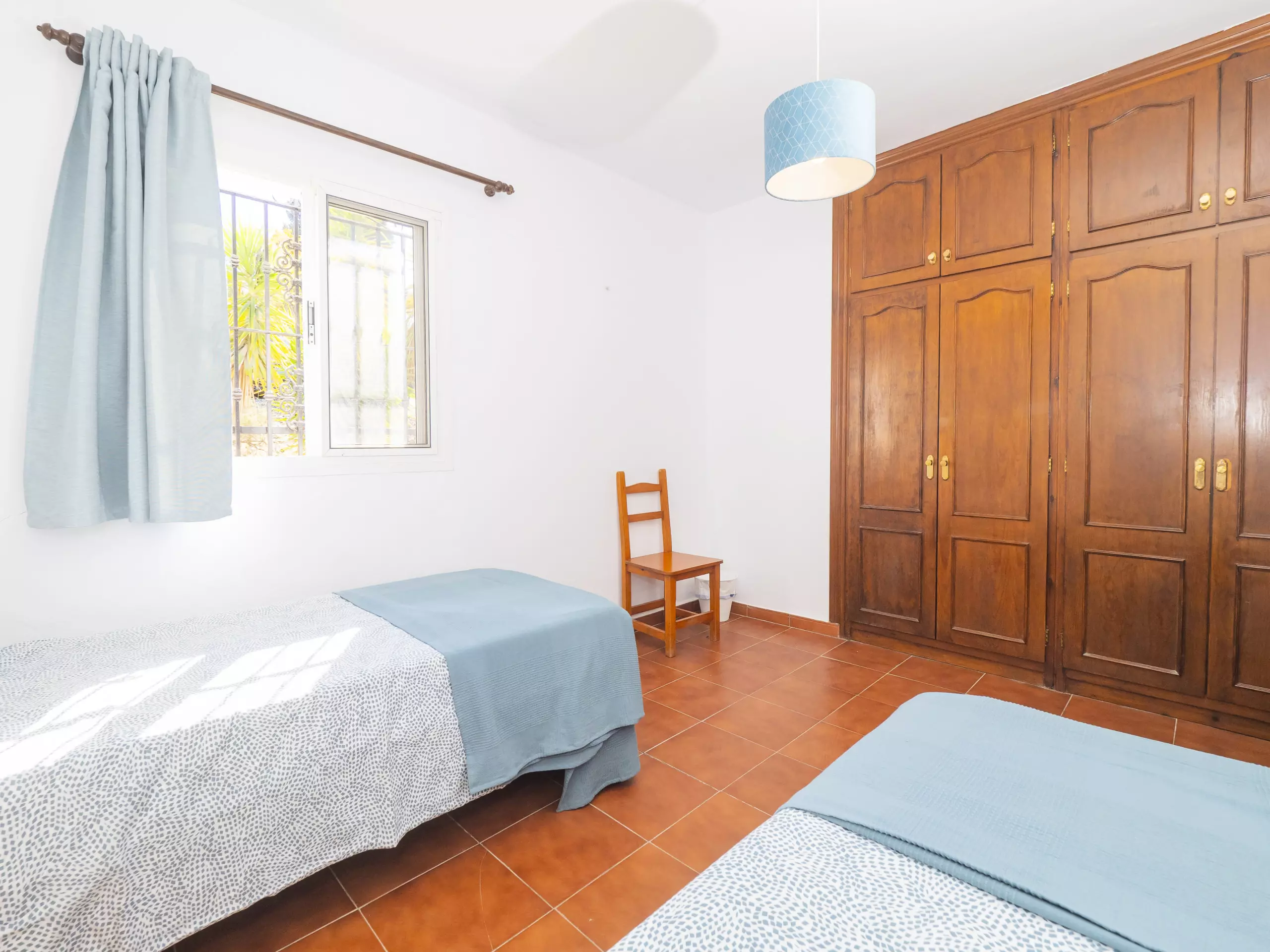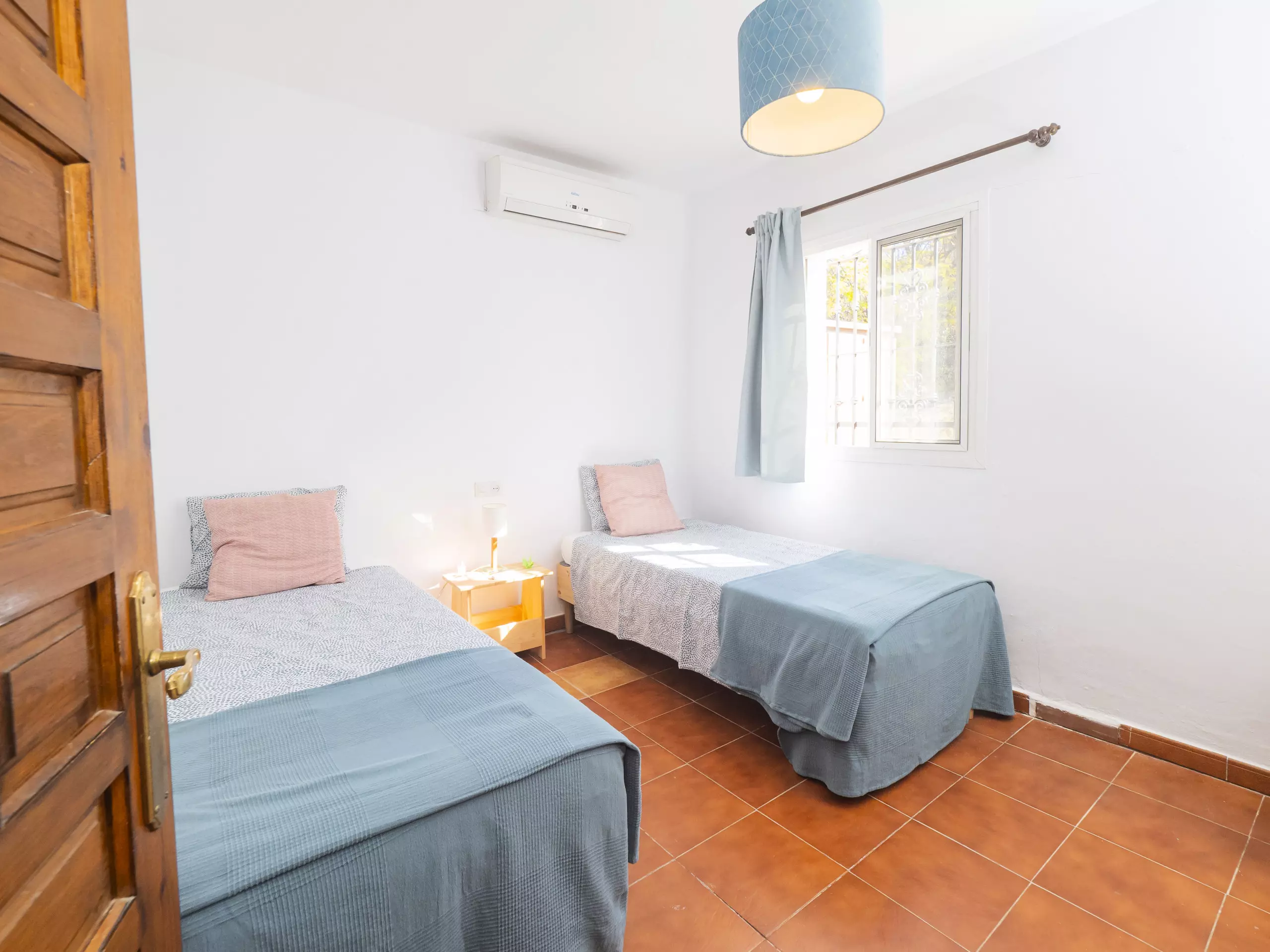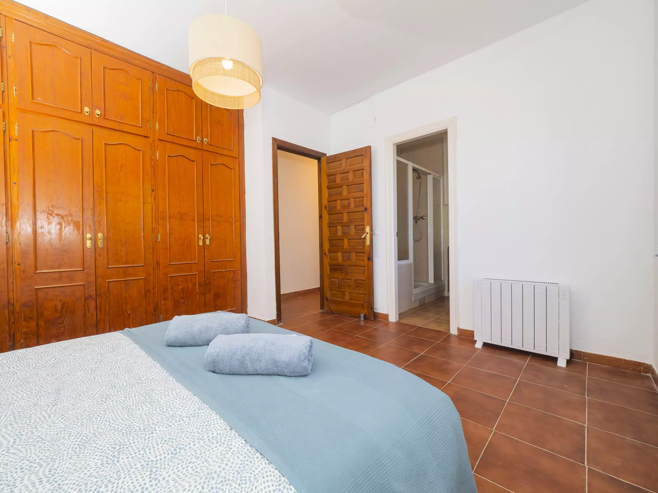La maison dispose de deux chambres, toutes deux extérieures et offrant de l'espace pour ranger les bagages de manière organisée. L'une dispose d'un lit matrimonial et d'une salle de bain attenante avec une douche, tandis que la seconde propose deux lits individuels. Dans le couloir reliant les chambres se trouve une deuxième salle de bain, équipée également d'un lave-linge pour plus de commodité durant votre séjour. ??
