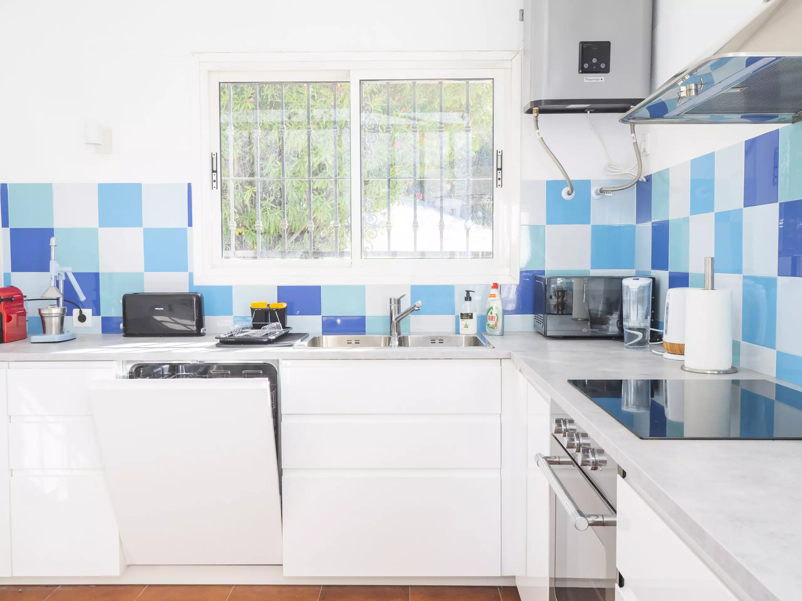 L'intérieur se distingue par sa luminosité et sa fonctionnalité. La cuisine indépendante est entièrement équipée d'appareils électroménagers modernes : réfrigérateur, micro-ondes, four, induction, lave-vaisselle, cafetière, grille-pain, bouilloire et presse-agrumes, en plus de tous les ustensiles nécessaires pour préparer et apprécier ses repas. ??