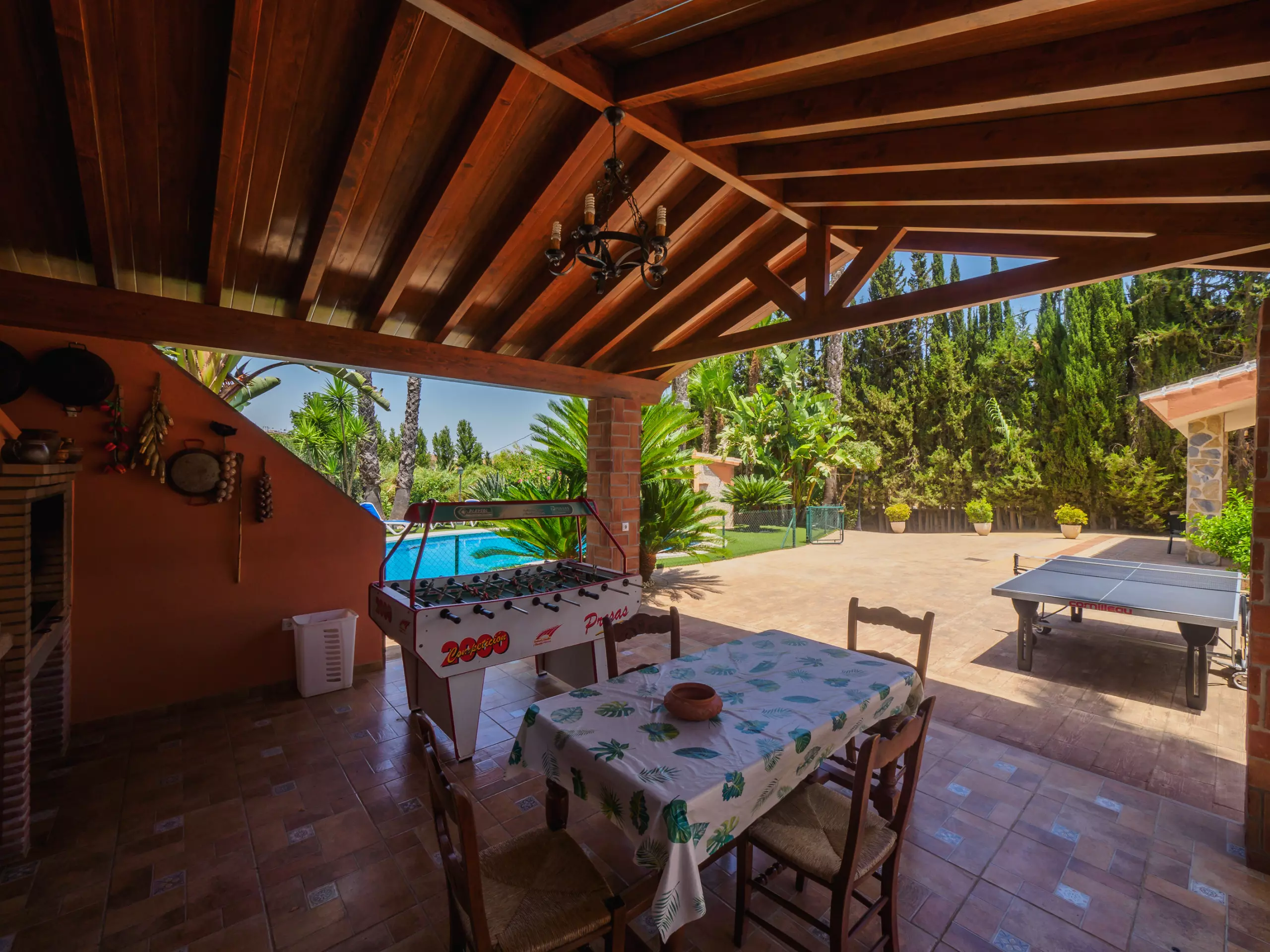 À l'extérieur, la propriété se distingue par sa confidentialité et sa qualité, avec une piscine clôturée parfaite pour la sécurité des enfants, une grande terrasse équipée de jeux en plein air, une zone de barbecue et des options pour s'amuser avec du tennis de table et du baby-foot. Ces espaces sont idéaux pour créer des moments inoubliables en famille ou entre amis. ??