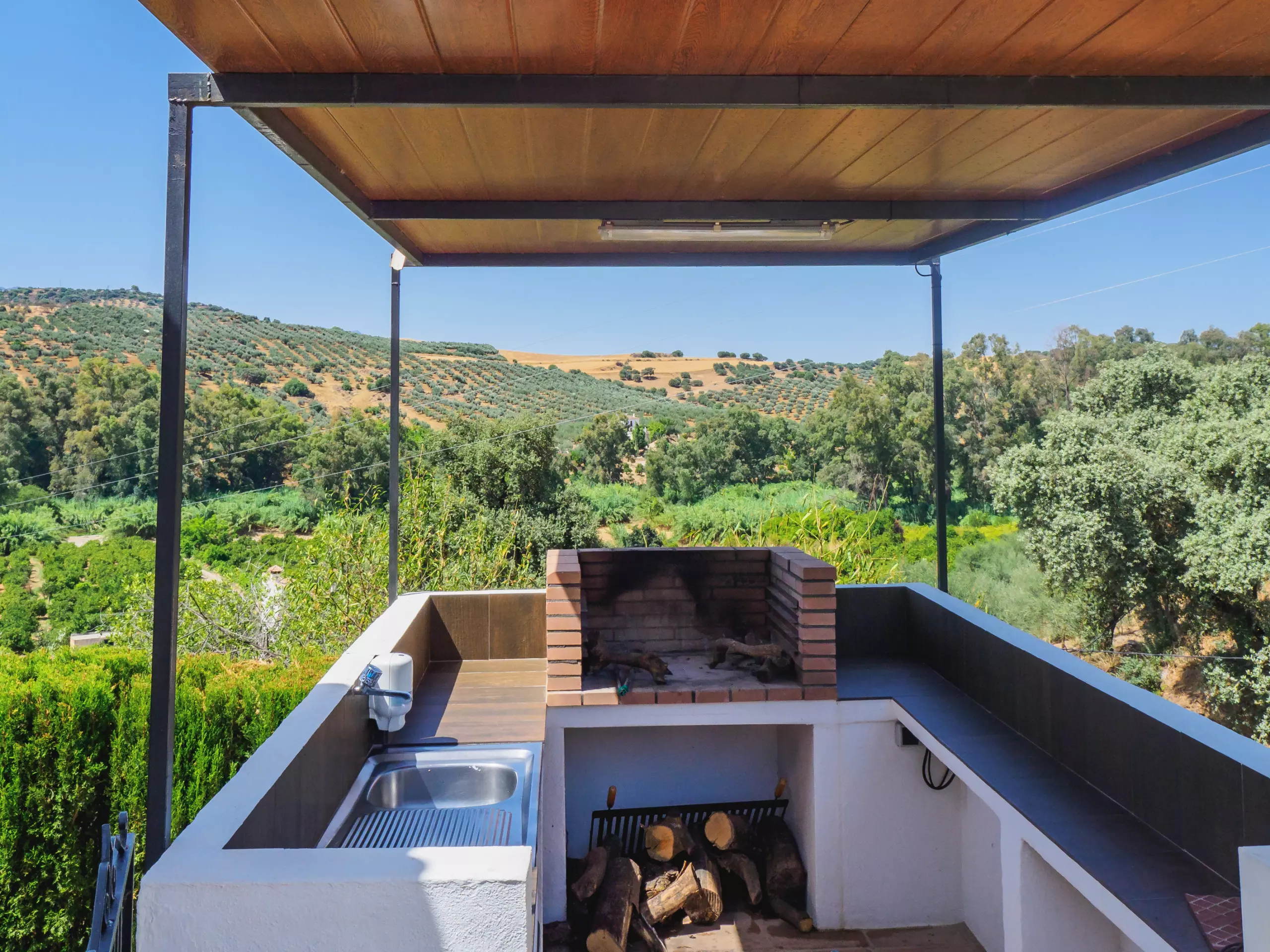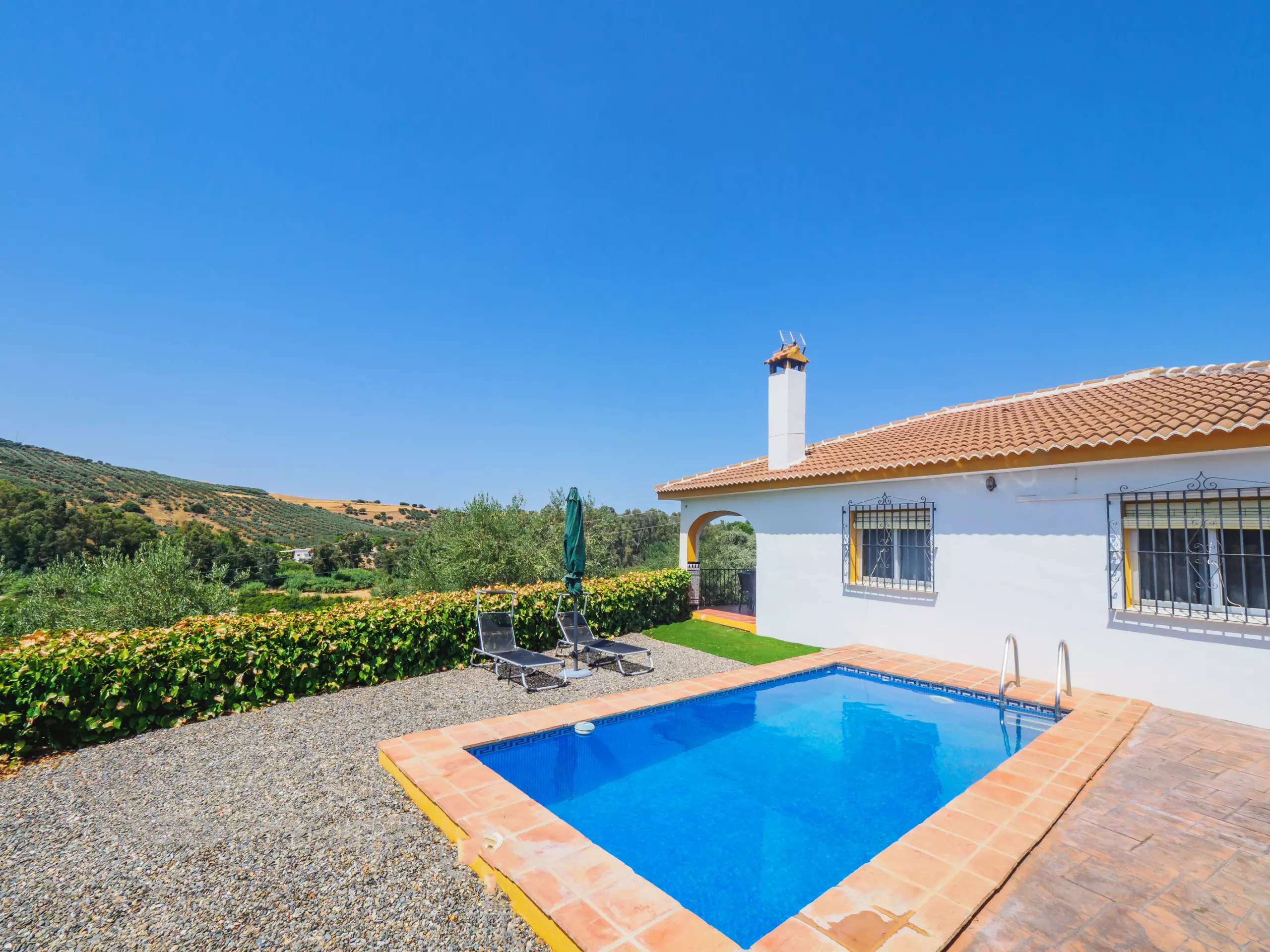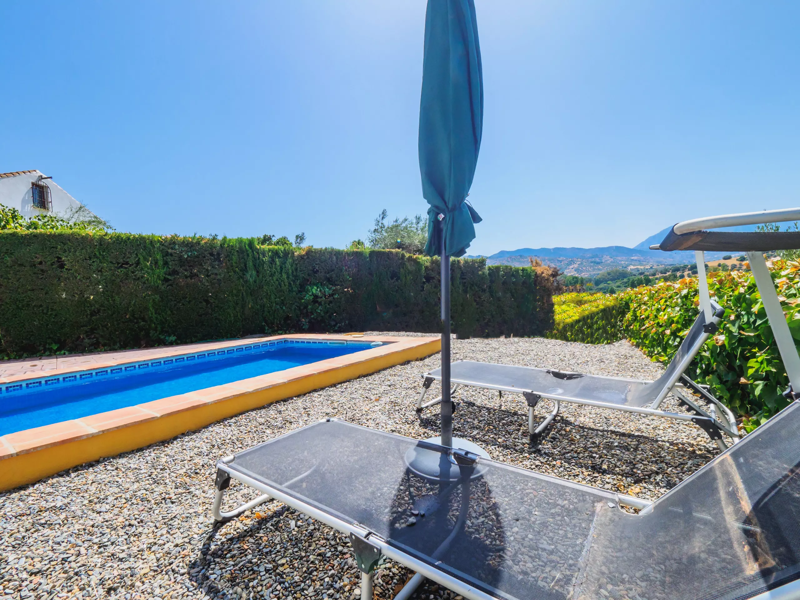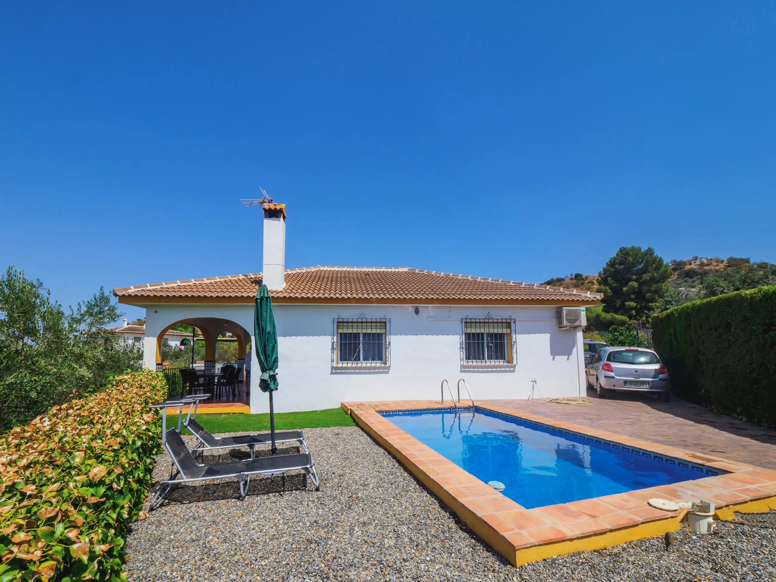 L'accès est simple à travers un petit chemin de terre compact, avec de l'espace pour garer jusqu'à deux véhicules sans problème. À l'extérieur, le logement dispose d'une terrasse meublée et d'un espace barbecue couvert parfait pour profiter de l'extérieur. La piscine privée, entourée de plantes hautes qui garantissent l'intimité sans perdre la vue, est idéale pour se rafraîchir et divertir les enfants, complétée par une pelouse et des chaises longues pour bronzer. ????