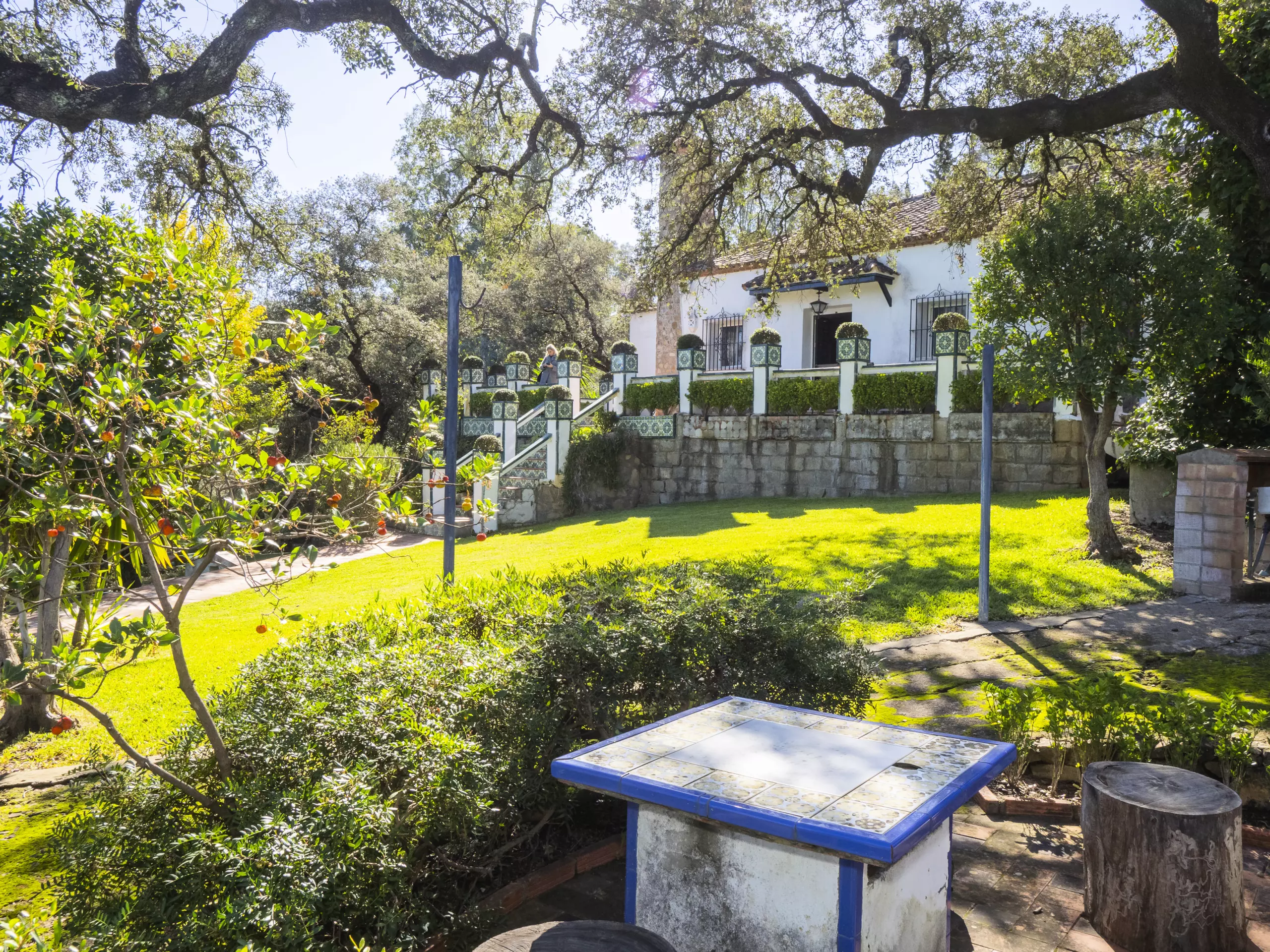 Profitez de cette spacieuse maison de campagne à Guillena, parfaite pour jusqu'à 12 personnes, entourée de chênes et de nature ?, dans un quartier tranquille avec un accès privé. Sa situation stratégique vous permet de rejoindre facilement le centre de Séville et l'Île de la Cartuja par autoroute ou routes secondaires.