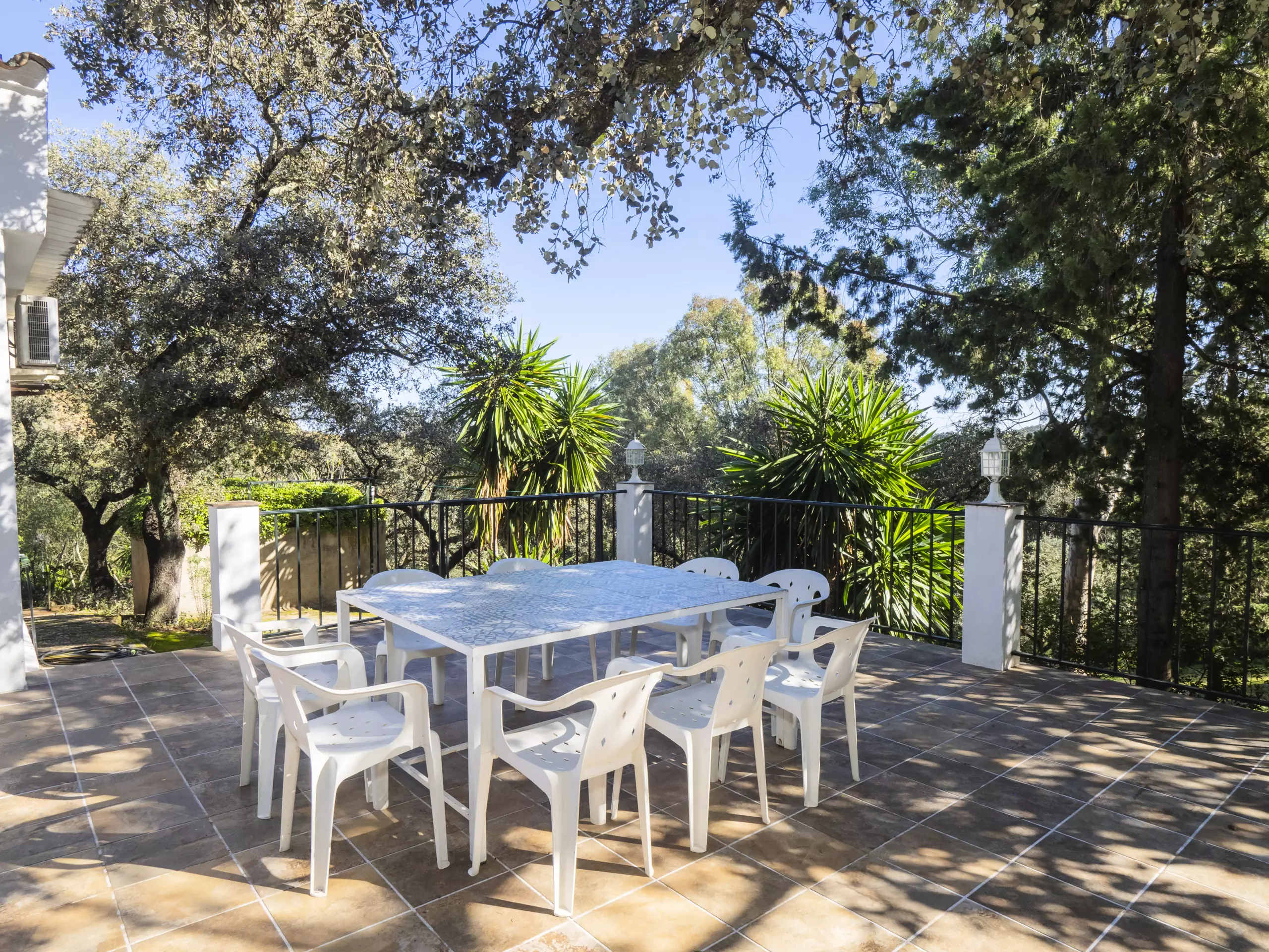 L'extérieur invite à profiter de l'air libre avec plusieurs zones de barbecue et de salle à manger, parfaites pour les déjeuners en famille ?. La parcelle est clôturée pour la sécurité et dispose d'un accès direct à un sentier privé dans l'urbanisation, idéal pour des promenades entre les arbres. Bien qu'il y ait un supermarché près d'une station-service, nous vous recommandons d'apporter vos courses pour économiser.