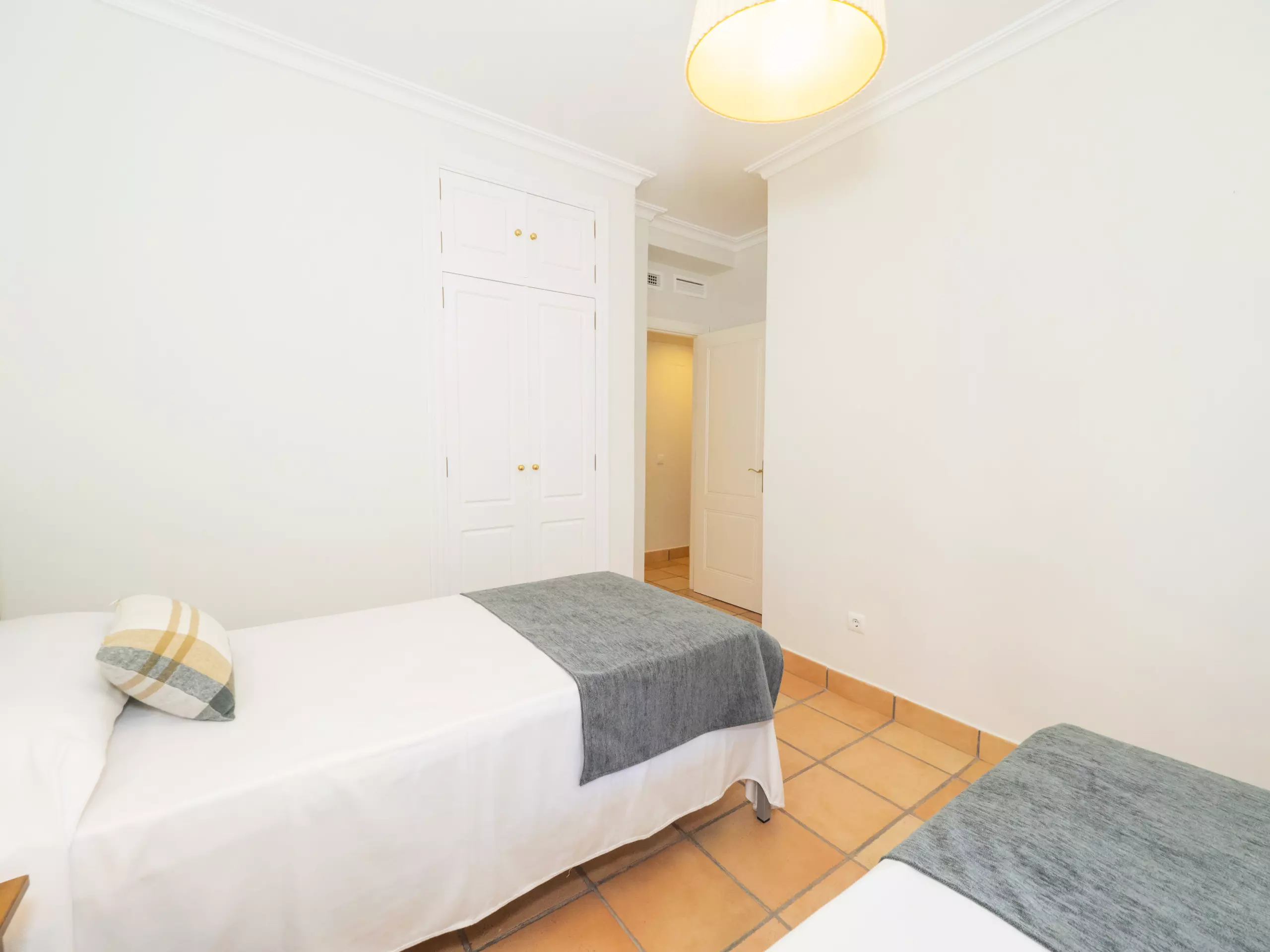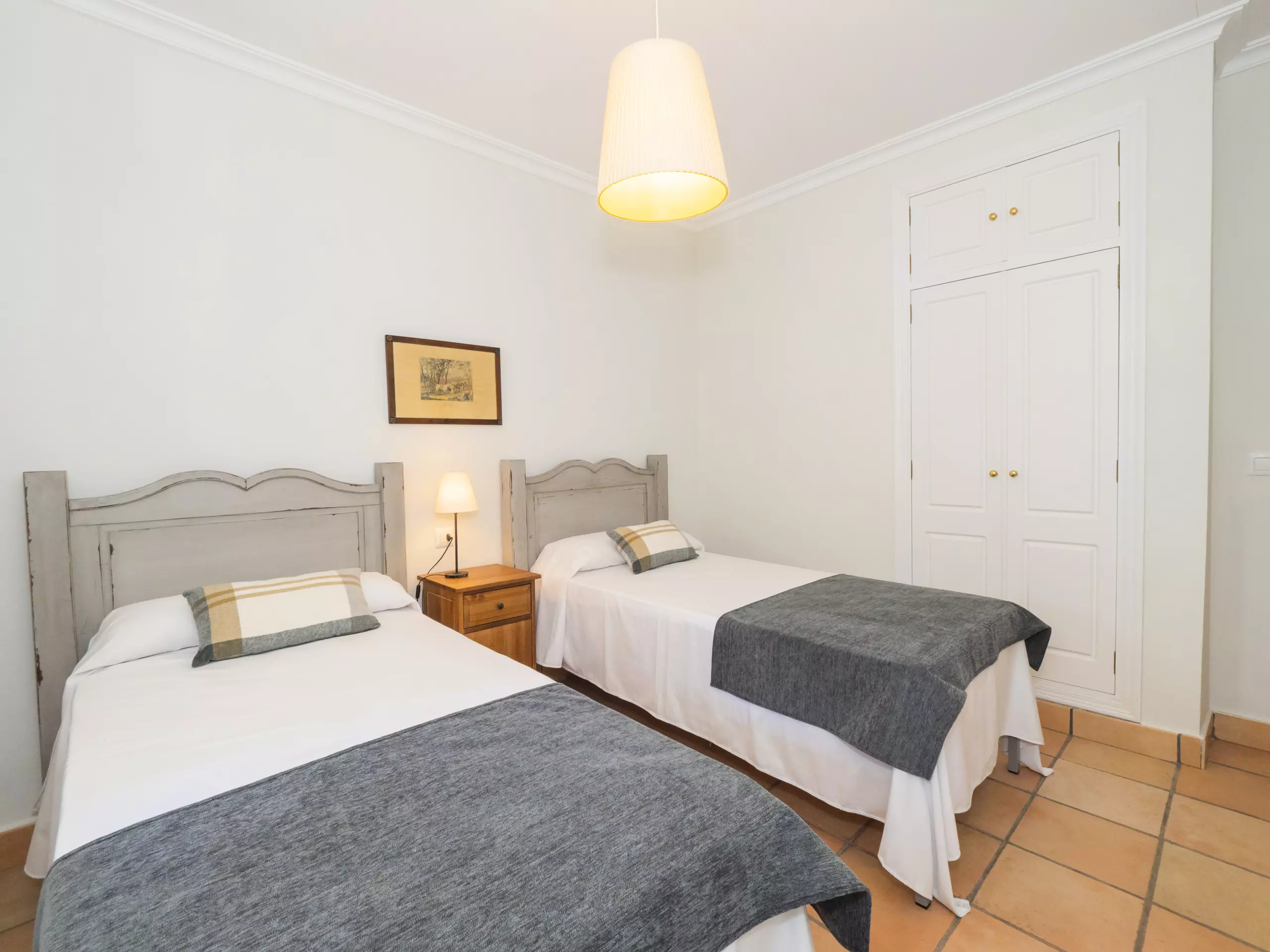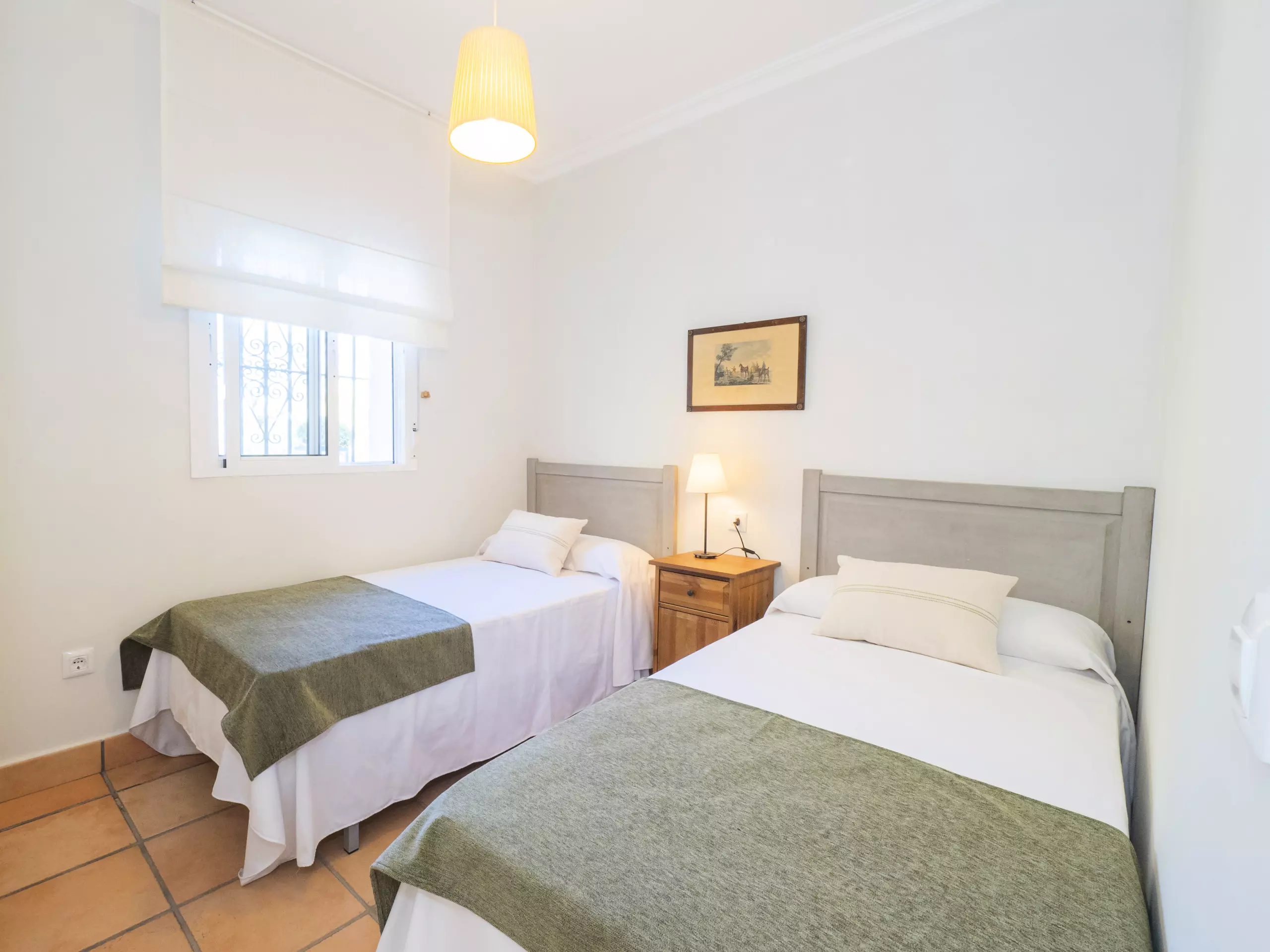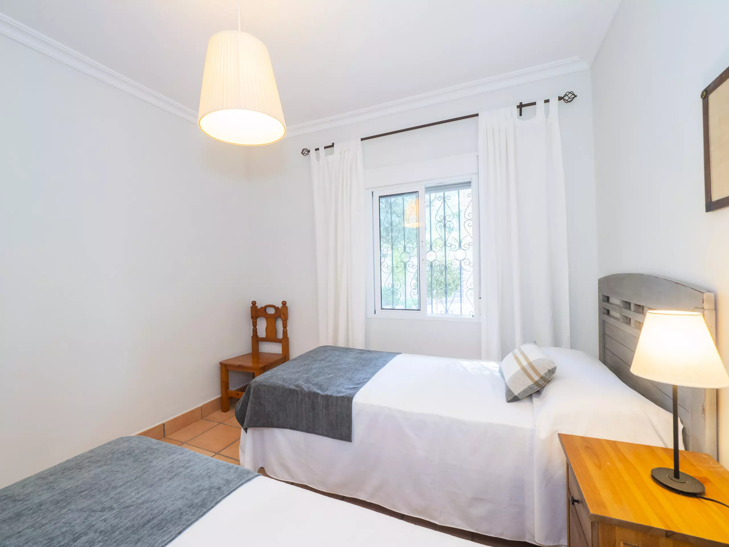 L'intérieur est confortable et fonctionnel, avec 194 m² répartis sur un seul niveau pour faciliter la mobilité. Vous trouverez cinq chambres avec des lits individuels, spacieuses et lumineuses, qui garantissent un repos pour tous. Il y a trois salles de bains, une près de la cuisine avec un receveur de douche, et deux autres accessibles depuis la zone des chambres.