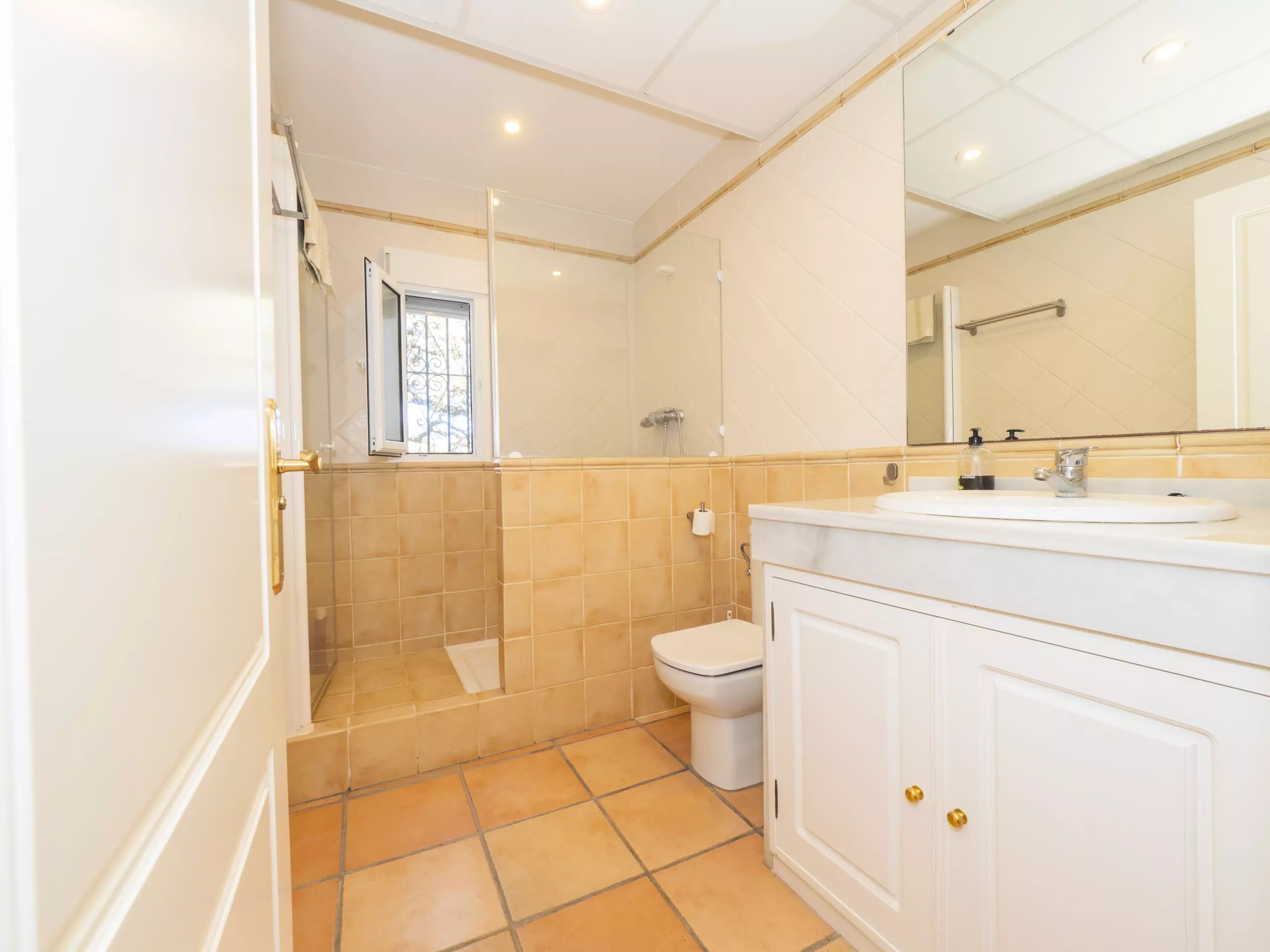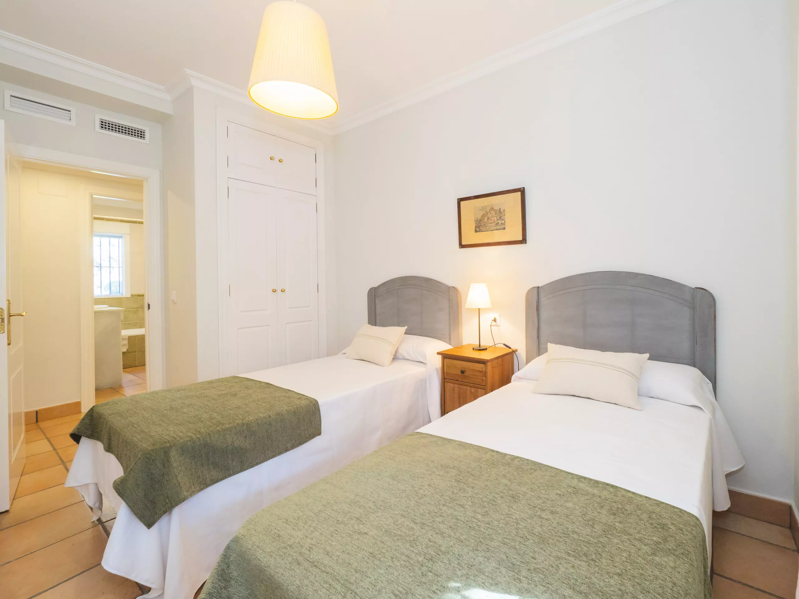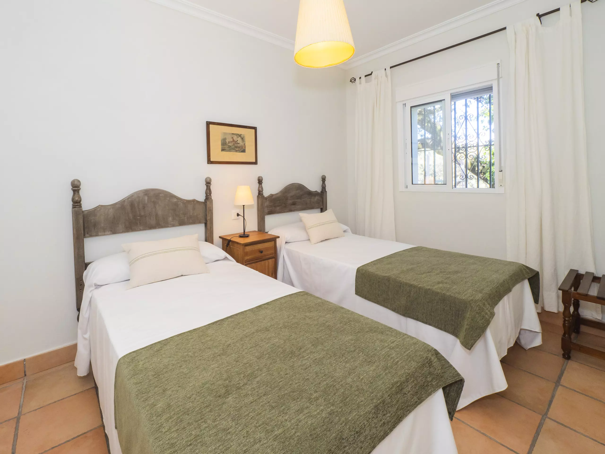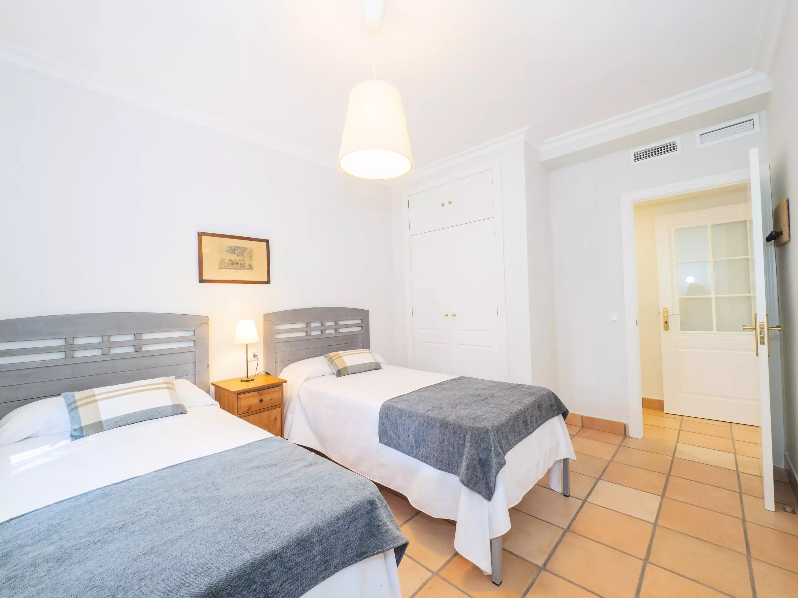 L'intérieur est confortable et fonctionnel, avec 194 m² répartis sur un seul niveau pour faciliter la mobilité. Vous trouverez cinq chambres avec des lits individuels, spacieuses et lumineuses, qui garantissent un repos pour tous. Il y a trois salles de bains, une près de la cuisine avec un receveur de douche, et deux autres accessibles depuis la zone des chambres.