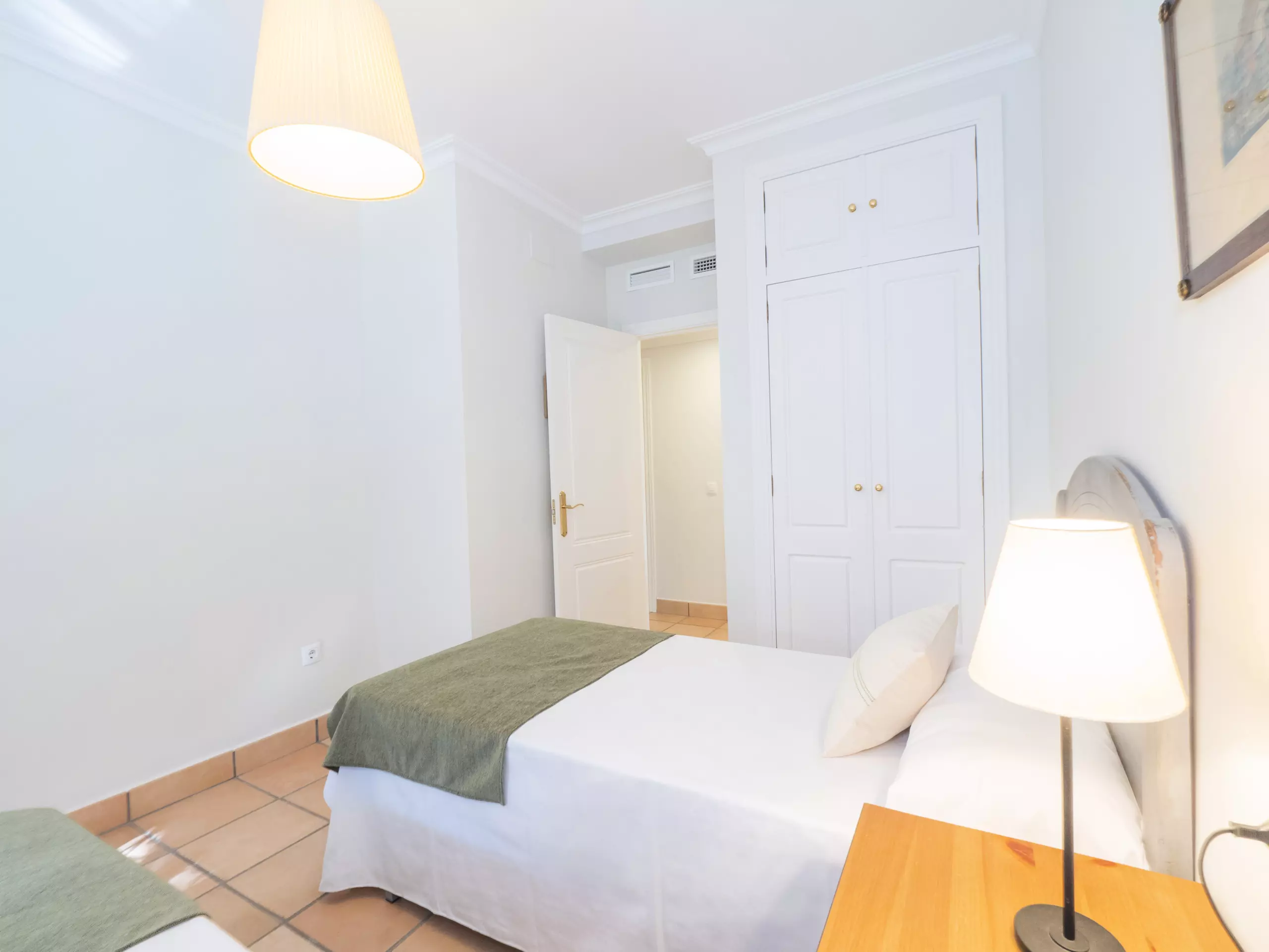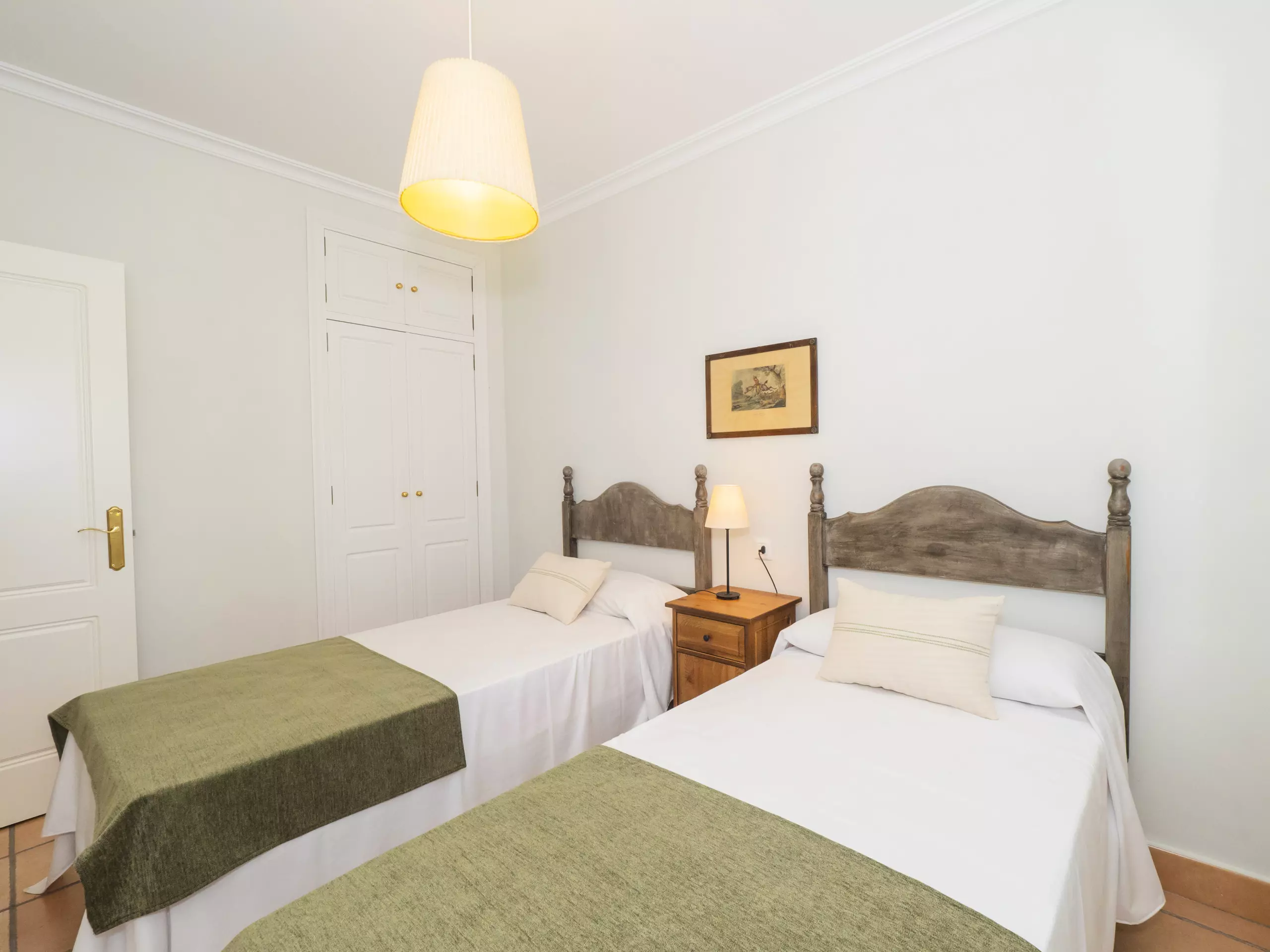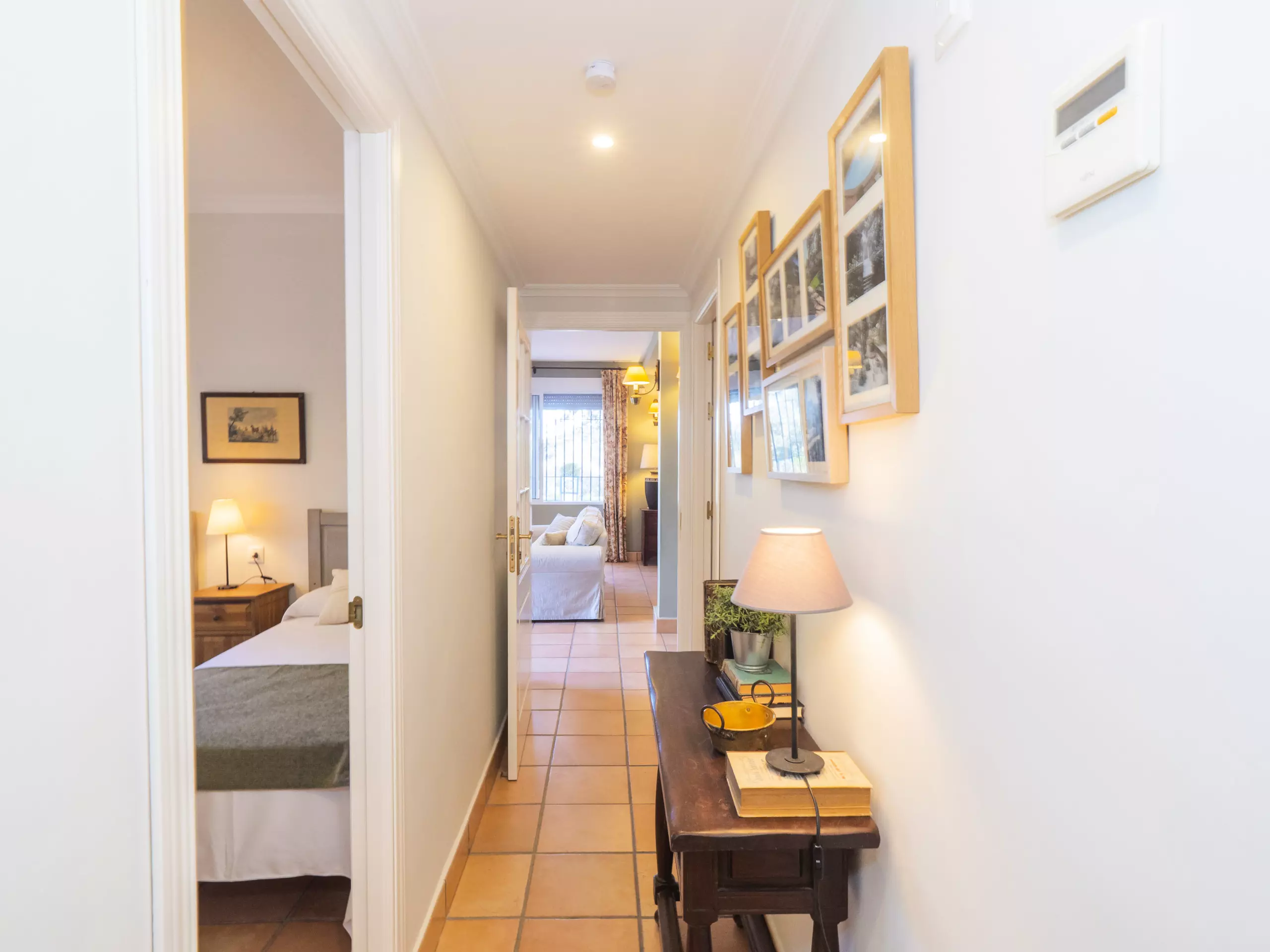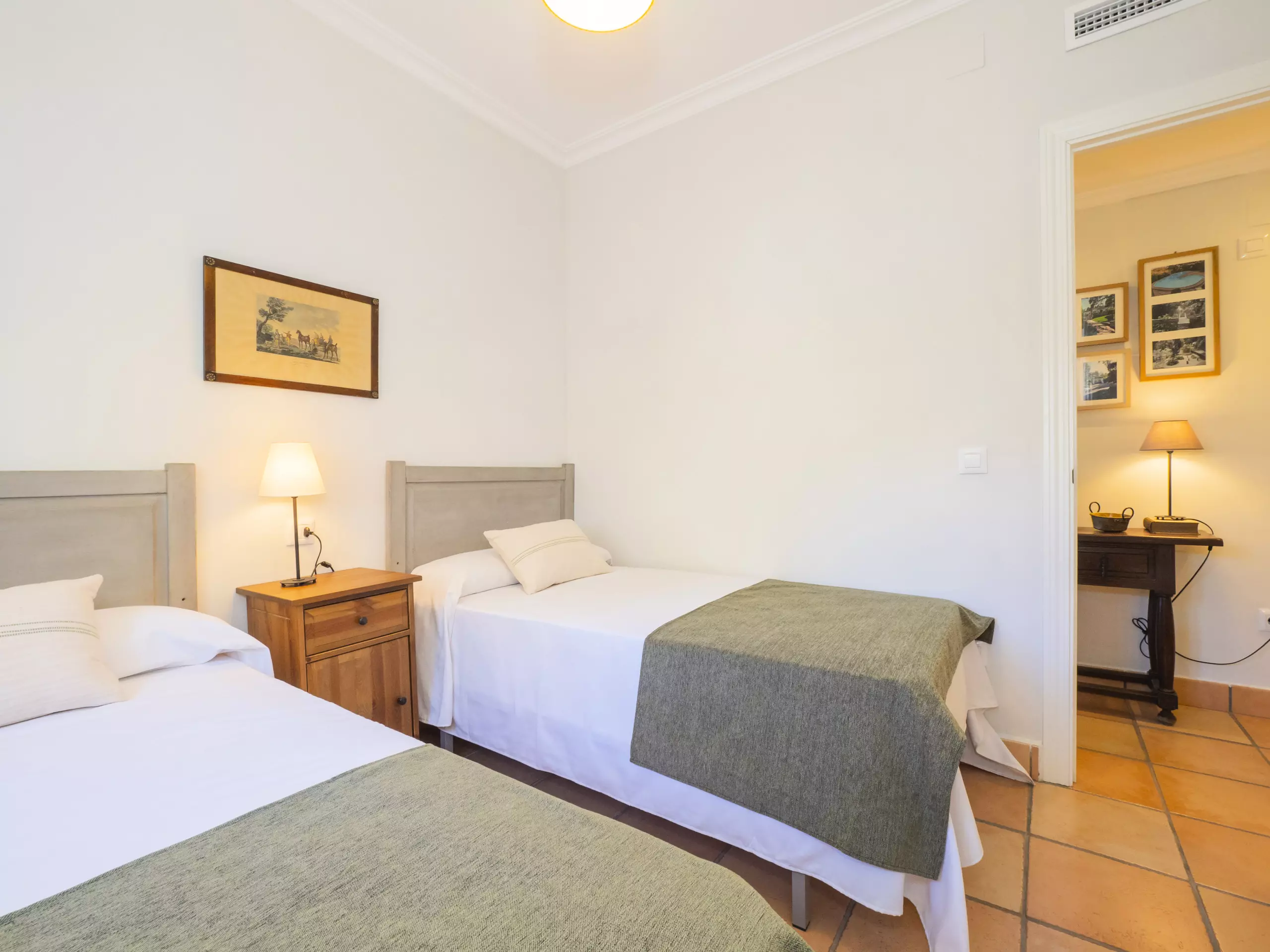 L'intérieur est confortable et fonctionnel, avec 194 m² répartis sur un seul niveau pour faciliter la mobilité. Vous trouverez cinq chambres avec des lits individuels, spacieuses et lumineuses, qui garantissent un repos pour tous. Il y a trois salles de bains, une près de la cuisine avec un receveur de douche, et deux autres accessibles depuis la zone des chambres.