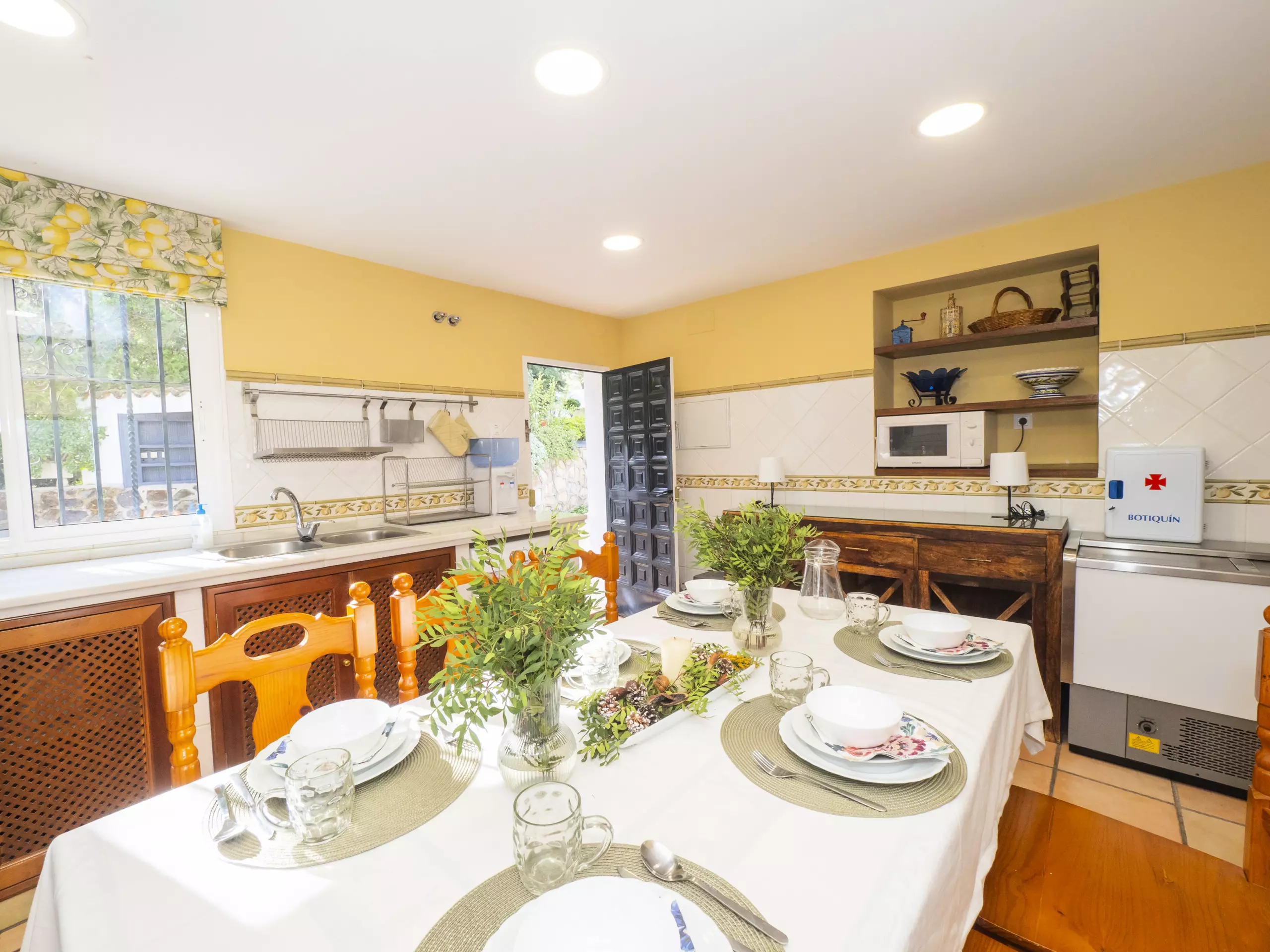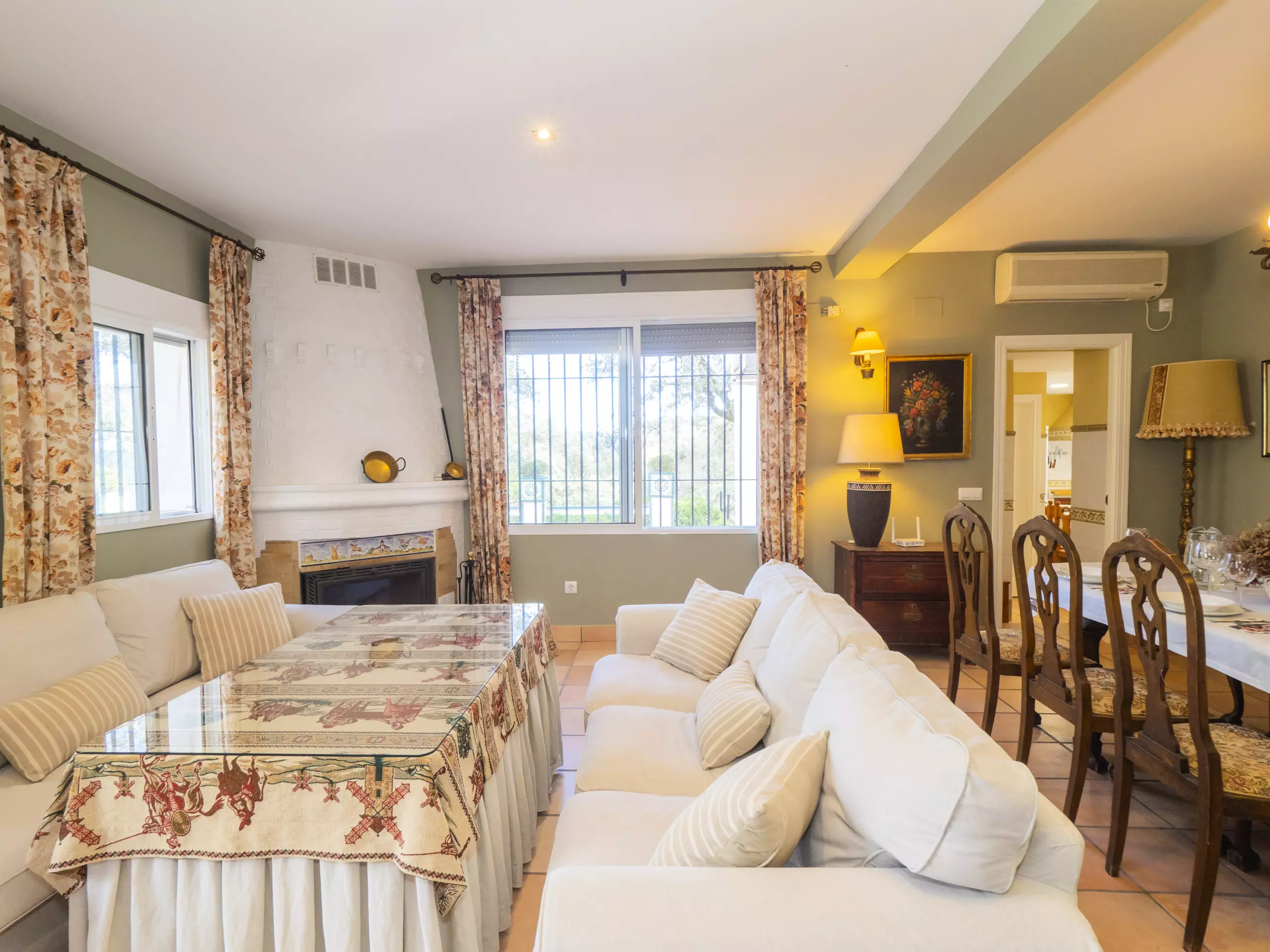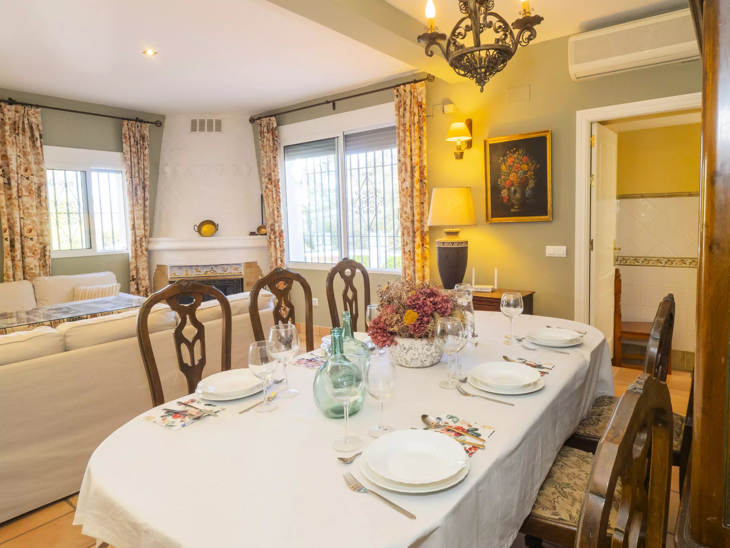 Le salon-salle à manger, avec cheminée, crée une ambiance chaleureuse pour partager des moments en famille, tandis qu'un second salon avec télévision est idéal pour divertir les enfants. La cuisine indépendante est entièrement équipée d'appareils électroménagers modernes : plaque vitrocéramique, réfrigérateur, micro-ondes, four, congélateur, lave-vaisselle et petits électroménagers comme cafetière, grille-pain et presse-agrumes ?. Il dispose même d'une table à manger pour des repas plus informels.