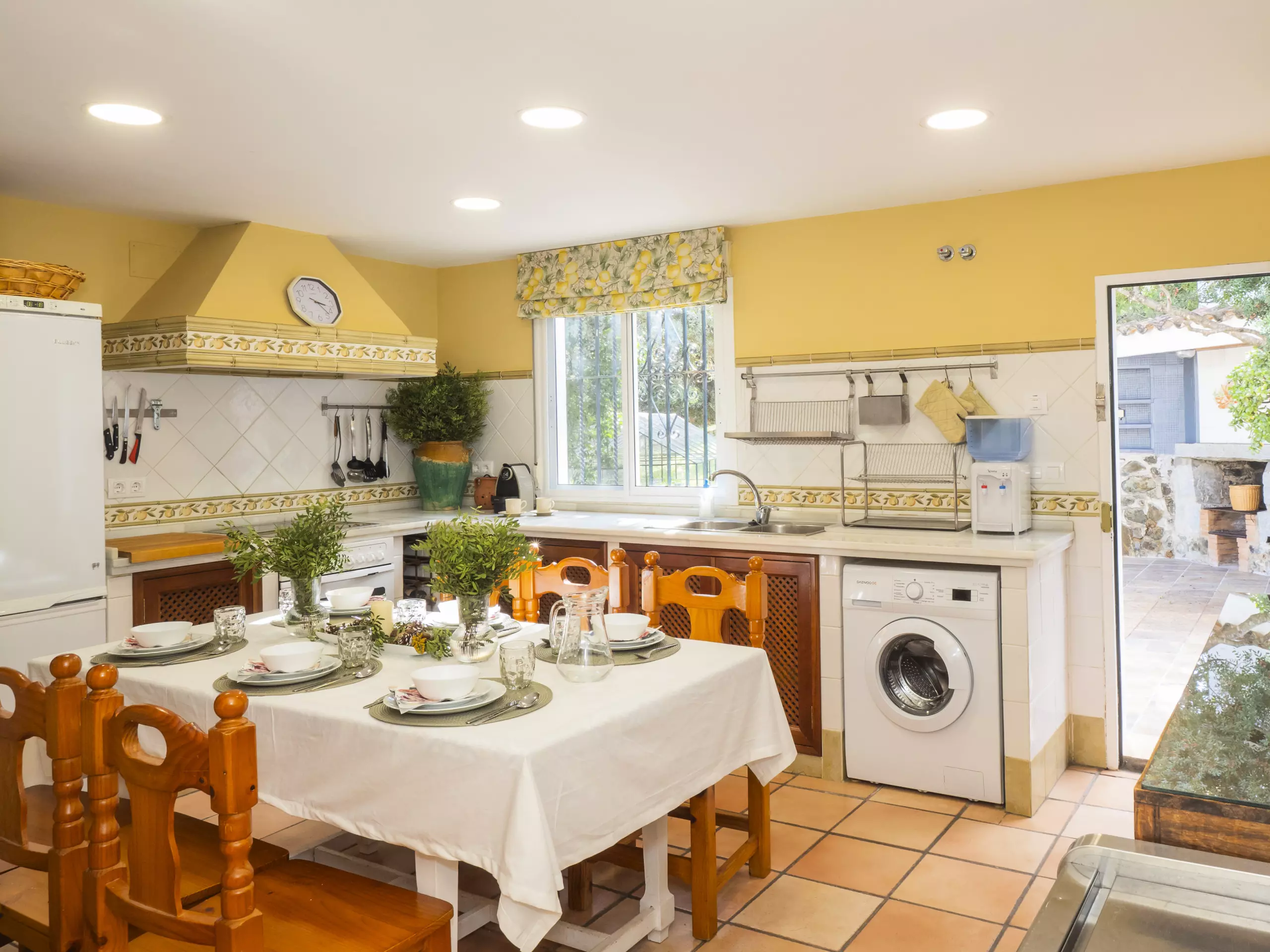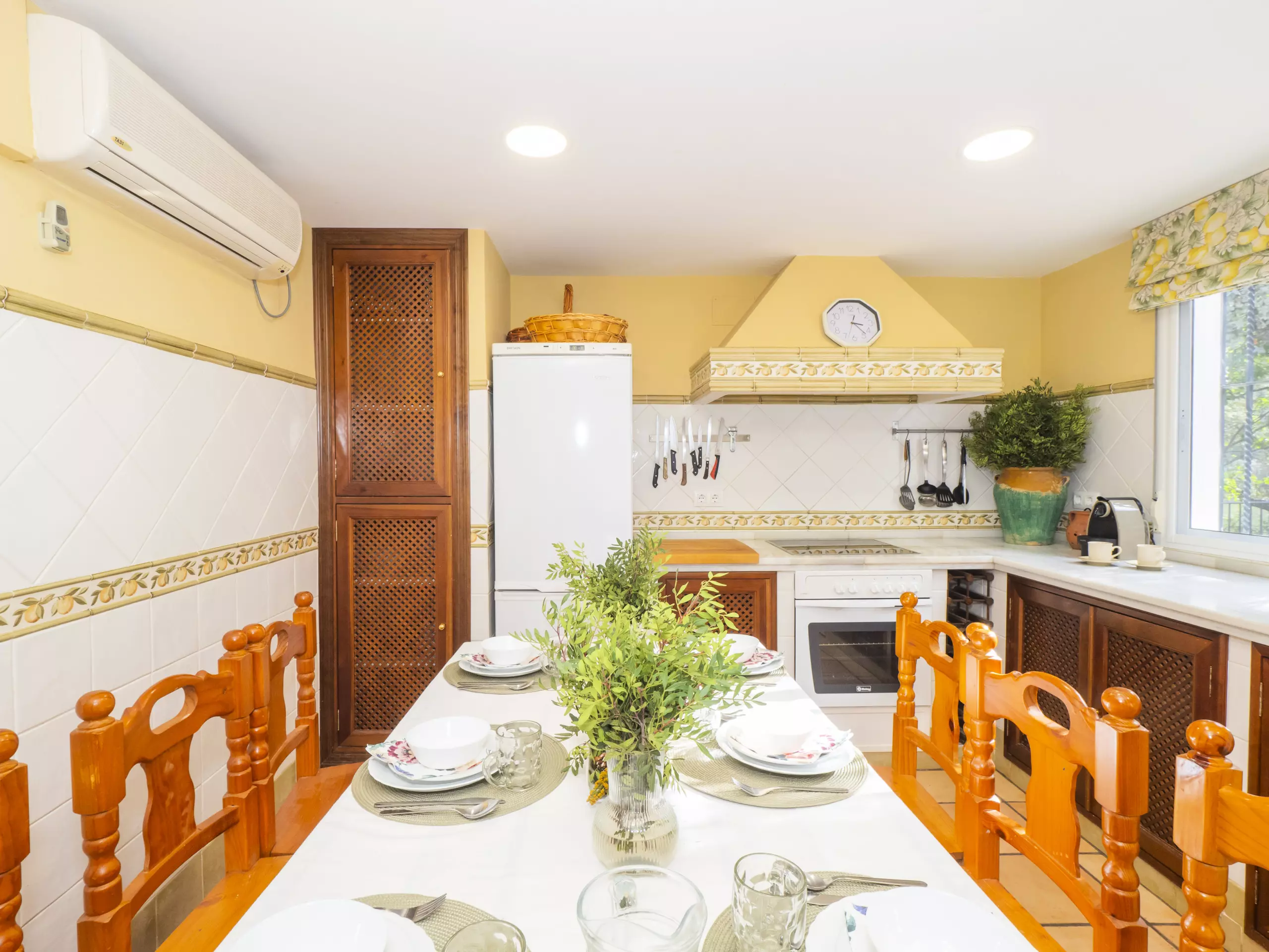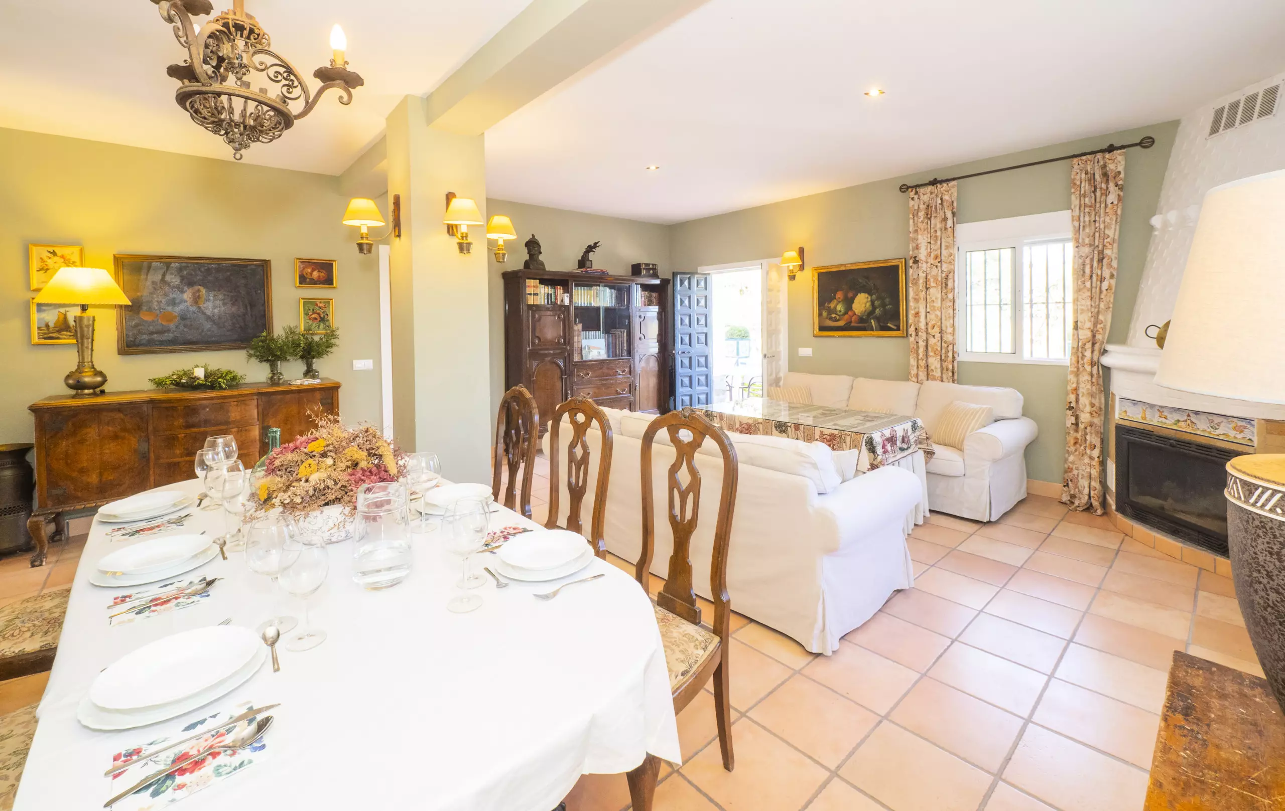 Le salon-salle à manger, avec cheminée, crée une ambiance chaleureuse pour partager des moments en famille, tandis qu'un second salon avec télévision est idéal pour divertir les enfants. La cuisine indépendante est entièrement équipée d'appareils électroménagers modernes : plaque vitrocéramique, réfrigérateur, micro-ondes, four, congélateur, lave-vaisselle et petits électroménagers comme cafetière, grille-pain et presse-agrumes ?. Il dispose même d'une table à manger pour des repas plus informels.