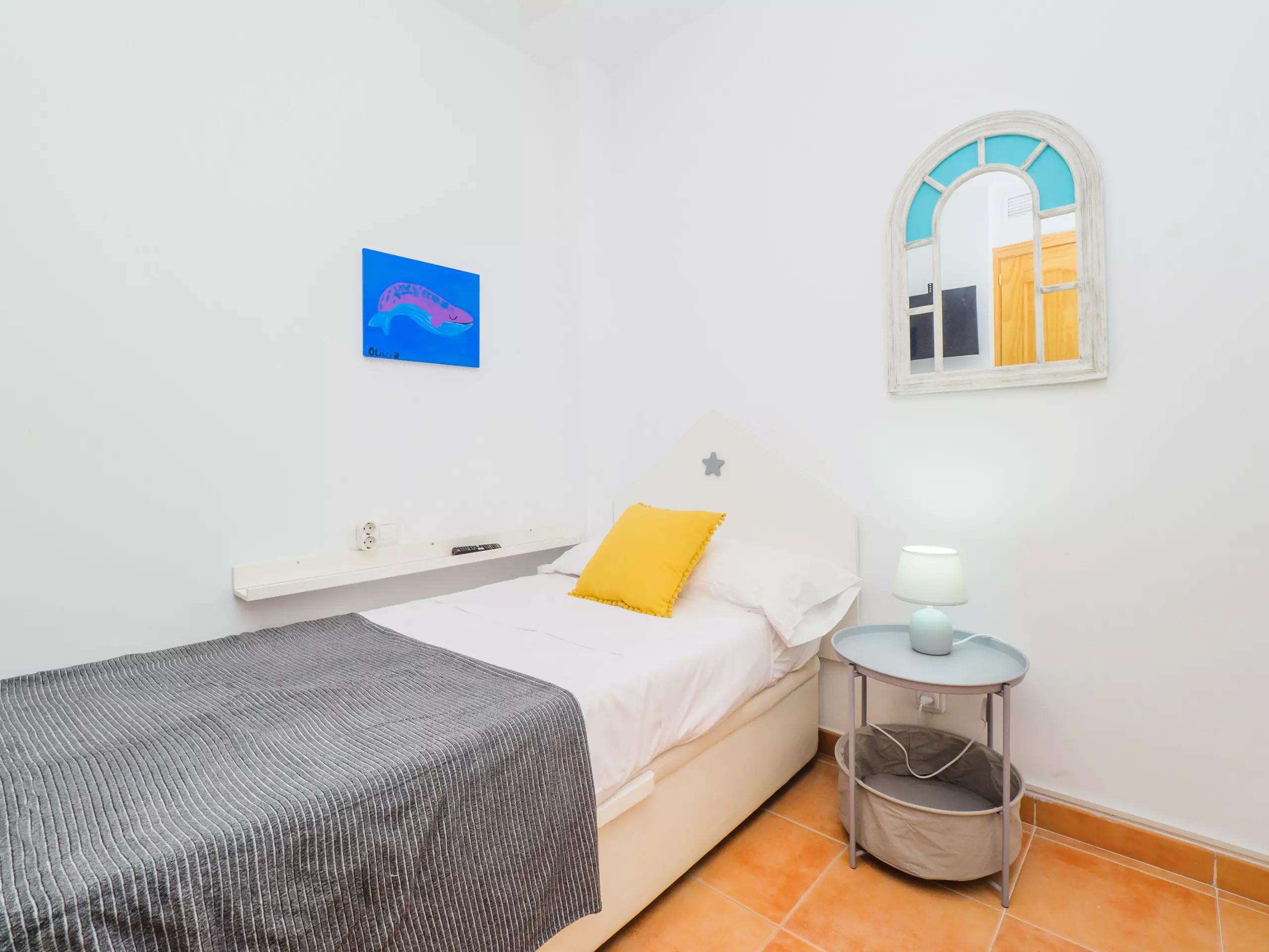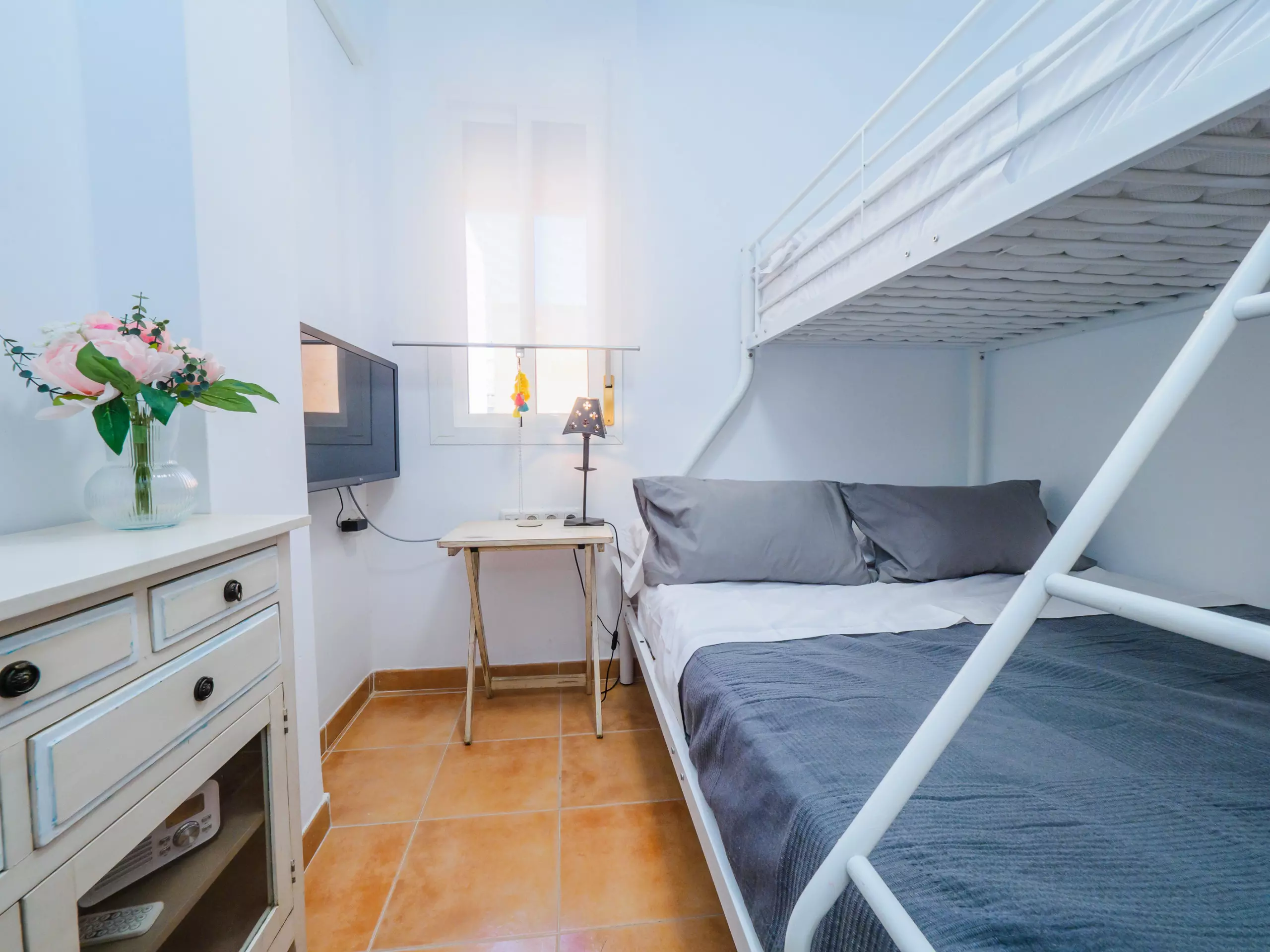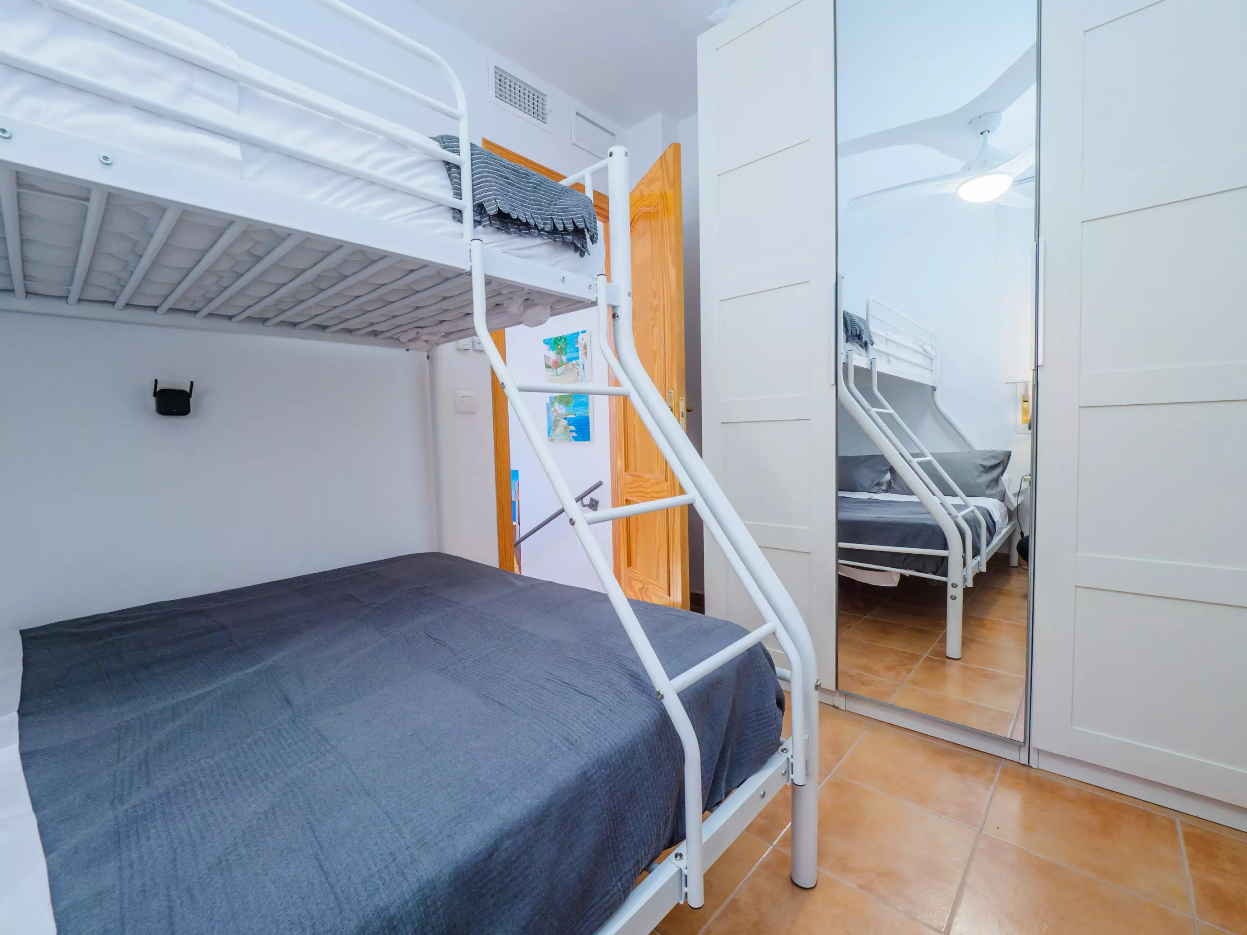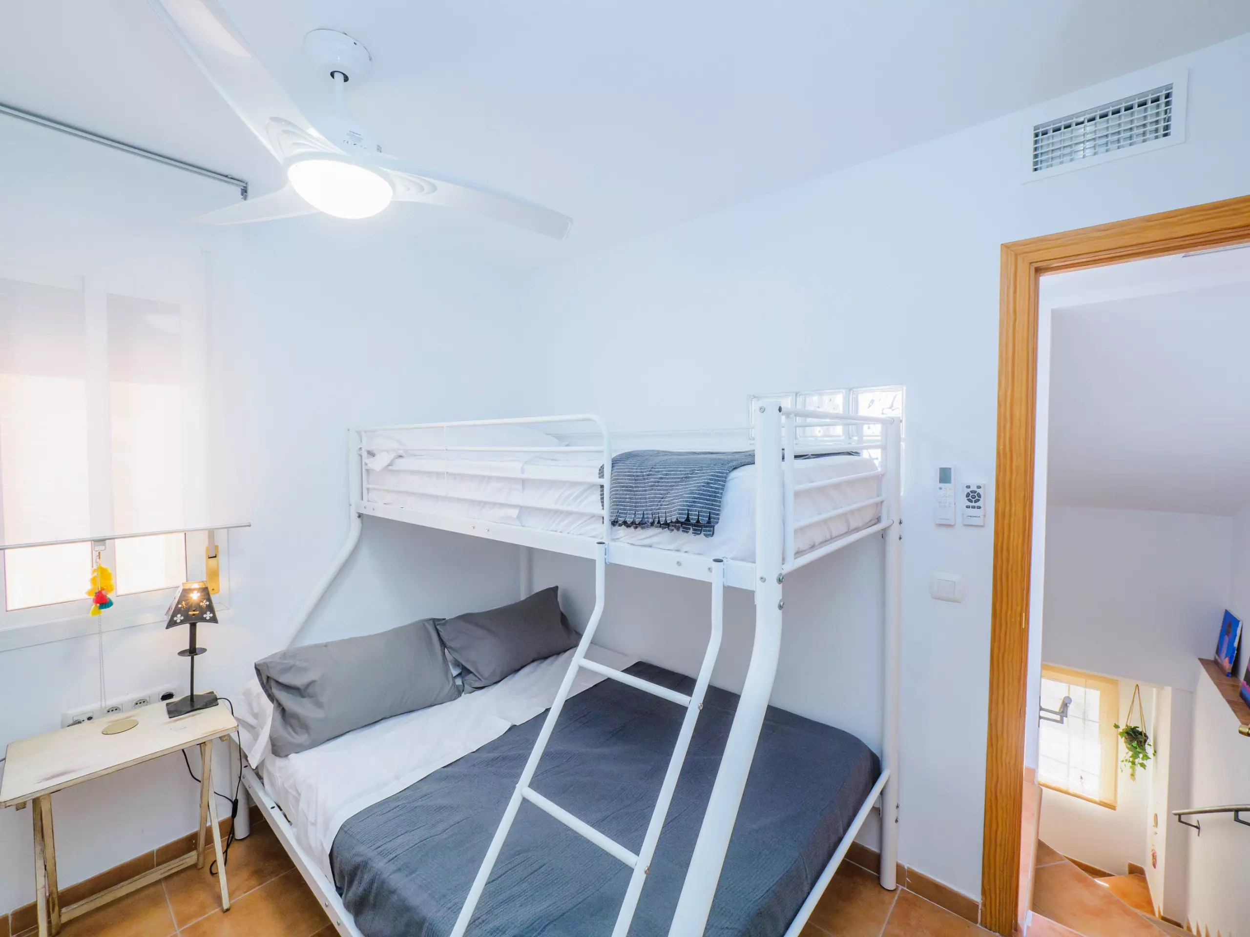 * Trois chambres lumineuses : une avec un lit de couple, une autre avec un lit simple et une troisième avec un lit superposé triple (lit double en bas et lit simple en haut).