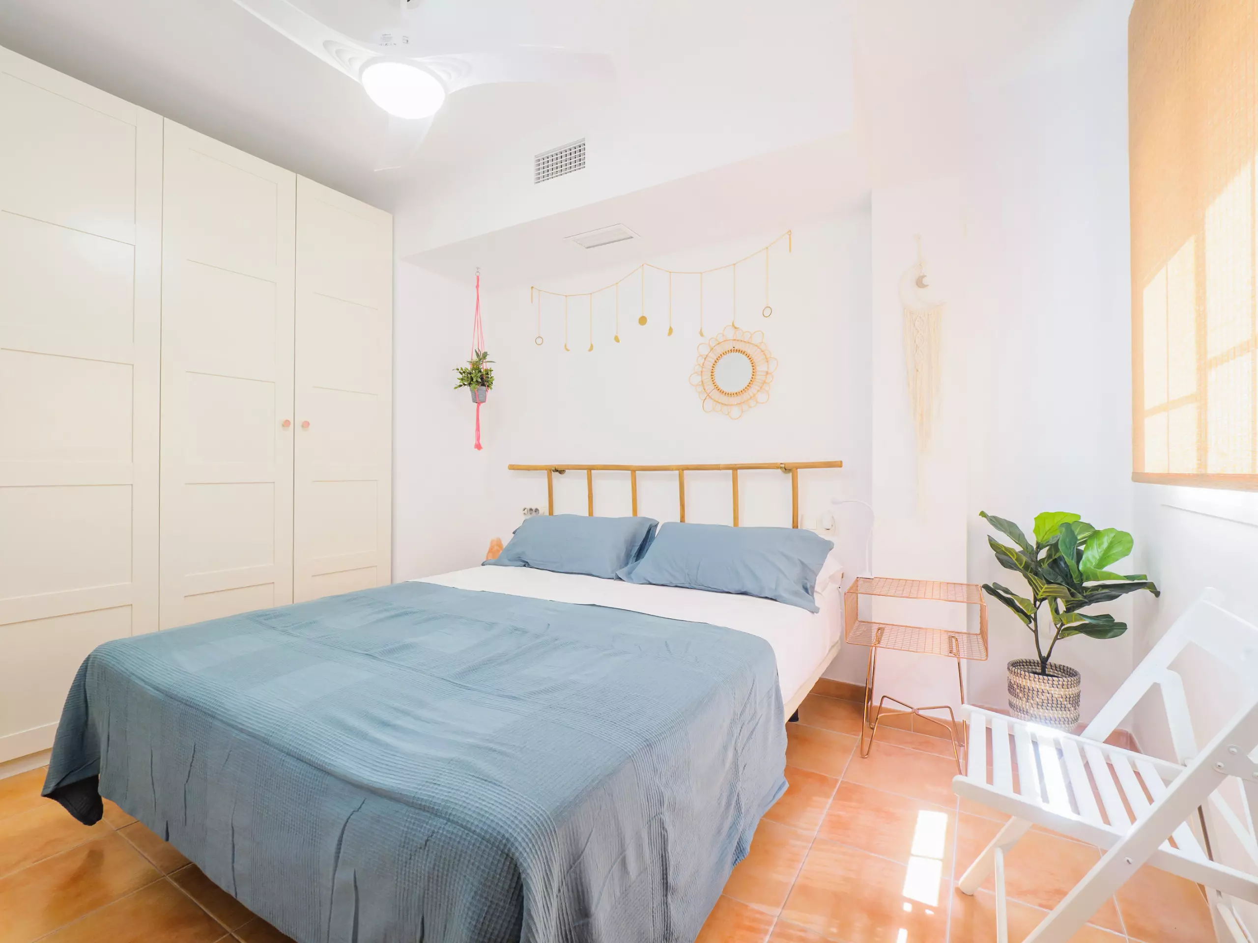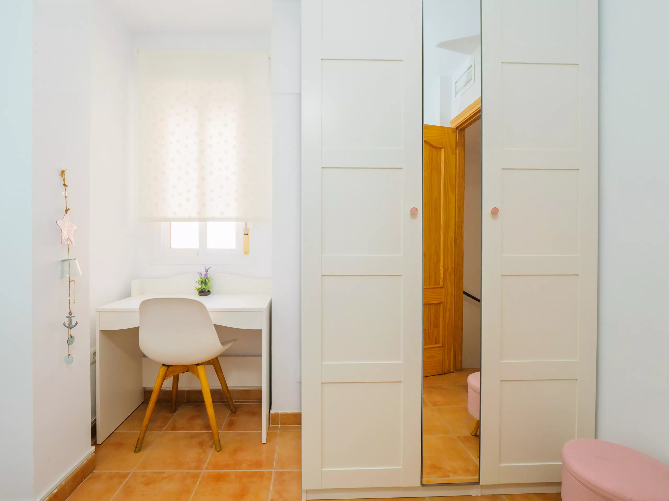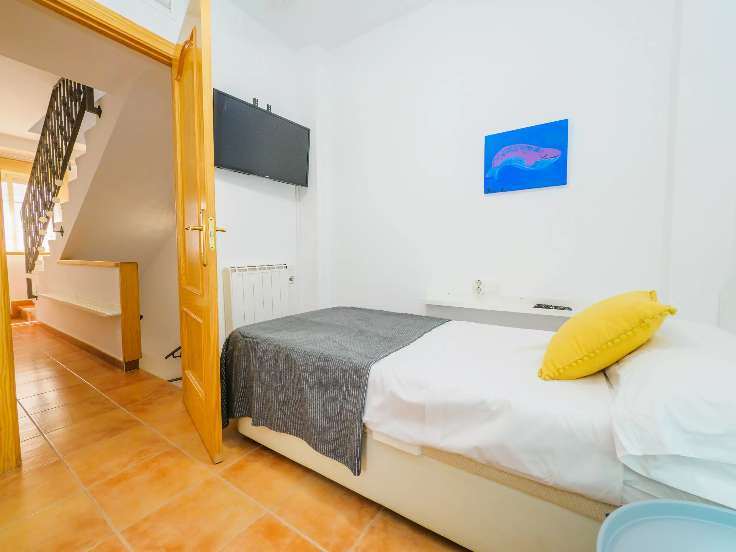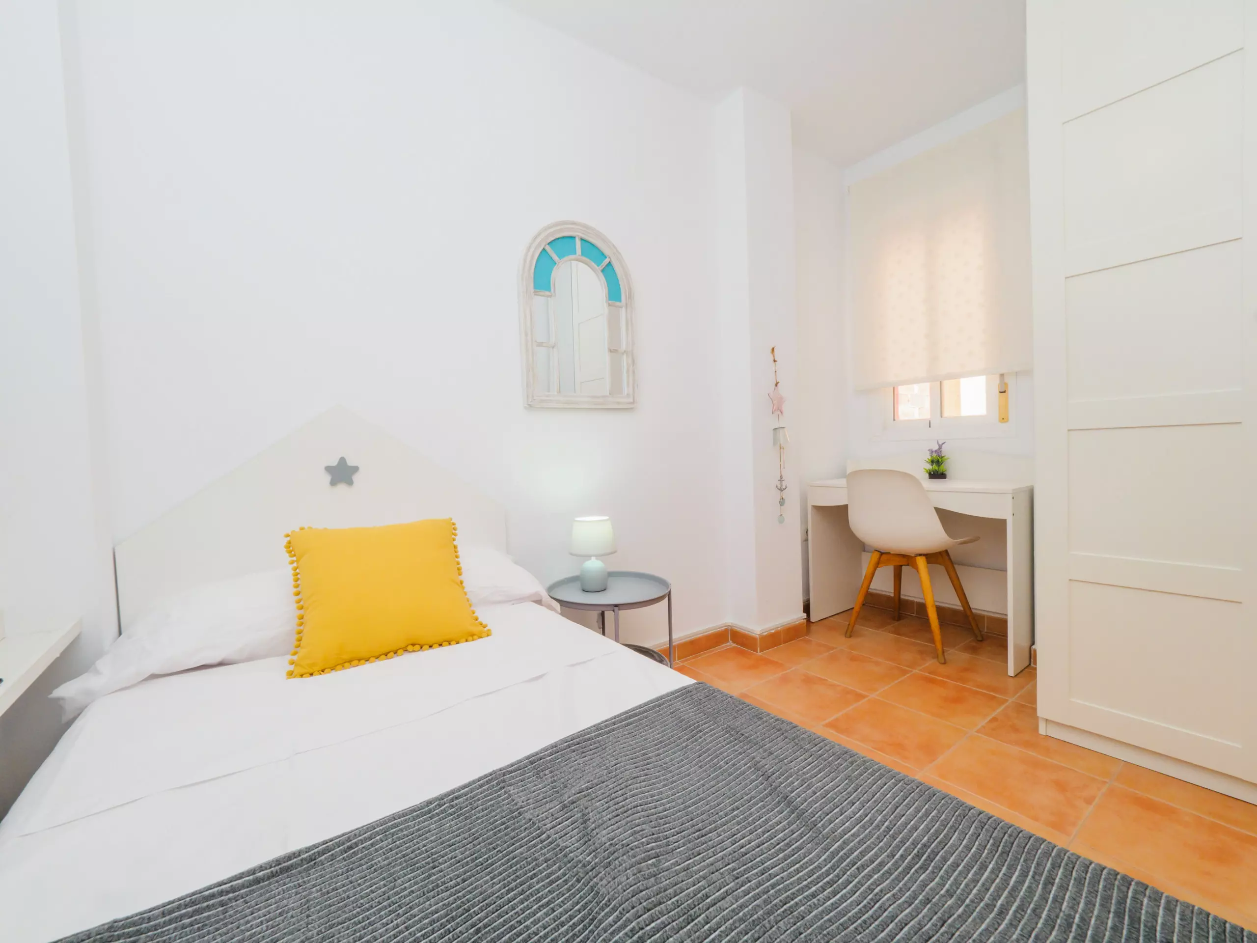 * Trois chambres lumineuses : une avec un lit de couple, une autre avec un lit simple et une troisième avec un lit superposé triple (lit double en bas et lit simple en haut).