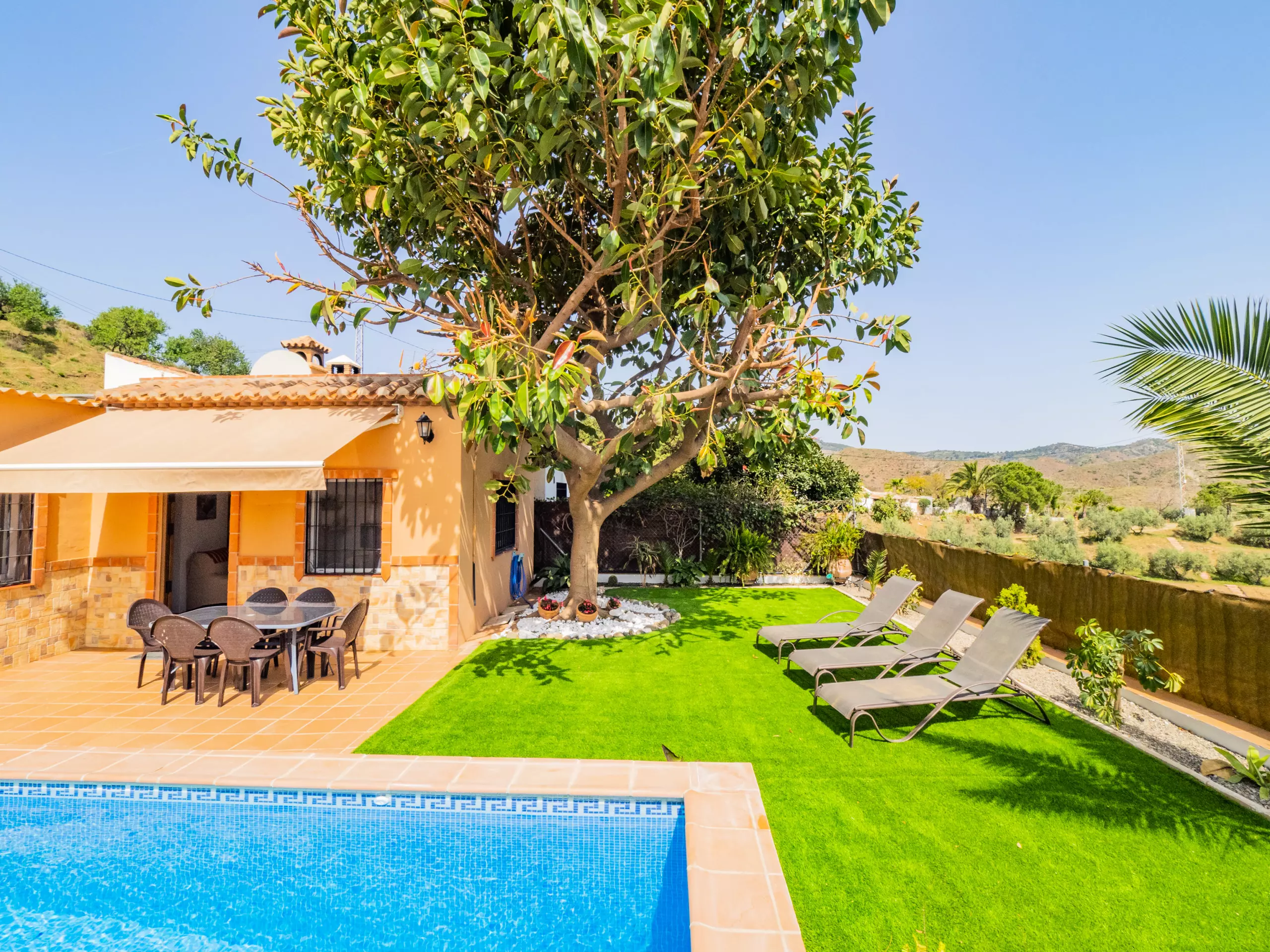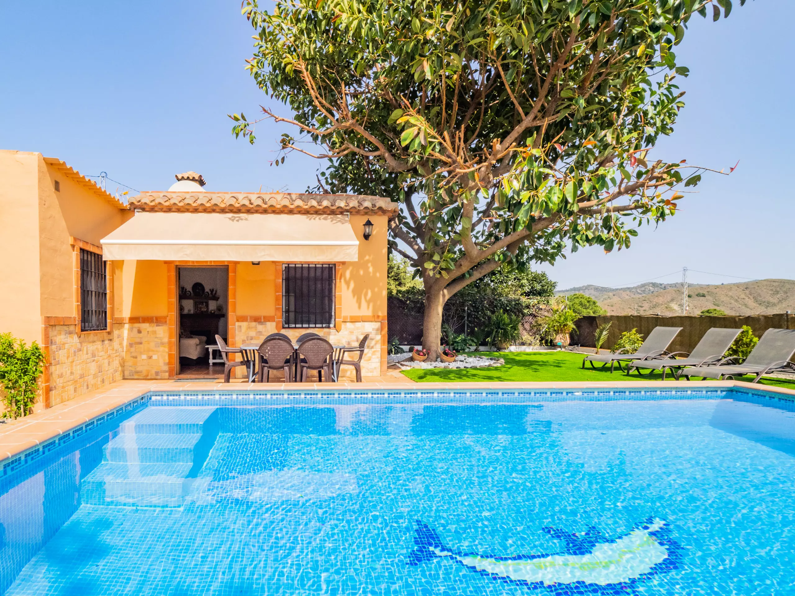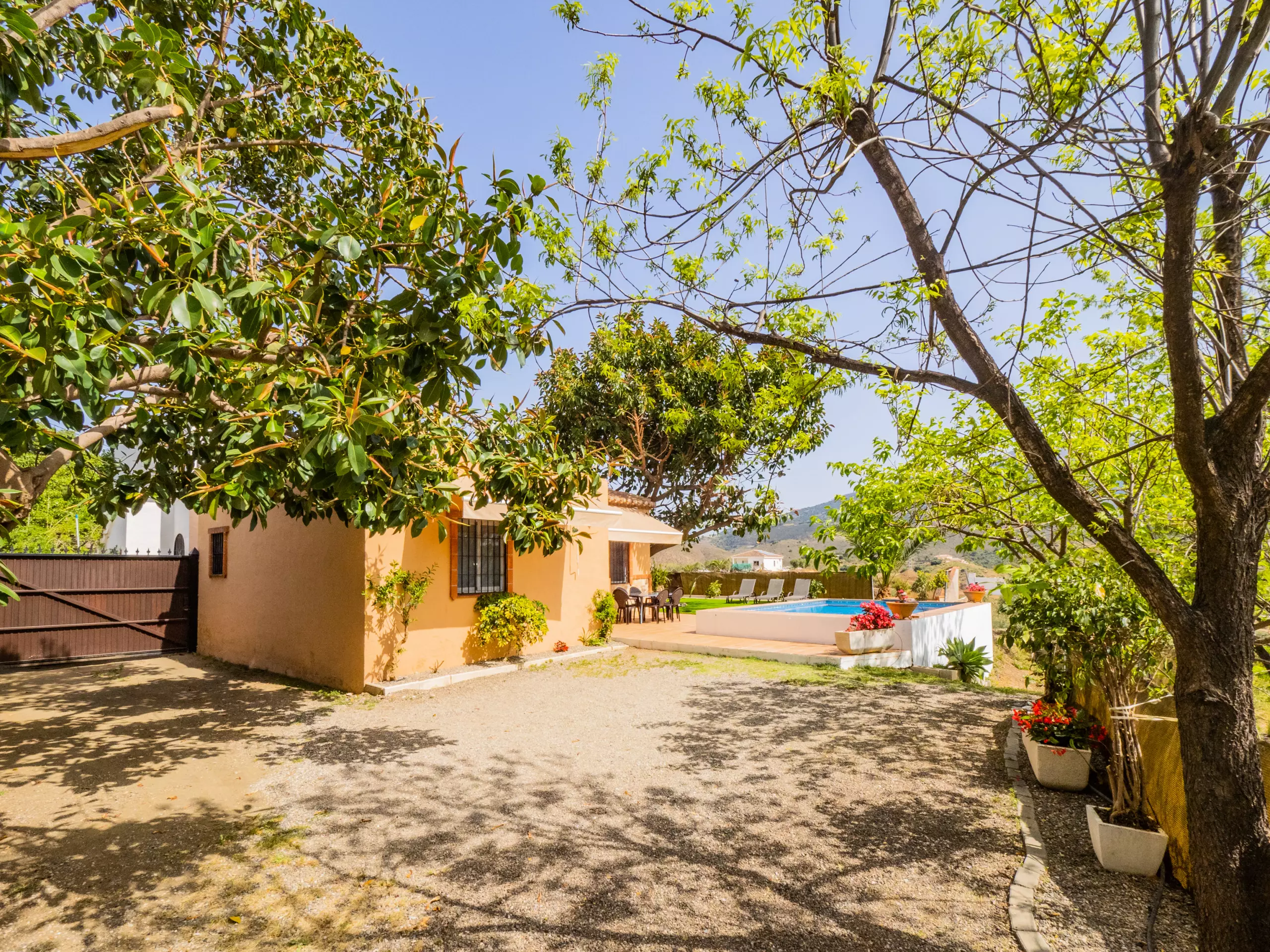 Cette charmante ferme de 3 chambres offre un hébergement pour 6 personnes, parfaite pour les familles ou les groupes recherchant intimité et confort dans un environnement naturel. Profitez de la climatisation, du wifi gratuit et d'une piscine privée avec des vues impressionnantes sur les montagnes ?. Le logement comprend une chambre double et deux chambres avec lits individuels, un salon accueillant, une cuisine américaine et une salle de bain avec douche. Situé dans une zone rurale calme, la ferme garantit paix et intimité, avec un beau jardin équipé de table et chaises pour se détendre près de la piscine et se connecter à la nature. De plus, vous serez à seulement 15 km des plages de Fuengirola et à 9 km du charmant village d'Alhaurín el Grande, combinant le meilleur de la vie rurale et côtière.