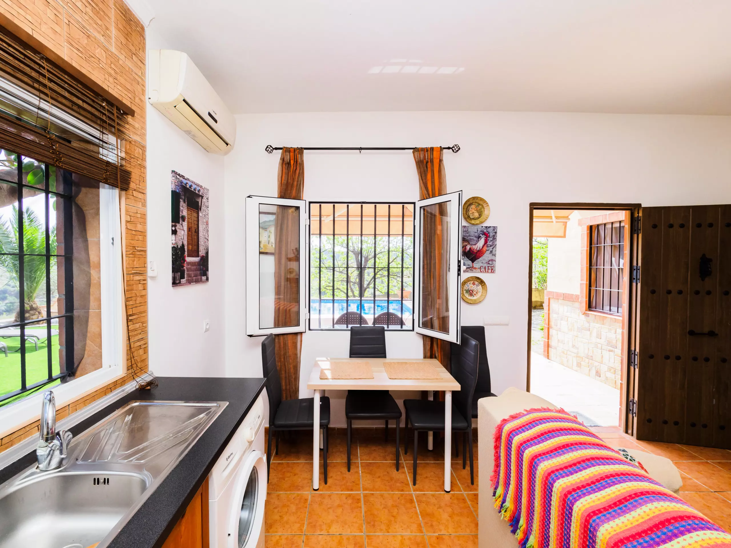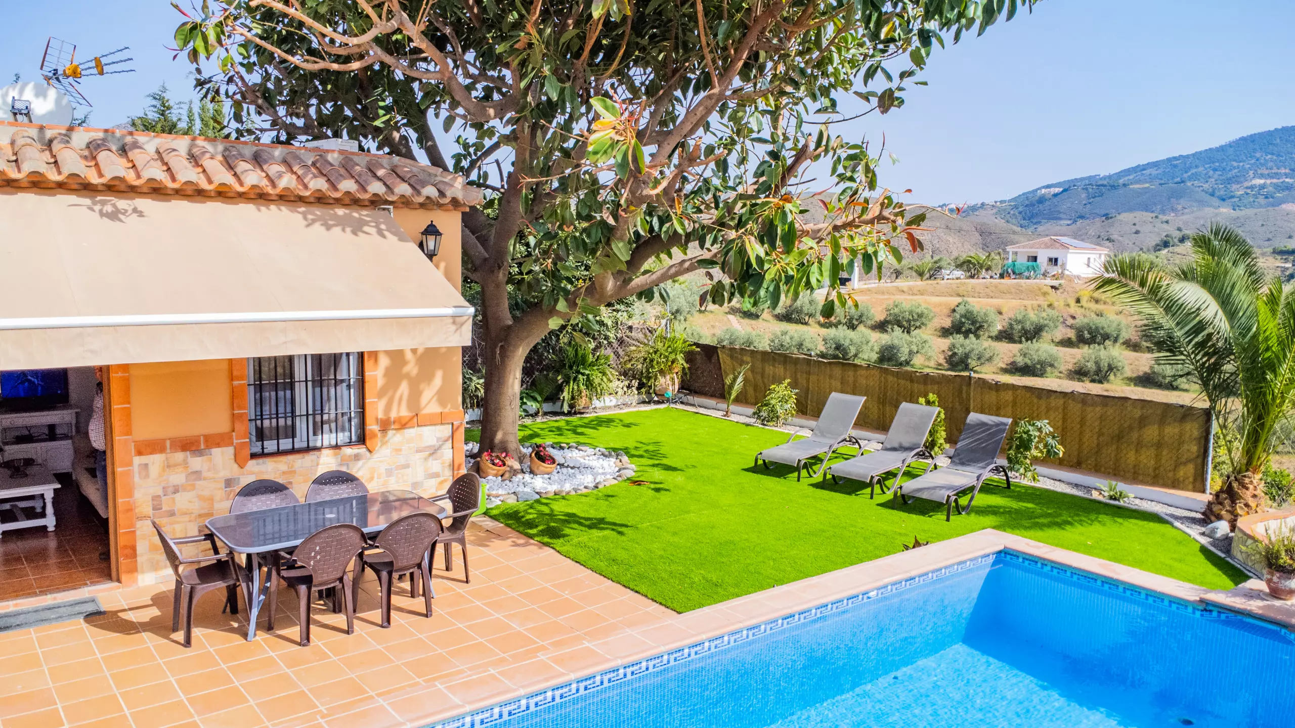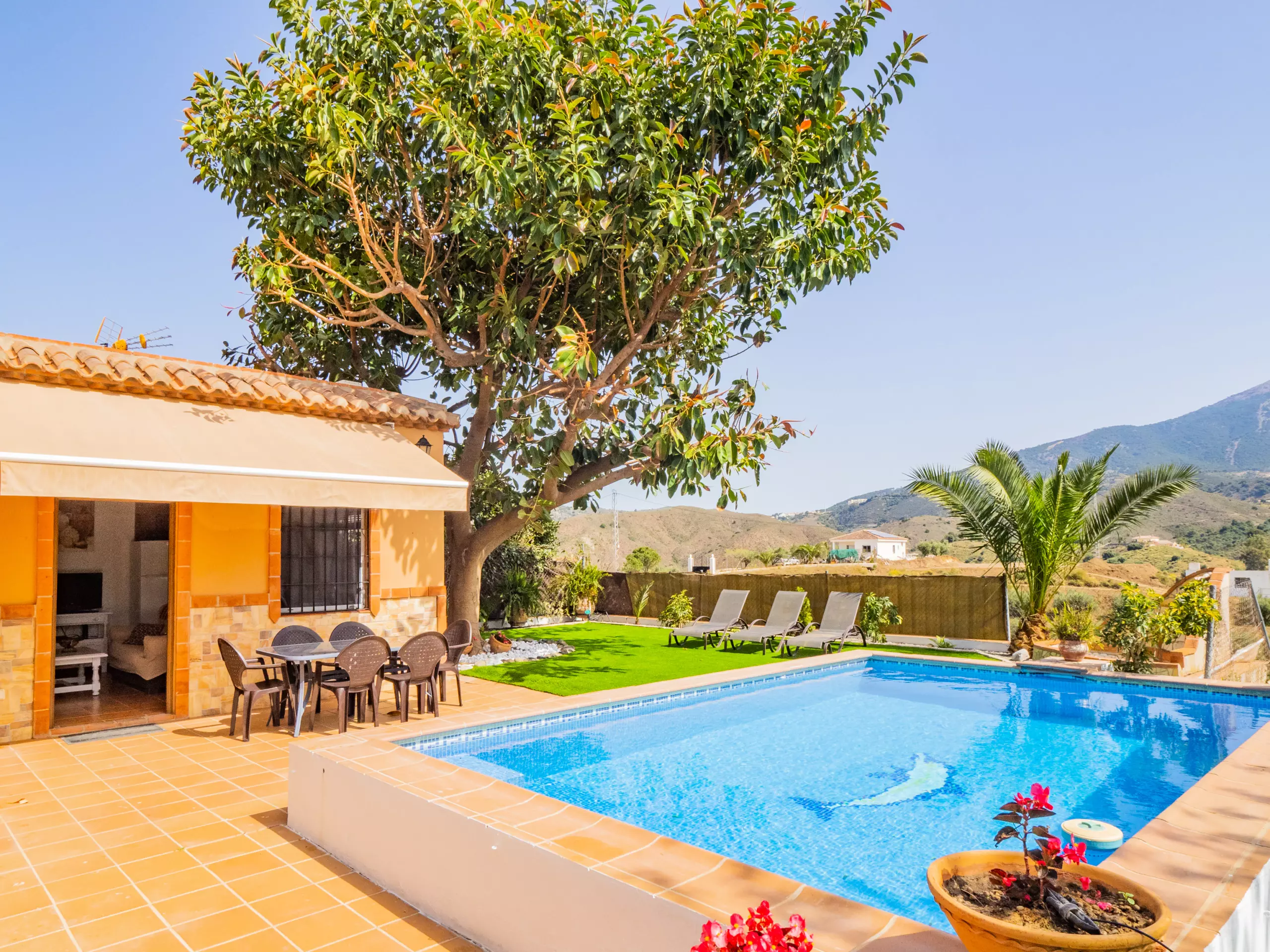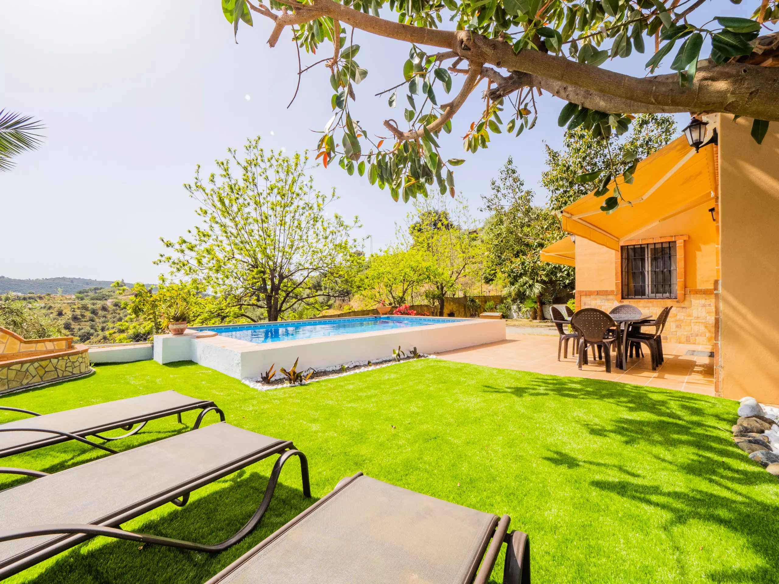 Cette charmante ferme de 3 chambres offre un hébergement pour 6 personnes, parfaite pour les familles ou les groupes recherchant intimité et confort dans un environnement naturel. Profitez de la climatisation, du wifi gratuit et d'une piscine privée avec des vues impressionnantes sur les montagnes ?. Le logement comprend une chambre double et deux chambres avec lits individuels, un salon accueillant, une cuisine américaine et une salle de bain avec douche. Situé dans une zone rurale calme, la ferme garantit paix et intimité, avec un beau jardin équipé de table et chaises pour se détendre près de la piscine et se connecter à la nature. De plus, vous serez à seulement 15 km des plages de Fuengirola et à 9 km du charmant village d'Alhaurín el Grande, combinant le meilleur de la vie rurale et côtière.