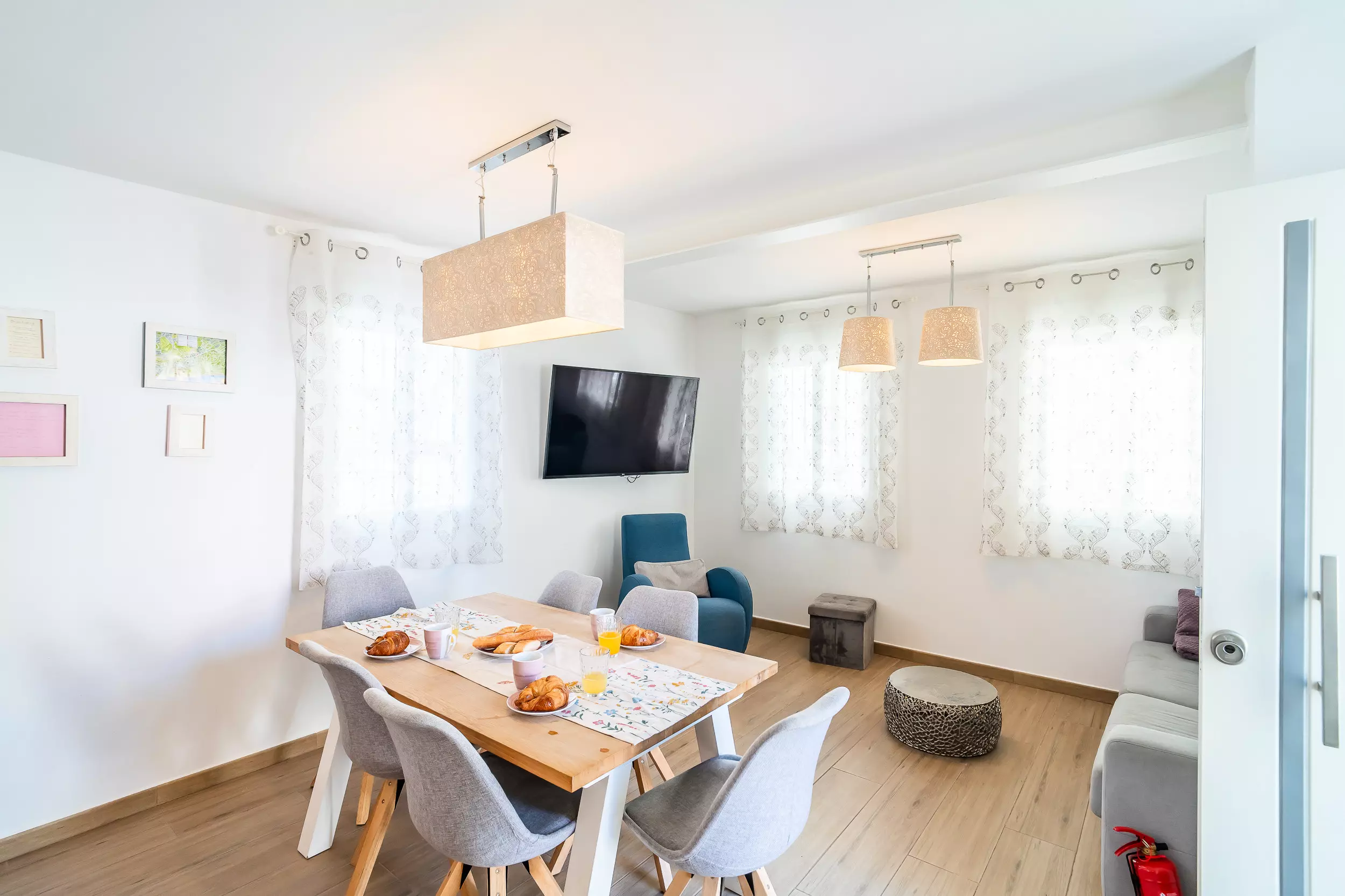 À l'intérieur, vous trouverez un salon confortable avec Smart TV, connexion wifi, climatisation dans tout le logement et chauffage, pour que vous puissiez profiter de la maison à toutes les saisons. La cuisine américaine, moderne et entièrement équipée, dispose d'un four, d'un micro-ondes, d'un lave-vaisselle, d'un congélateur, d'un presse-agrumes, d'une bouilloire, d'un grille-pain et de deux options pour les amateurs de café : une cafetière à filtre et une Nespresso.