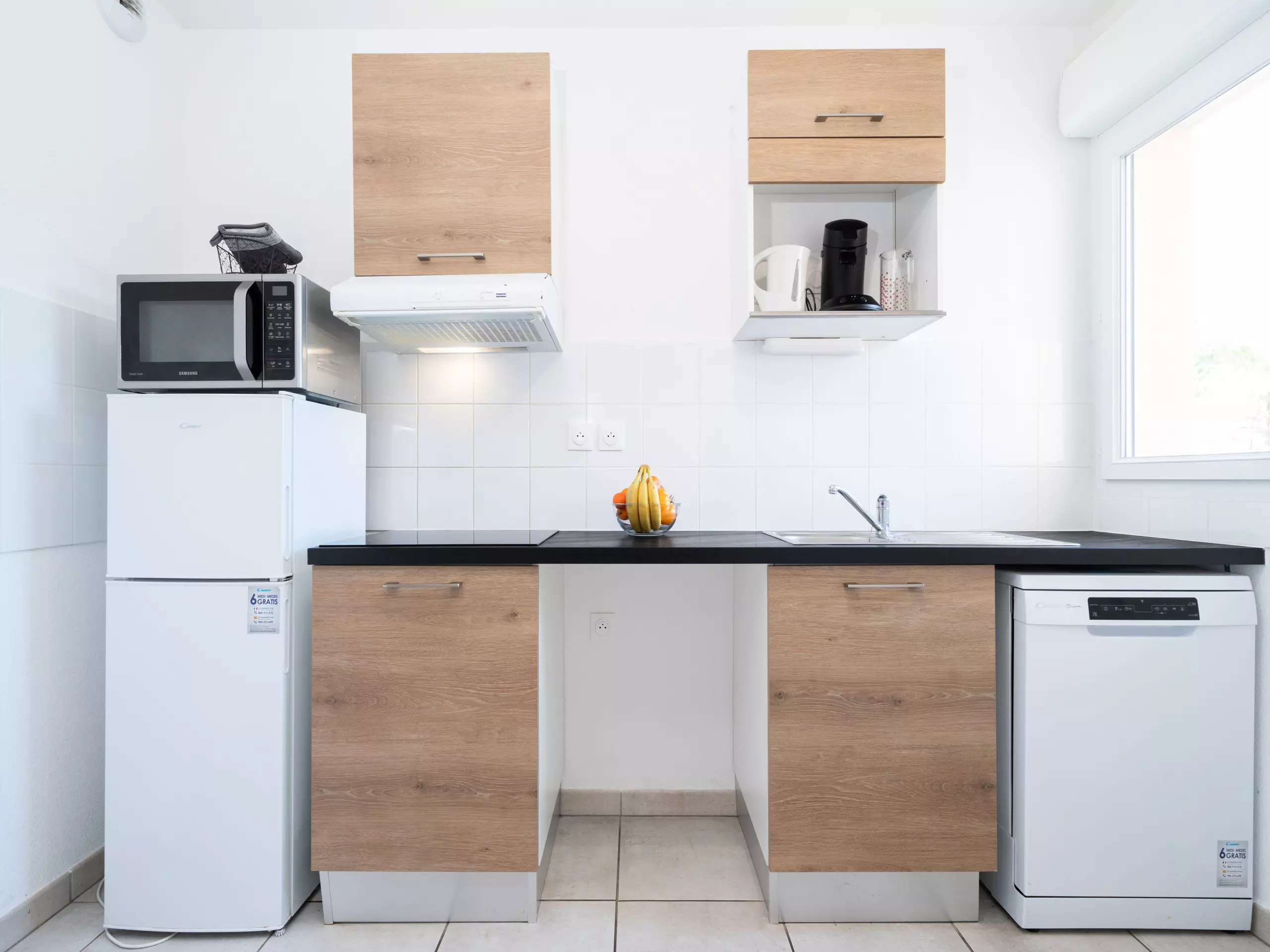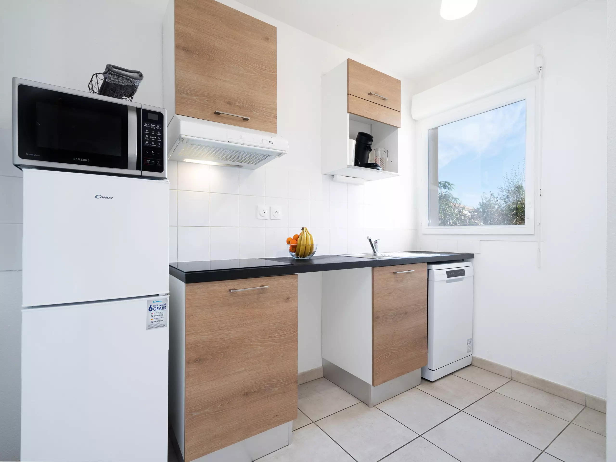 - Cuisine équipée (réfrigérateur, grille-pain, bouilloire,Micro-ondes, cafetière à dosette NESPRESSO, lave-vaisselle et ustensiles de cuisine) ;