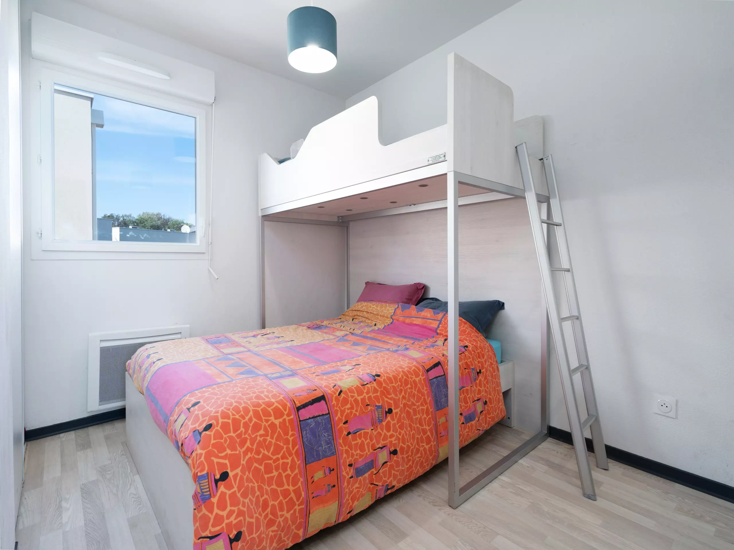 - Chambre 2 : lit double (1x2 pers 140x190) + lit simple mezzanine (1x1 pers 90x190)