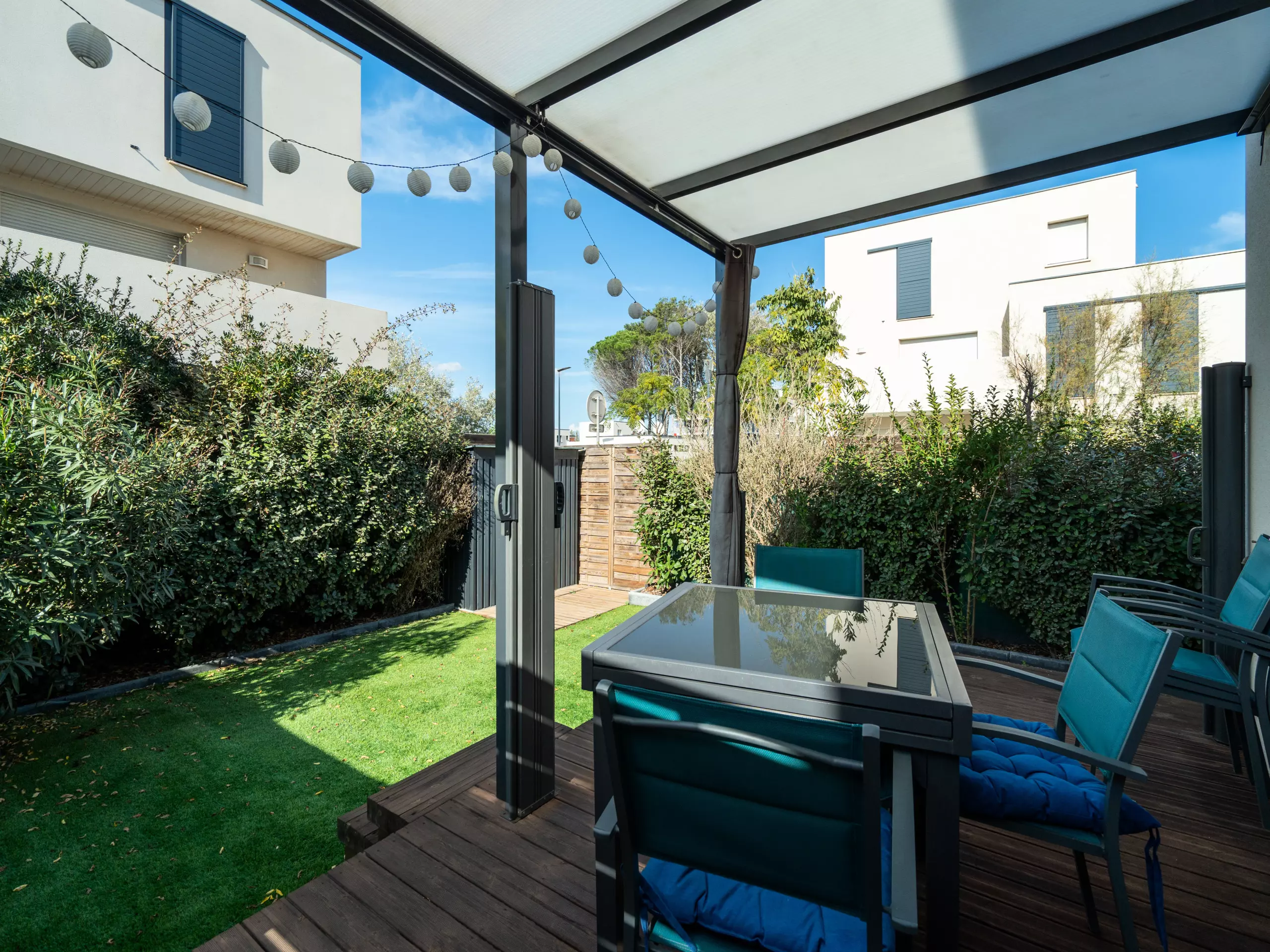 - Terrasse avec petit jardin clôturé ;