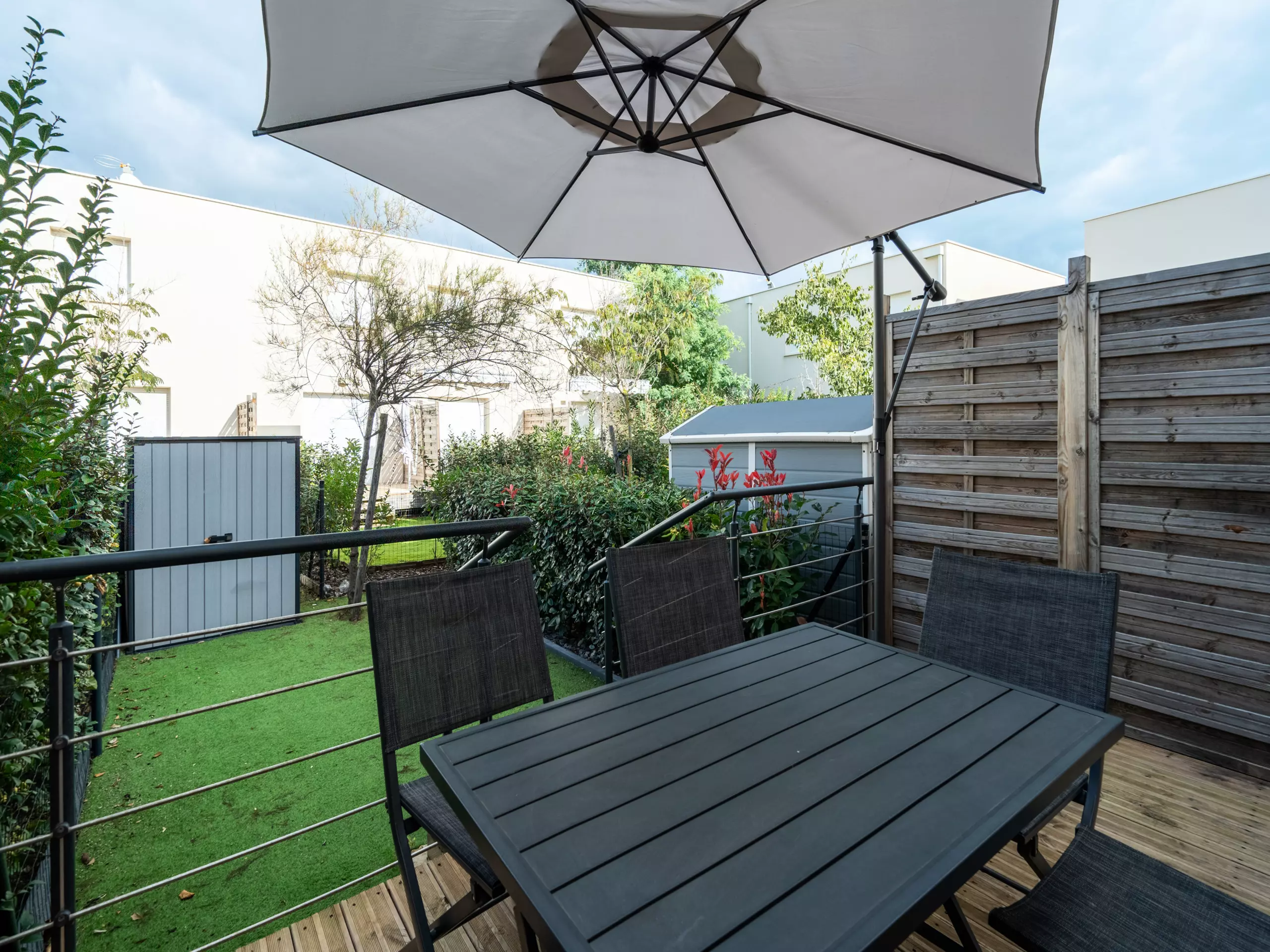 - Terrasse avec petit jardin clôturé;