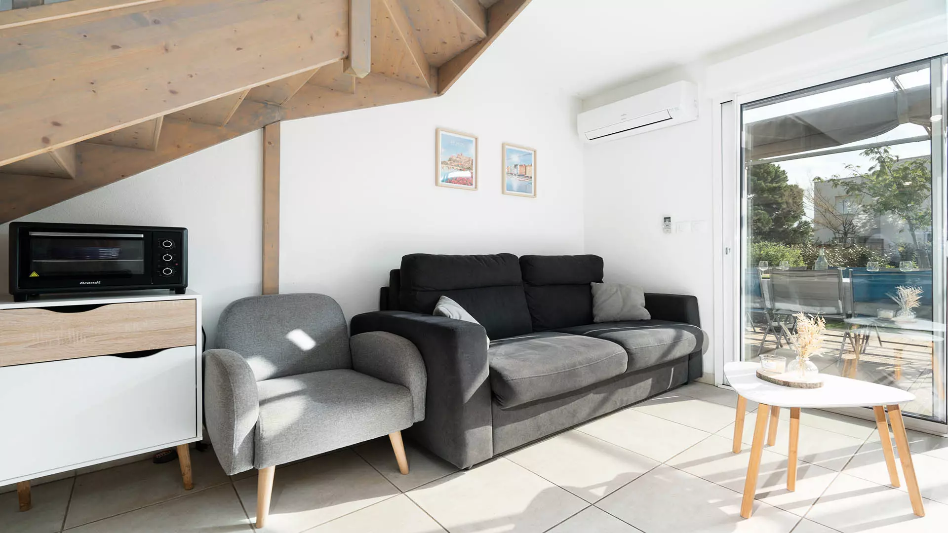 - Charmant séjour avec canapé-lit (1x2 pers, 140x200) et télévision ;