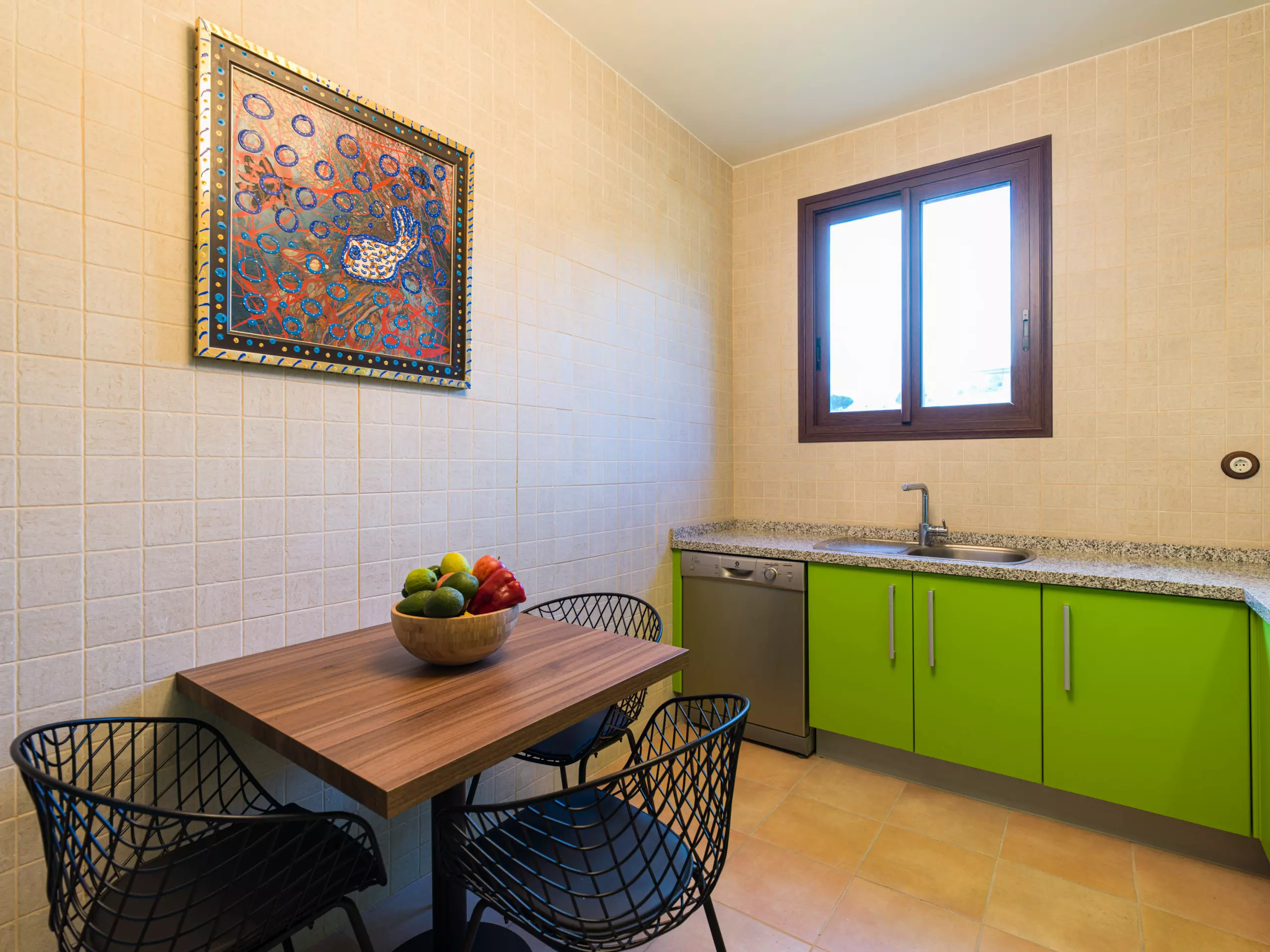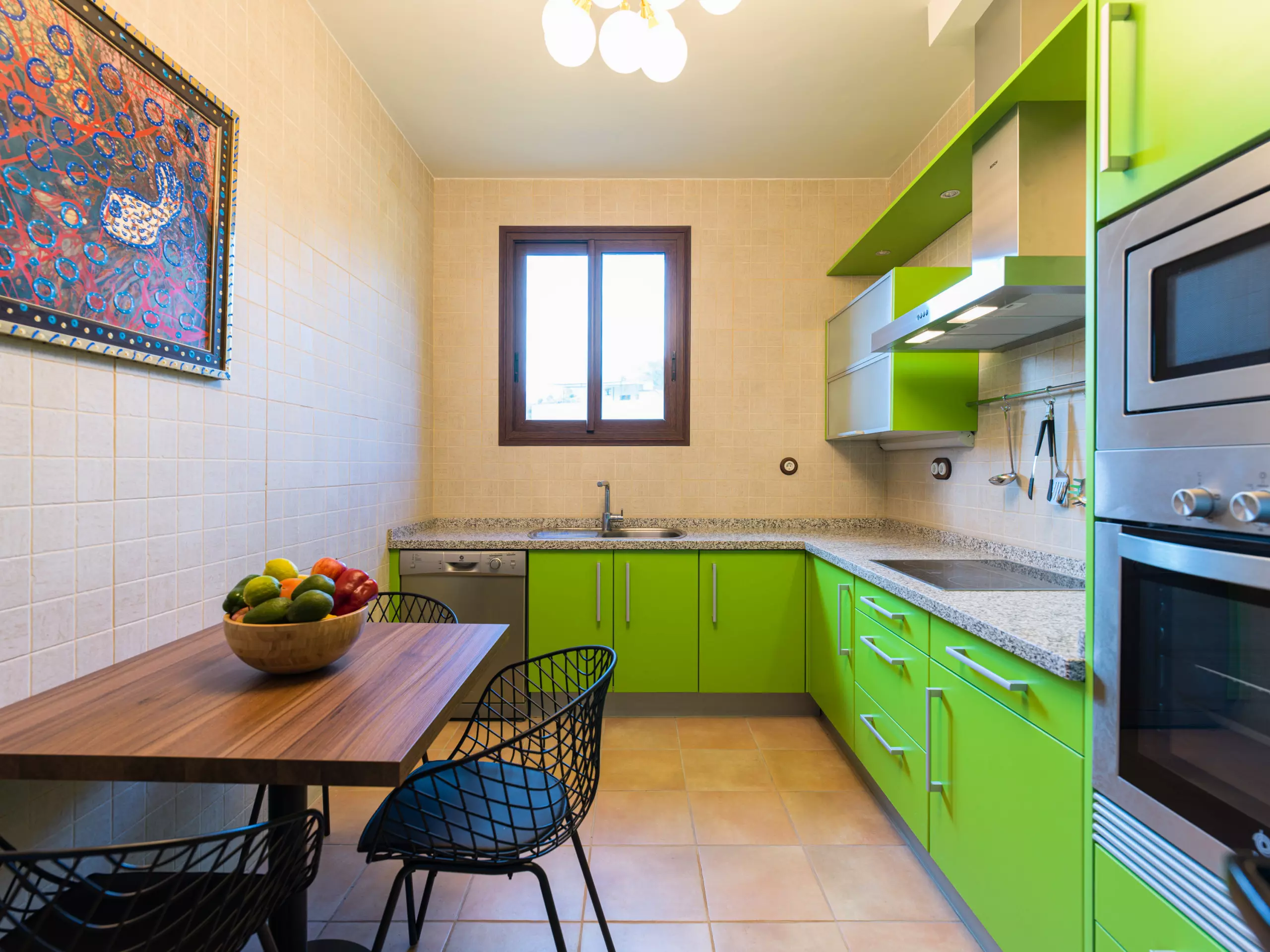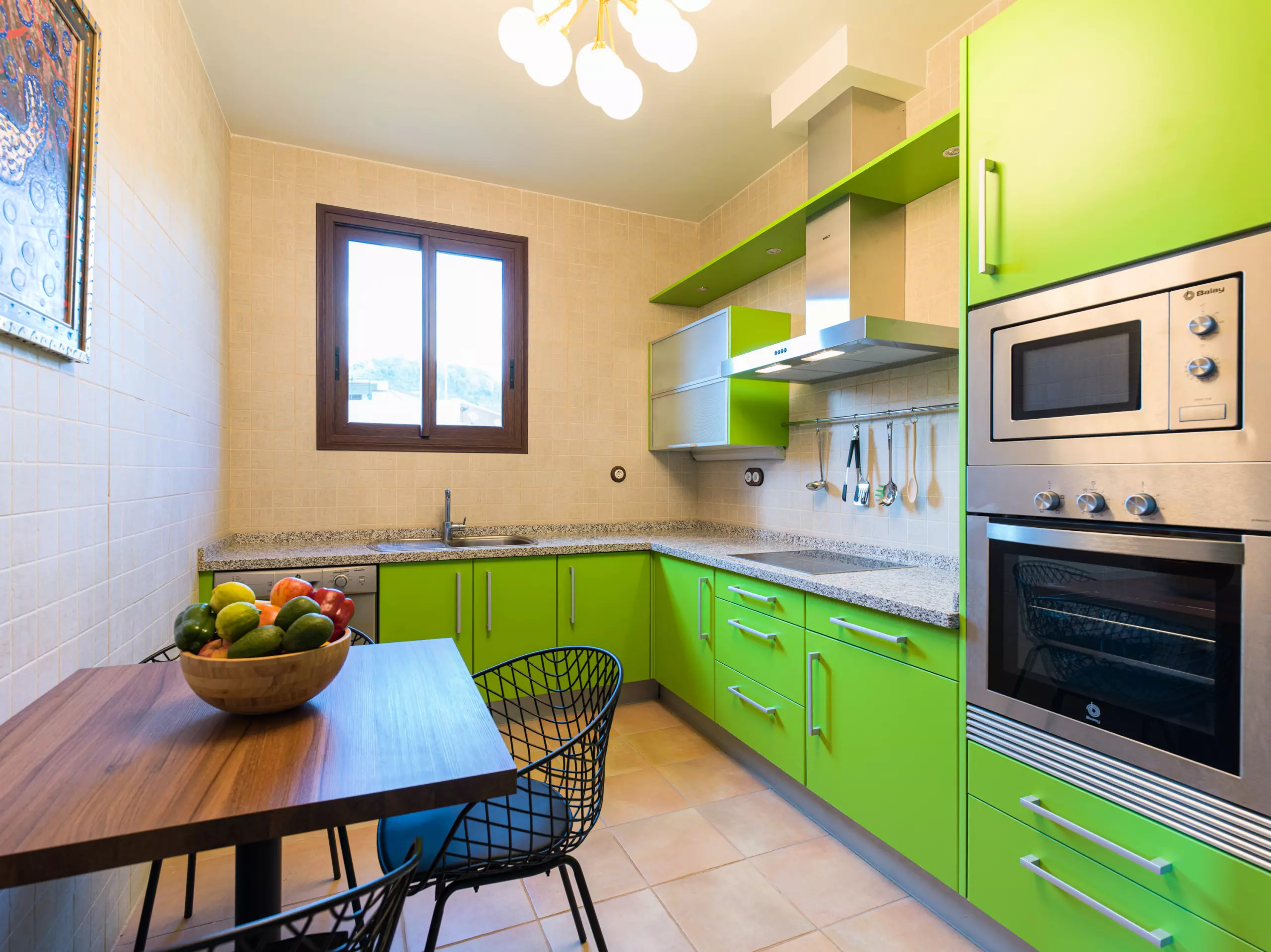 La cuisine est entièrement équipée d'appareils électroménagers modernes tels que lave-linge, lave-vaisselle, four, cafetière, grille-pain, bouilloire et vaisselle complète. Idéal pour préparer des repas et profiter de moments gastronomiques en famille ou entre amis. De plus, elle dispose d'une connexion WiFi pour rester en communication et d'un téléviseur pour des moments de divertissement.