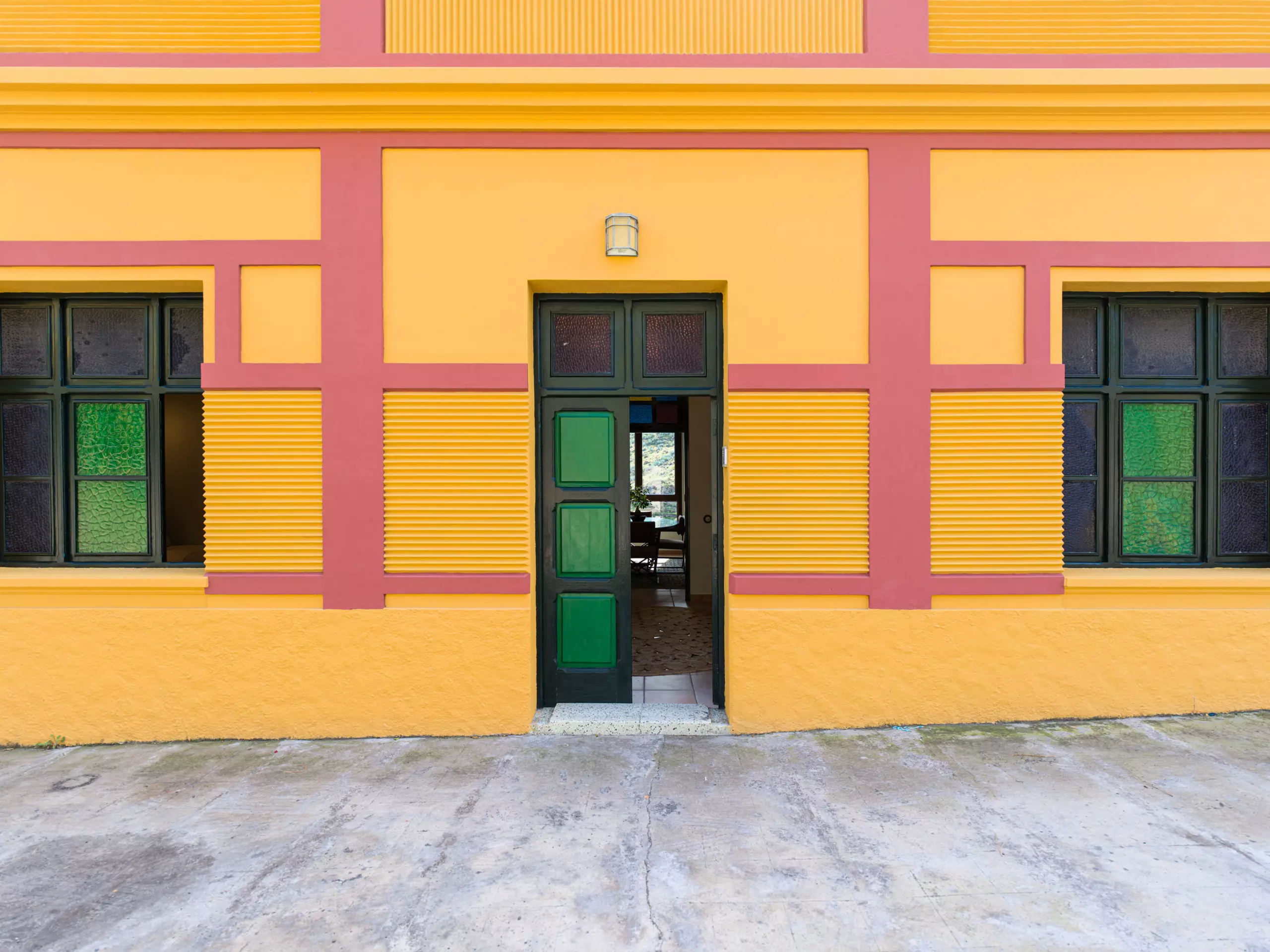 L'extérieur offre un vaste terrain de 3000 mètres carrés avec des vues impressionnantes sur la montagne et les jardins, créant une ambiance naturelle et relaxante. Il dispose de places de stationnement privées en plein air, ce qui facilite le stationnement des véhicules de location ou personnels.