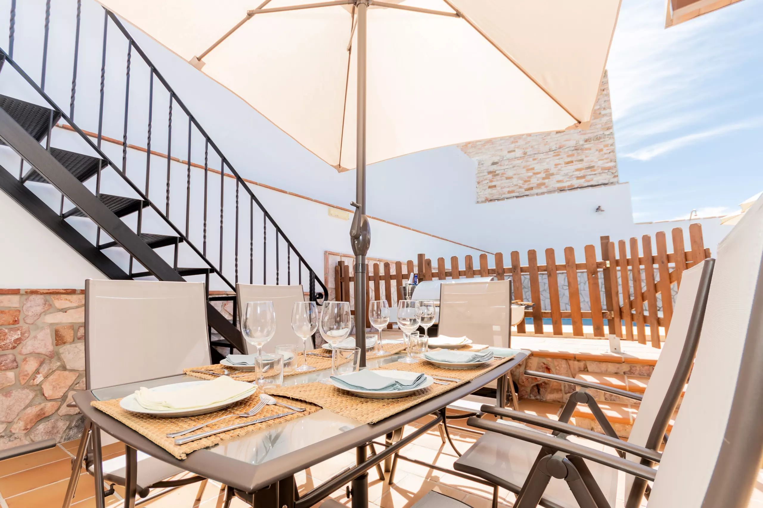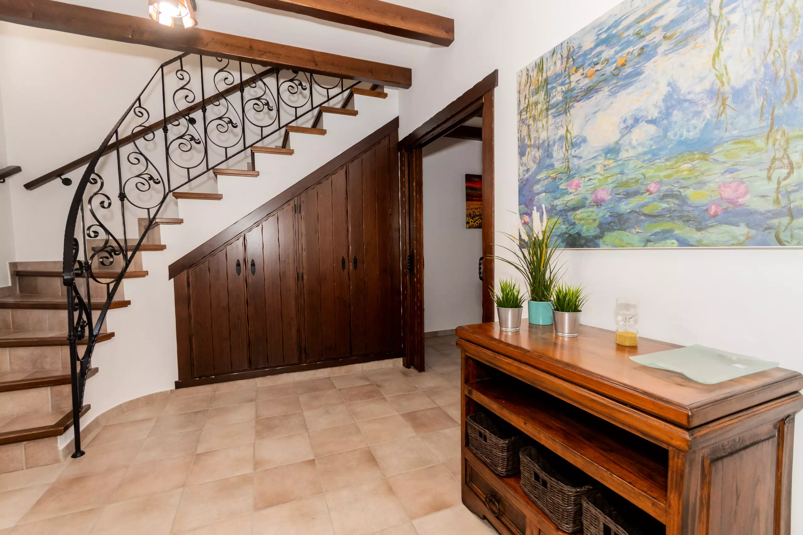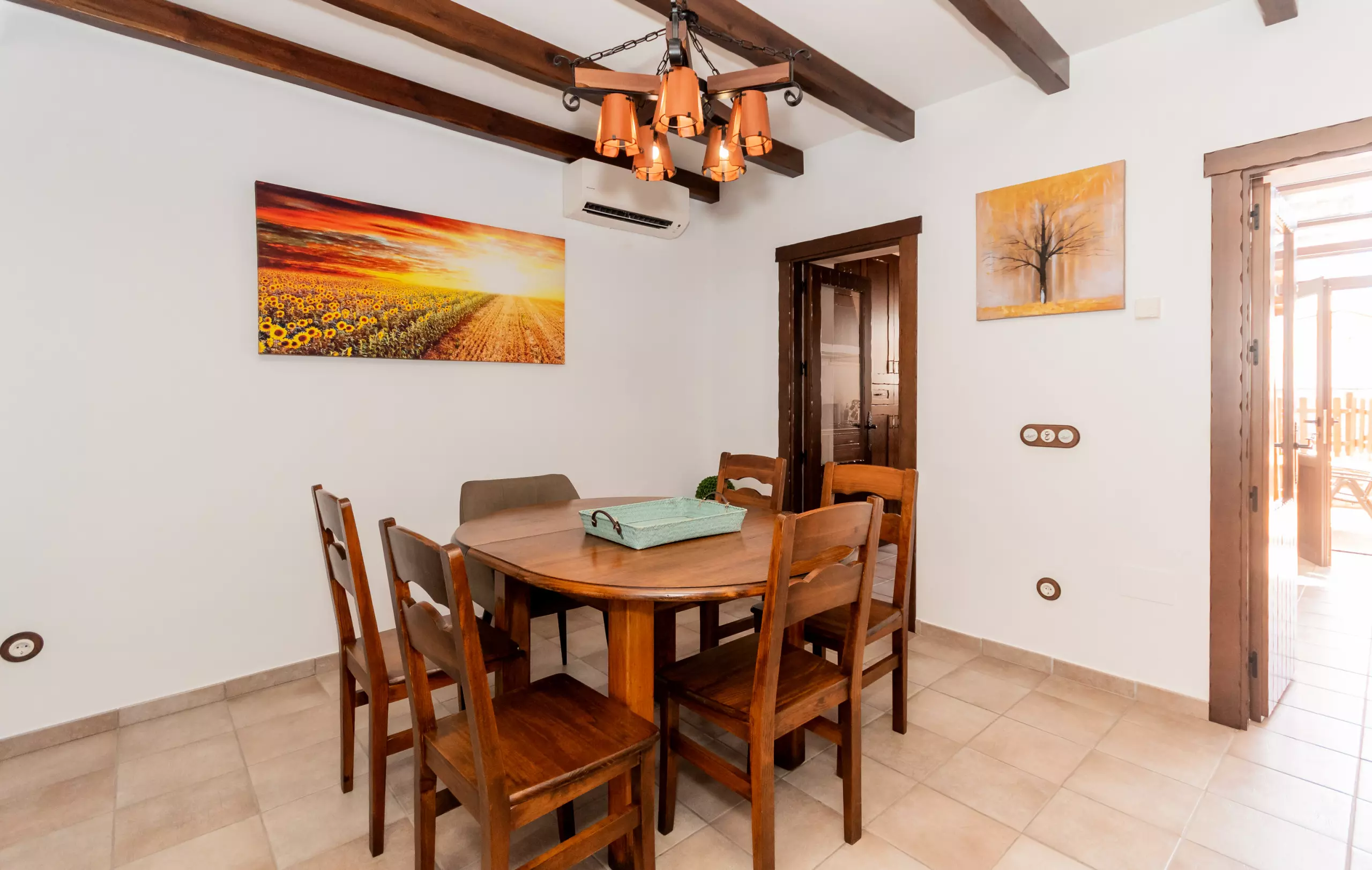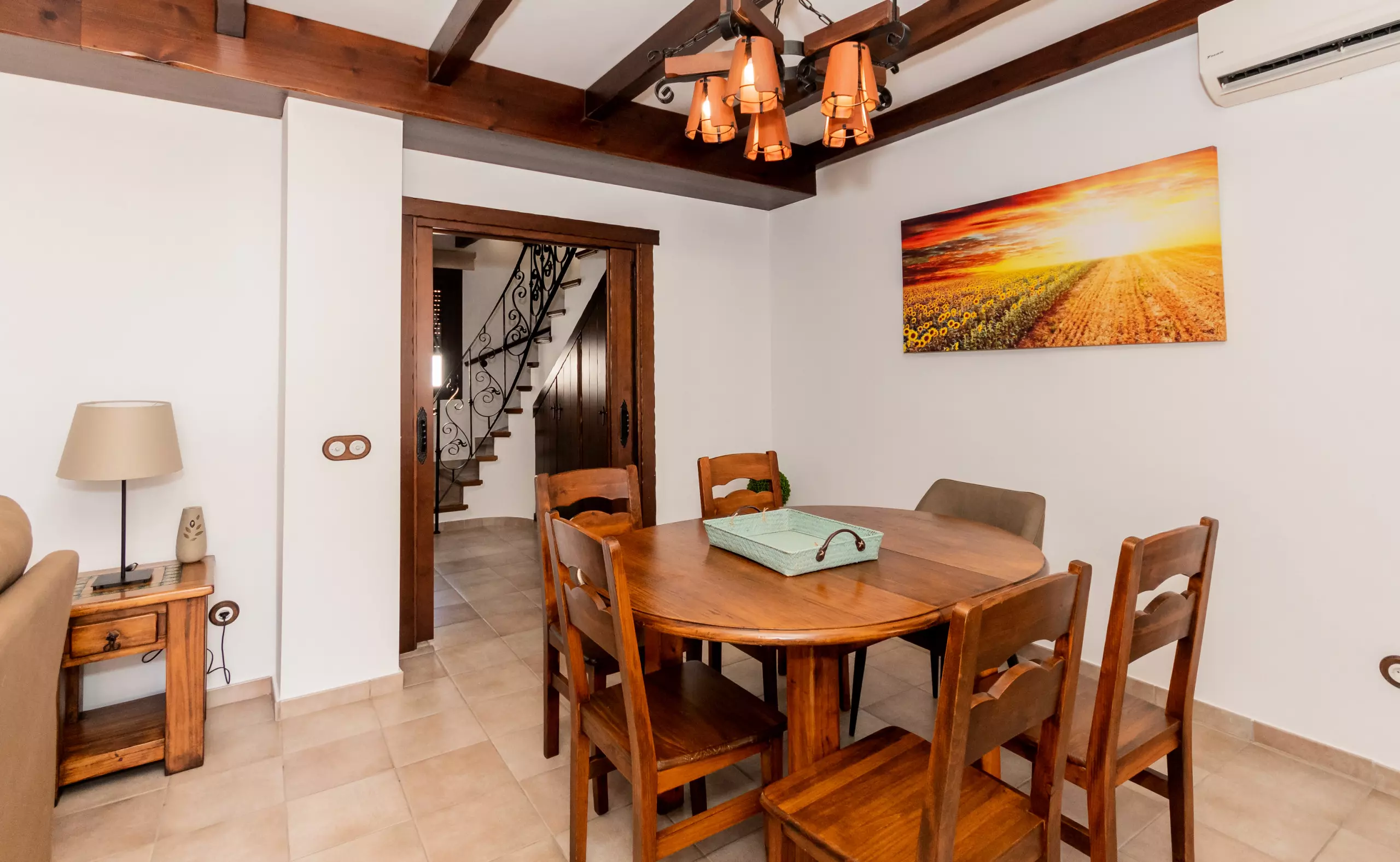 Avec une capacité de 6 personnes dans 4 chambres, le logement est spacieux et lumineux, avec un design qui combine le rural et les conforts modernes. Au rez-de-chaussée, vous trouverez un grand hall d'entrée qui se connecte à un salon-salle à manger accueillant équipé de la climatisation et d'une cheminée, parfait pour les réunions familiales et les moments de détente. La cuisine indépendante, très lumineuse et dotée d'appareils électroménagers modernes tels que l'induction, le réfrigérateur, le micro-ondes, le four, le lave-vaisselle et la cafetière, a un accès direct à une cour arrière couverte et très agréable, idéale pour des déjeuners en plein air ou des après-midis de lecture.