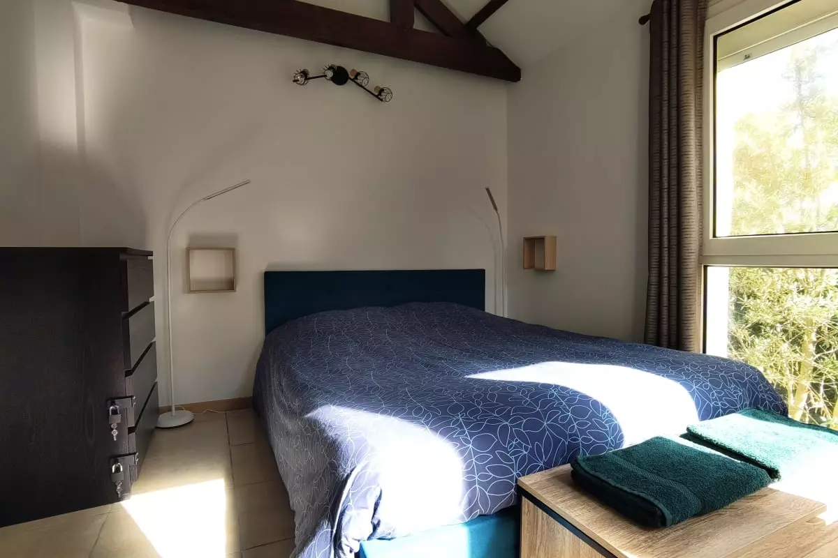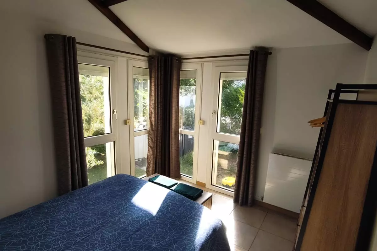 La partie nuit se compose d'une chambre accueillante disposant d'un lit double de 160x190 et d'un lit parapluie de taille standard pour les jeunes enfants.