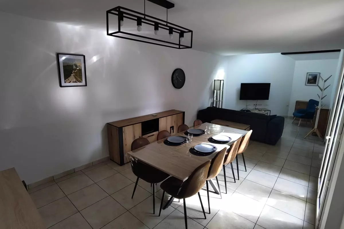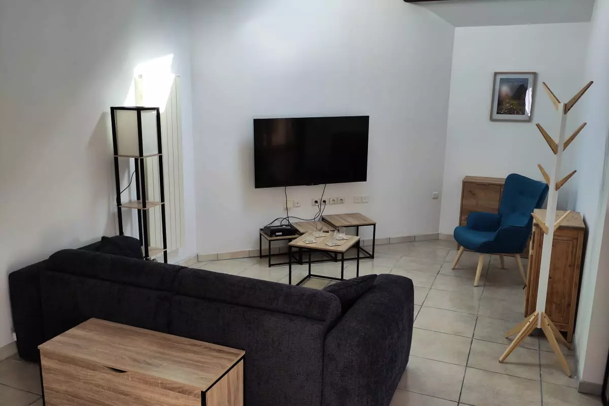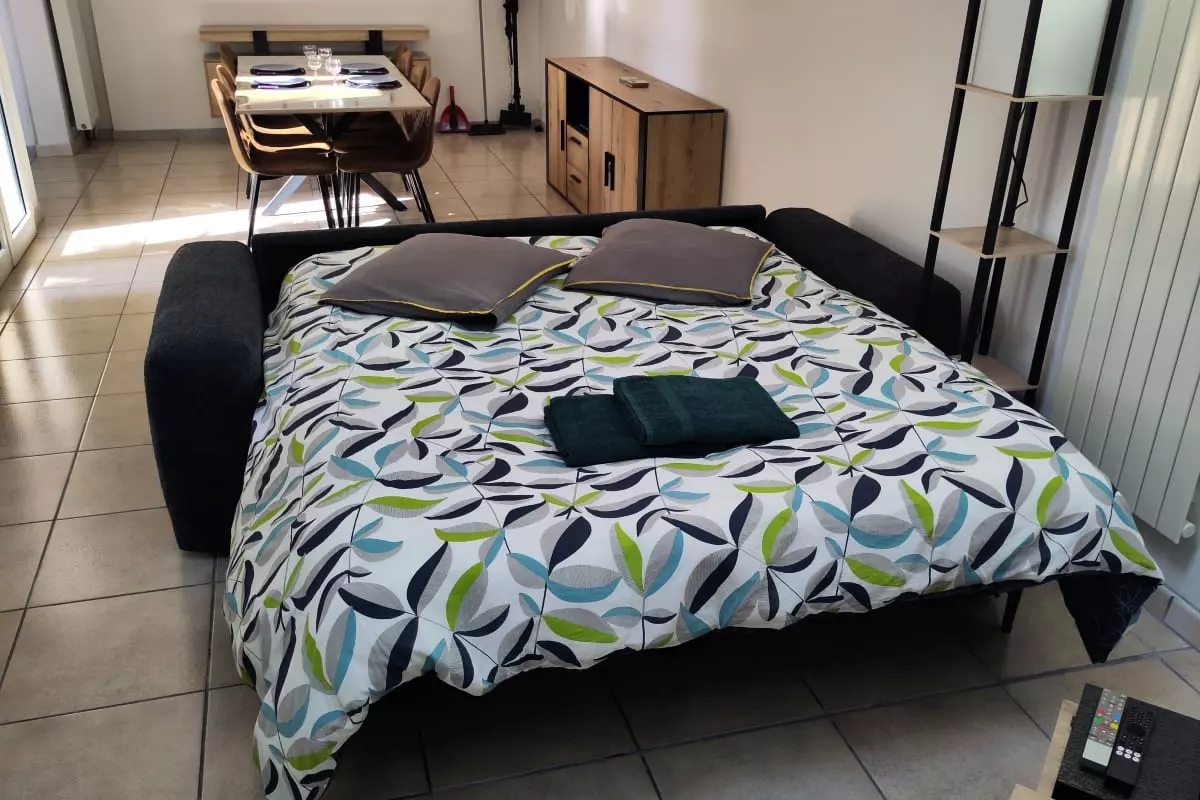 Le salon dispose d'un canapé convertible de 160x190 ainsi que d'un matelas supplémentaire pour vous garantir un confort absolu lors de vos moments de détente après une journée de balade.