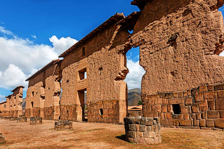 Vous traverserez les paysages spectaculaires de l’Altiplano, ponctués de plusieurs arrêts sur des sites d’intérêt culturel et historique : Raqchi, célèbre pour son impressionnant temple dédié au dieu Wiracocha, et Andahuaylillas, connue pour sa magnifique église baroque surnommée la « Chapelle Sixtine de l’Amérique latine ».