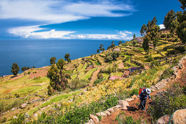 Poursuite de la navigation vers l’île de Taquile habitée par 1 500 habitants conservant leurs anciennes traditions et activités, auxquelles ils ont intégré, depuis une vingtaine d'année, le tourisme. Il convient de souligner la qualité des tissages qu’ils élaborent.