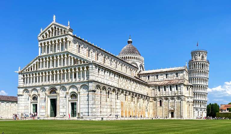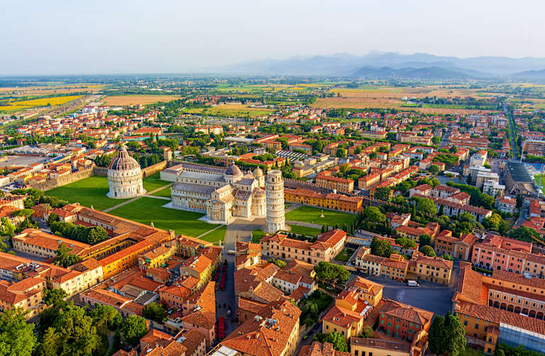 Après le petit-déjeuner, rencontrez le chauffeur et partez pour Pise où vous retrouverez votre guide sur la Piazza dei Miracoli (Piazza del Duomo). L'une des places les plus célèbres du monde où se trouve sur une immense esplanade la tour penchée, le campanile de 58 m de haut qui est le symbole de Pise. Sa célèbre inclinaison en a fait l'un des monuments les plus visités au monde. Exemple réussi de l'art roman pisan, il est entouré de six étages de galeries qui semblent se déployer en une légère spirale. Bonanno Pisano a commencé sa construction en 1173 et c'est un siècle plus tard que Giovanni di Simone a essayé de corriger son inclinaison sans toutefois pouvoir terminer son œuvre. Le Baptistère : ce majestueux édifice circulaire (110 m de circonférence) est recouvert d'une coupole singulière, terminée par une petite pyramide tronquée et surmontée d'une statue de Saint Jean-Baptiste. À l'intérieur, de magnifiques fonts baptismaux octogonaux, œuvre réalisée en 1246 par Guido Bigarelli, et une admirable chaire sculptée en 1260 par Nicola Pisano. Les fresques du cimetière monumental : dans la partie nord de la place des Miracles se trouvent de superbes fresques, dont le célèbre Triomphe de la mort attribué à Buffalmacco. Après la visite, retour à Lucques. Passez la nuit à Lucques.