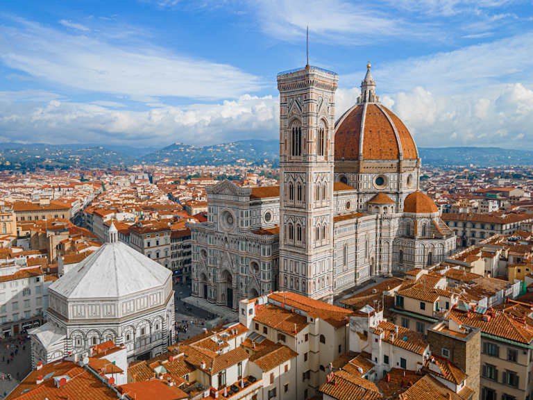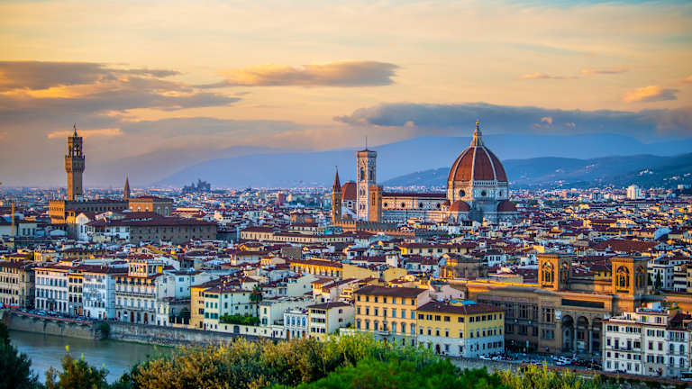Après le petit déjeuner, retrouvez votre chauffeur et partez pour Florence. Enregistrez-vous et passez le reste de la journée à votre guise. Visitez le centre-ville de votre choix et découvrez la cathédrale de Santa Maria del Fiore avec son baptistère, la tour de Giotto et le dôme de Brunelleschi. Au coucher du soleil, promenez-vous le long de l'Arno. Admirez le Ponte Vecchio : promenez-vous le long de cet emblème de Florence pour visiter toutes les boutiques d'artisanat, y compris les célèbres orfèvres. Promenez-vous dans le Lungarno degli Acciaiuoli, à deux pas du palais des Offices et de la Piazza de la Signoria, où vous pourrez vous arrêter pour un apéritif ou un dîner. Passez la nuit à Florence.