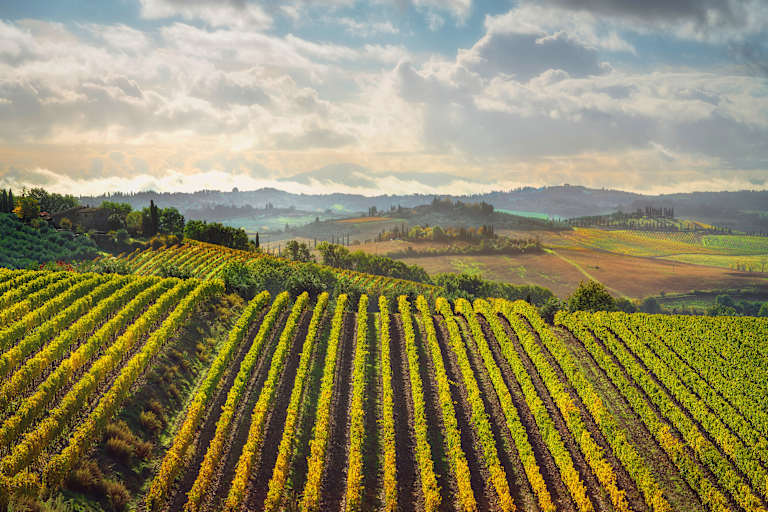 Aujourd'hui, visitez la magnifique région du Chianti et admirez les magnifiques paysages de la Toscane dont vous avez certainement toujours rêvé. La belle couleur rubis et le parfum distinctif aux notes de violette caractérisent l'un des vins les plus célèbres au monde : le Chianti. Ce mélange de vins de Sangiovese, de Merlot et de Cabernet Sauvignon Canaiolo tire son nom de la région vallonnée où il est produit. Les sons, les odeurs et les saveurs de cette terre captiveront vos sens à travers une expérience unique, que vous apprécierez en visitant d'anciennes églises, des châteaux médiévaux et des petits villages où le rythme de vie n'a pas changé au fil du temps. L'excursion se poursuit par la visite d'un charmant domaine viticole. Une visite guidée des caves est prévue pour vous faire découvrir toutes les étapes de la production du vin. Il sera ensuite possible de déguster des vins du domaine ainsi que de la charcuterie, quelques bruschettes et des saucisses. Vous visiterez les villages fortifiés de Monteriggioni où vous trouverez de nombreuses petites boutiques vendant des produits typiques et des cafés élégants où vous pourrez vous arrêter pour prendre un café ou une glace. Passez la nuit à Sienne.