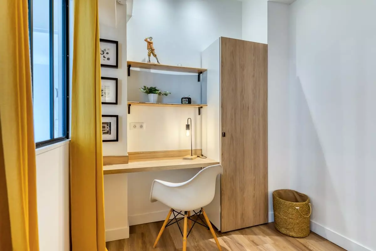 Depuis le séjour, accédez à une chambre confortable, équipée d’un lit double (140x200 cm), d’un bureau et d’un grand dressing.