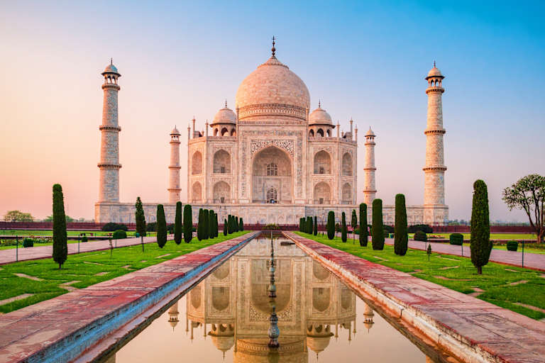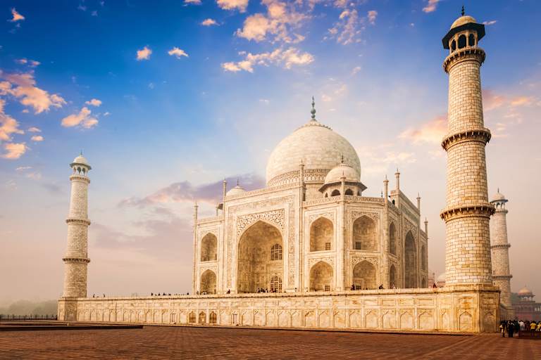 Après le petit-déjeuner, départ pour la visite du Taj Mahal (fermé le vendredi). Au bord de la Yamuna, l'empereur Shah Jahan a fait édifier le Taj Mahal à la mémoire de son épouse préférée. Il est le joyau le plus parfait de l'art indo-persan, et fait partie des 7 Merveilles du patrimoine mondial. Il représente véritablement l'histoire d'un grand amour.