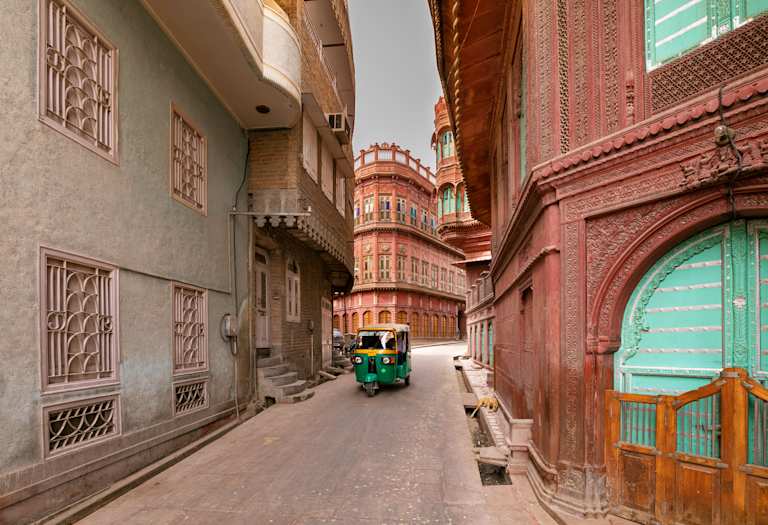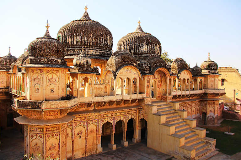 Petit-déjeuner à l'hôtel, puis route vers Shekhawati, une région du Rajasthan surnommée "la galerie d'art à ciel ouvert du Rajasthan". C'est dans ces villages entourés de dunes de sable que l'on trouve les havelis, maisons de riches marchands qui vivaient autrefois du commerce des chameaux entre l'Inde et le Pakistan, petits palais aux murs décorés de fresques peintes, véritables œuvres enluminées.