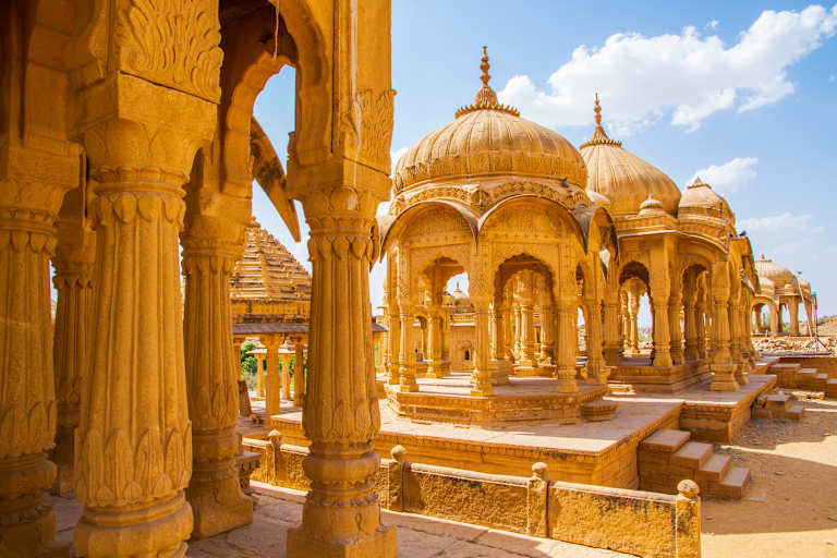 Puis visite de Gadi Sagar et du musée d'art populaire. Visite de Vyas Chattri pour admirer le coucher du soleil. Dîner avec vue sur le palais royal de Jaisalmer dans un restaurant local situé à côté de la résidence royale de Jaisalmer.