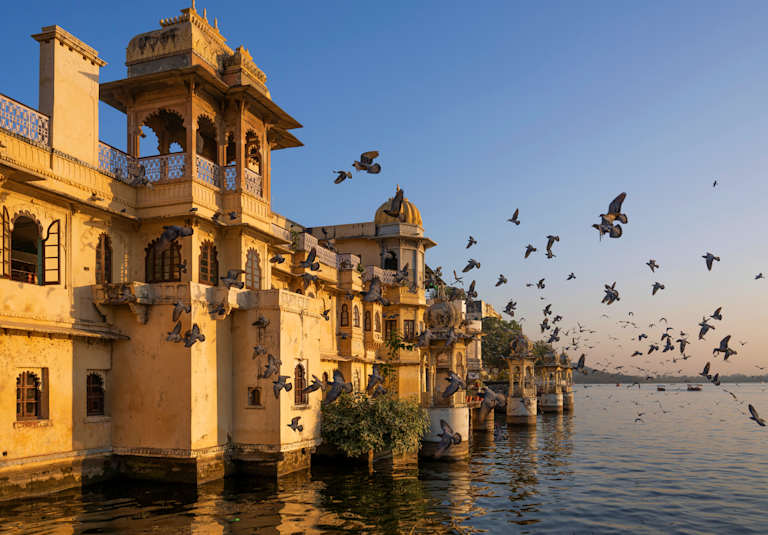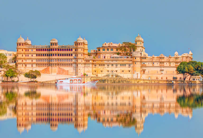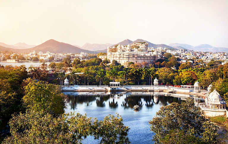 Découverte de la ville d'Udaipur, la ville blanche. Dans la matinée, visite de la ville : le palais surplombant le lac, le City Palace, long de 500 mètres, est un immense dédale de pièces, de salles, de cours, de jardins et de terrasses. Il a été construit sous le règne d'Udai Singh au XVIe siècle. Aujourd'hui, une partie est transformée en musée, une autre en hôtel (le Shiv Niwas) et le dernier est toujours habitée par les descendants du Maharana. Depuis le palais, vous avez une vue splendide sur le lac Pichola et ses deux îles, dont celle sur laquelle est construit le célèbre Lake Palace.
