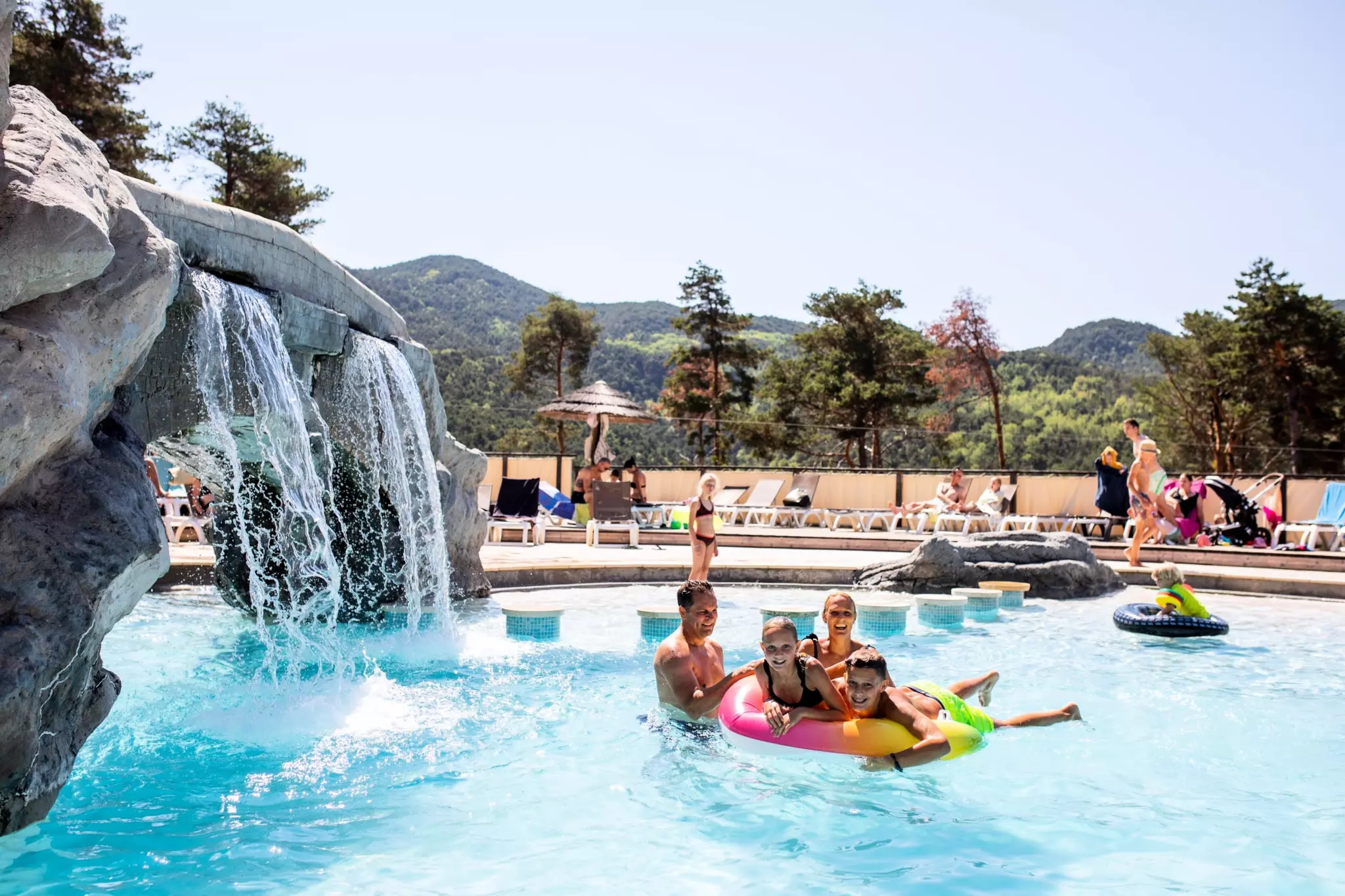 Restaurant avec terrasse Piscine avec pentaglisse à 3 chutes Espace fitness en plein air Court de tennis