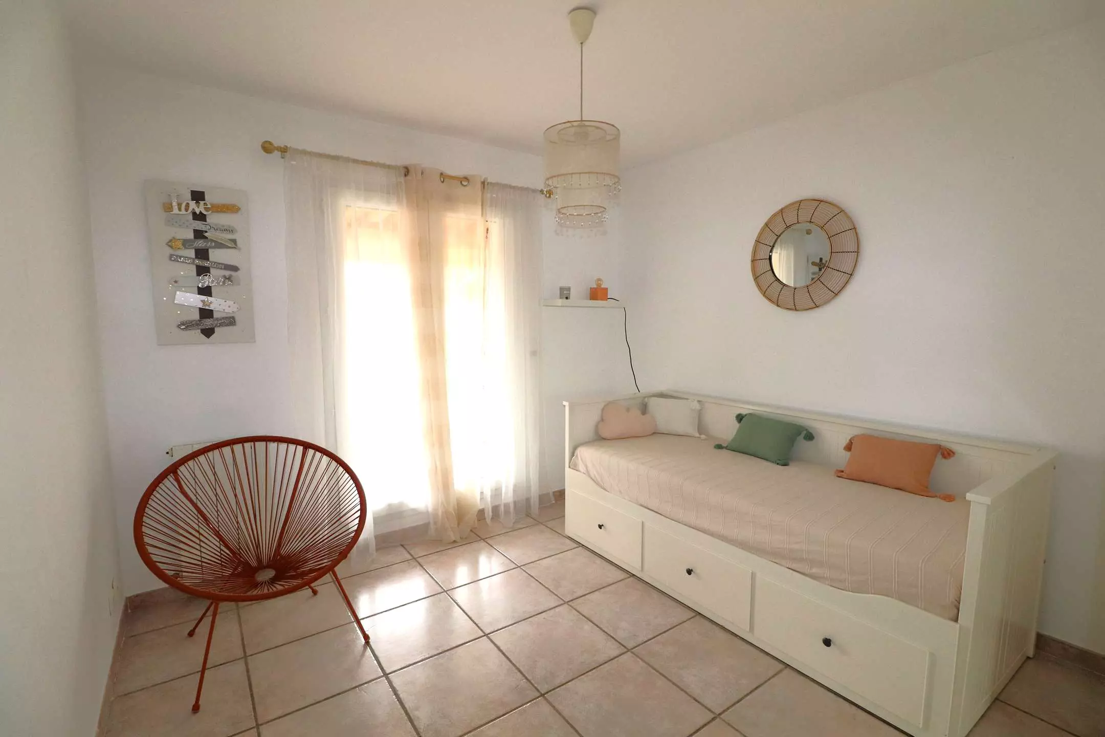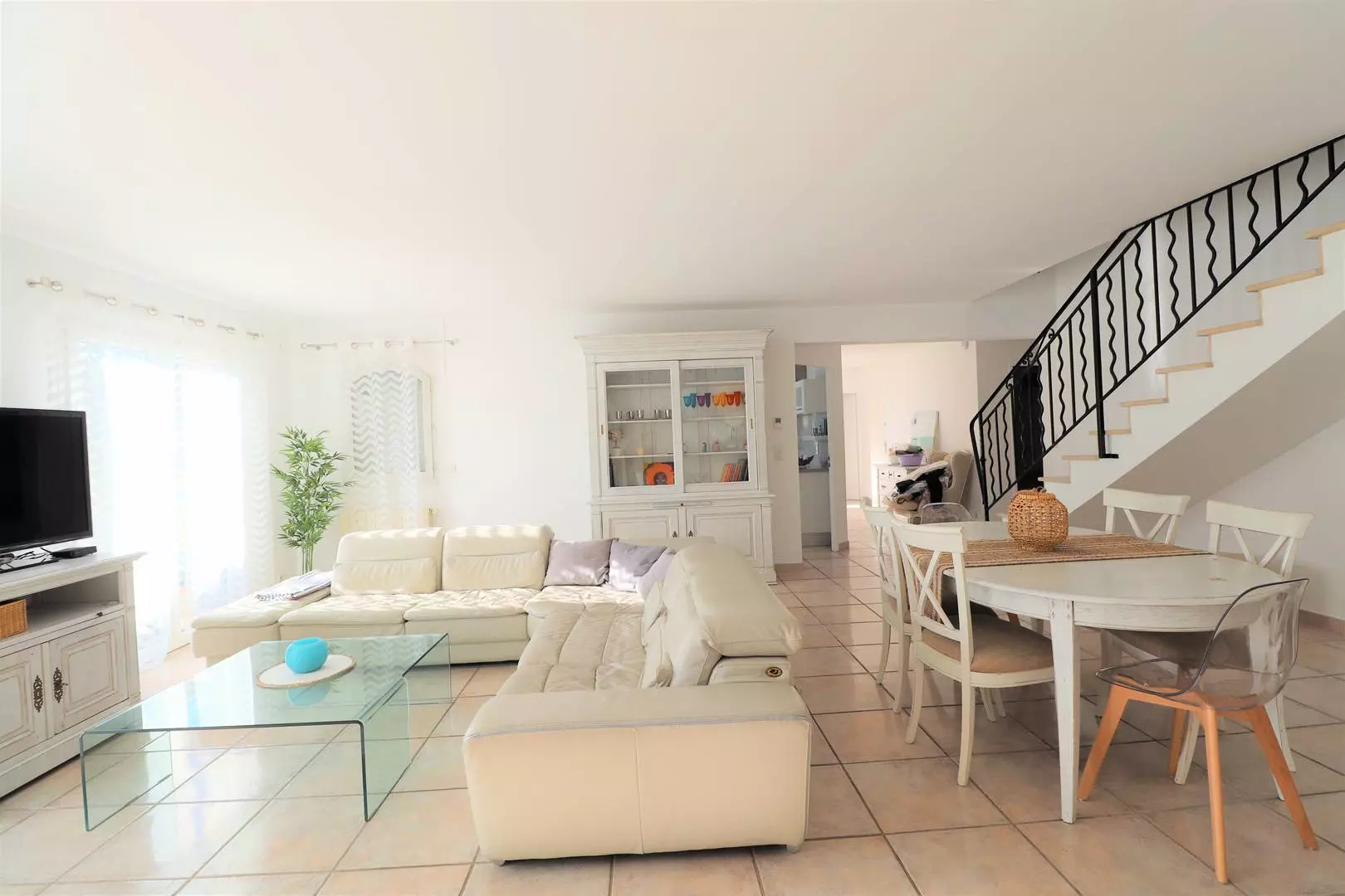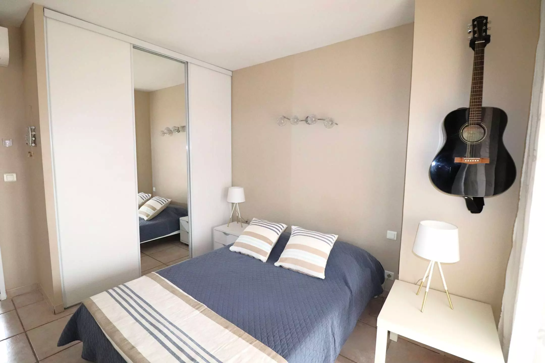 Cette villa se compose au rdc d'une entrée, cuisine équipée (lave-vaisselle, four, micro-ondes, plaques vitro.) donnant sur terrasse aménagée. Séjour de 41m² donnant sur la terrasse extérieure et la piscine, une chambre avec 2 lits simples et placards, une chambre avec 1 lit 2 personnes et placards. SDB, wc séparés. A l'étage : salle d'eau, wc séparés, une chambre composée d'un grand placard et d'un lit double, une autre chambre avec 2 lits simples et placards. Les 2 chambres donnent sur une terrasse extérieure de 10m². Climatisation dans chaque chambre sauf une avec ventilateur. 2 stationnements intérieurs et 1 à l'extérieur.