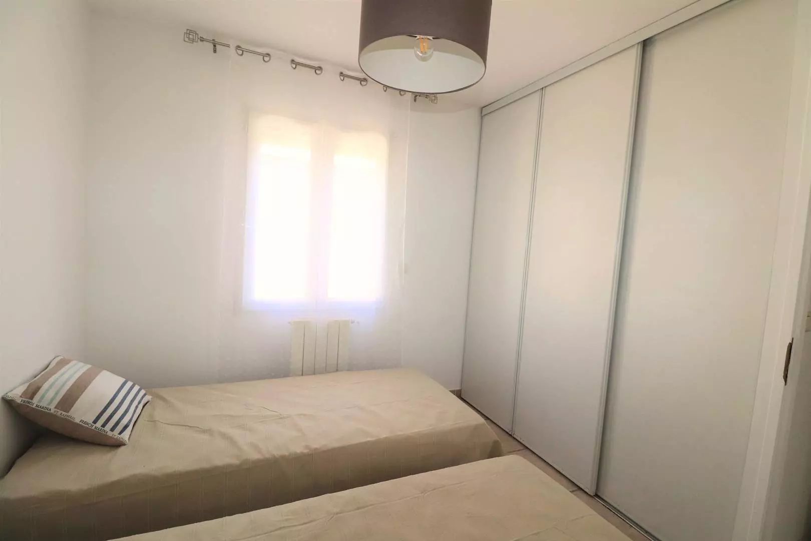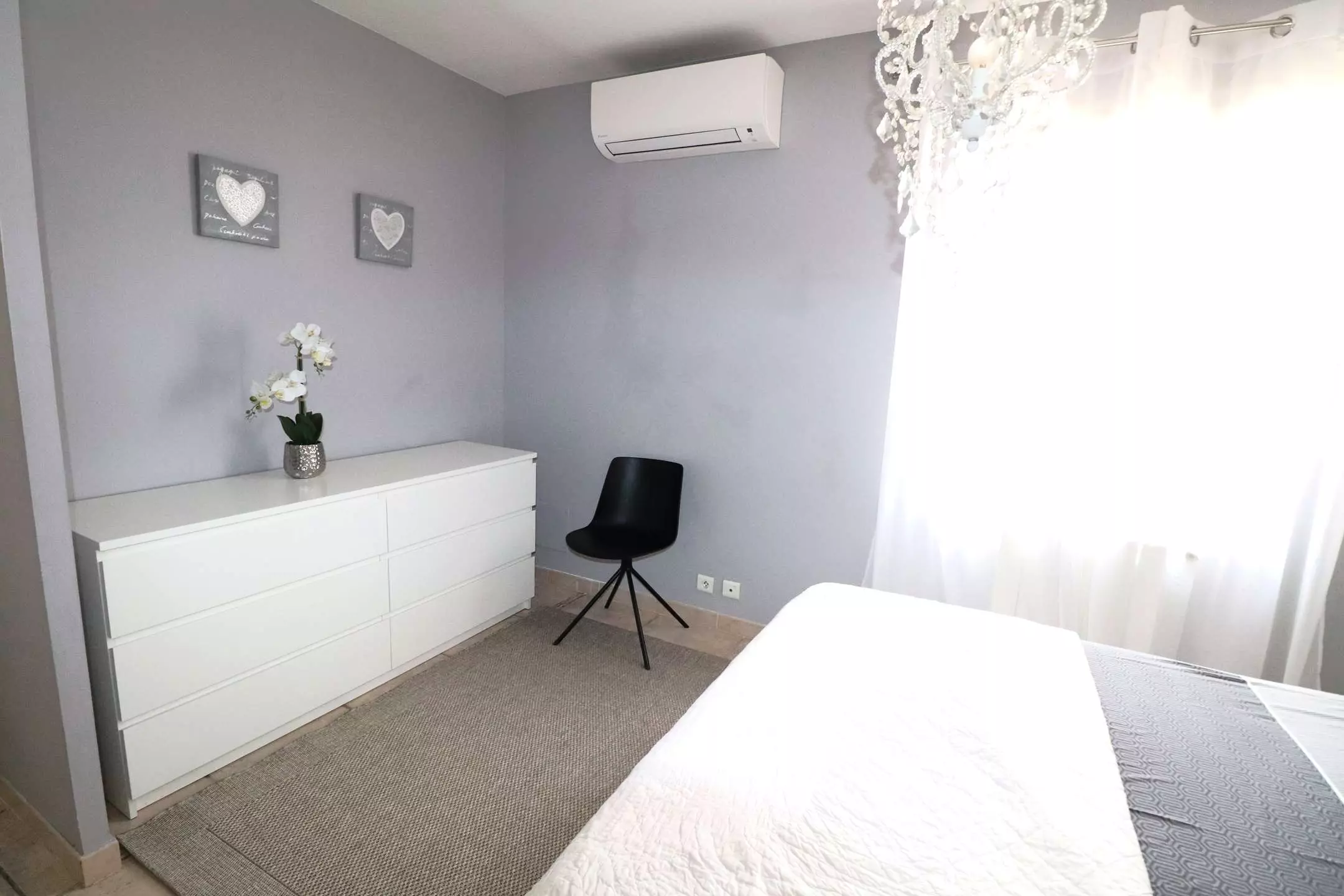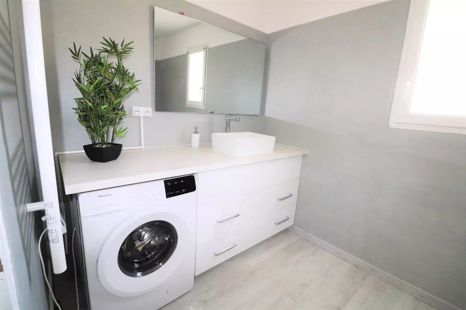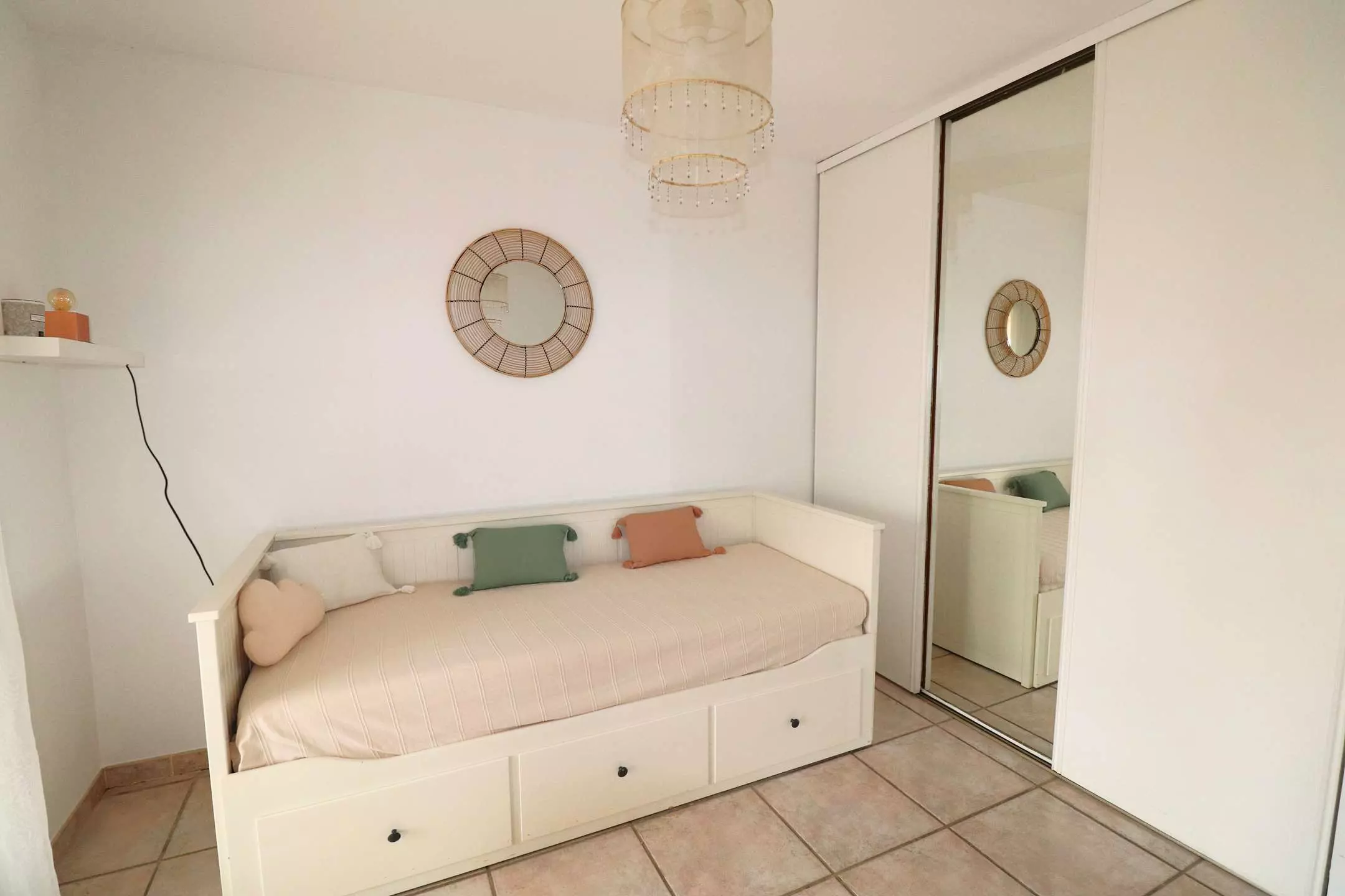 Cette villa se compose au rdc d'une entrée, cuisine équipée (lave-vaisselle, four, micro-ondes, plaques vitro.) donnant sur terrasse aménagée. Séjour de 41m² donnant sur la terrasse extérieure et la piscine, une chambre avec 2 lits simples et placards, une chambre avec 1 lit 2 personnes et placards. SDB, wc séparés. A l'étage : salle d'eau, wc séparés, une chambre composée d'un grand placard et d'un lit double, une autre chambre avec 2 lits simples et placards. Les 2 chambres donnent sur une terrasse extérieure de 10m². Climatisation dans chaque chambre sauf une avec ventilateur. 2 stationnements intérieurs et 1 à l'extérieur.