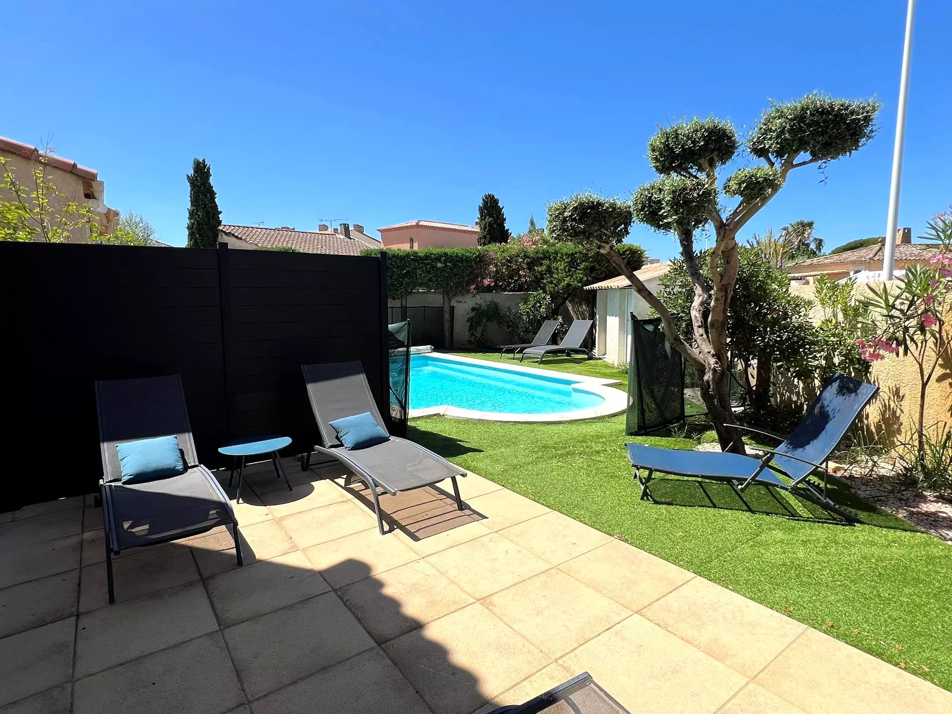 Classée 3 étoiles - Maison de vacances 5 pièces avec piscine privée RIVE DROITE LE BOUCANET pour 6 à 8 pers. 500m de la plage et 600m des commerces.