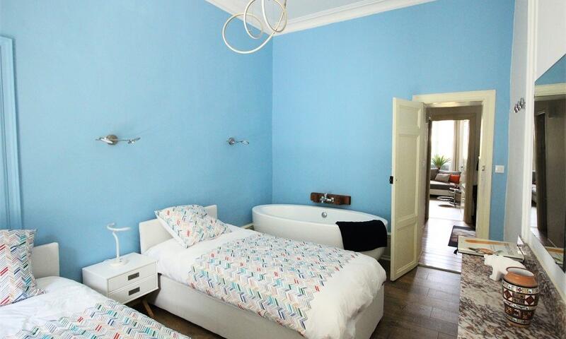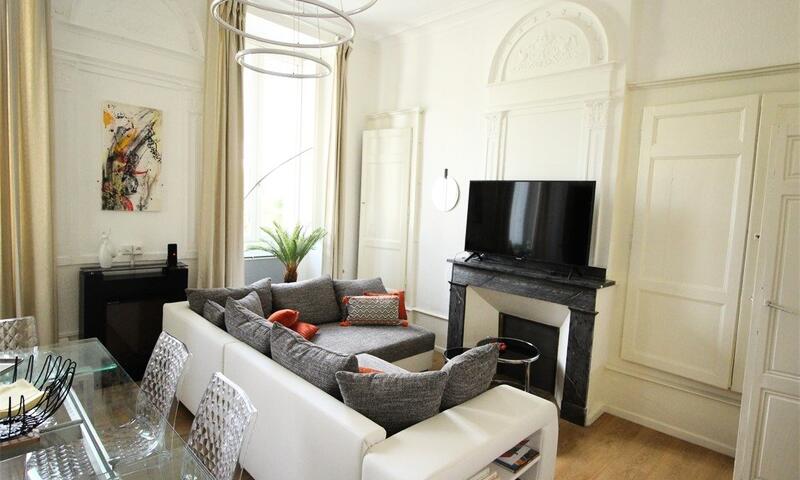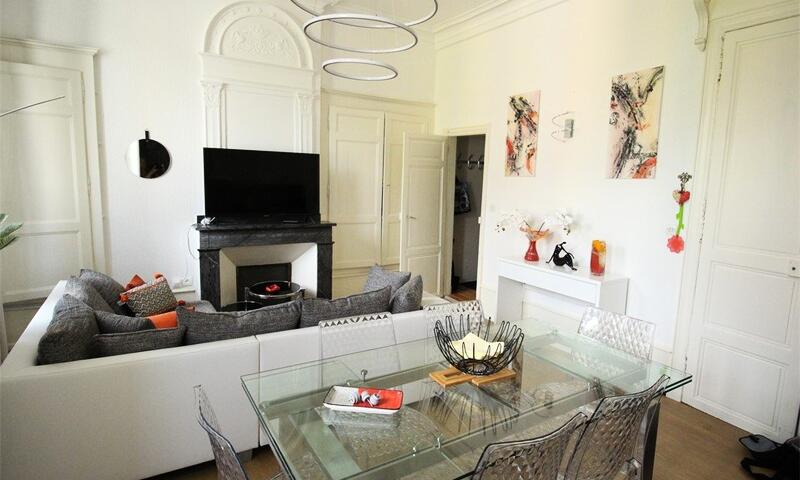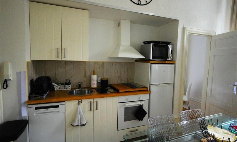 Cet appartement comprend une cuisine intégrée (four, micro-ondes, lave-vaisselle, plaque induction 3 feux, cafetière nespresso, bouilloire, grille pain) donnant sur un séjour avec canapé d'angle, table, cheminée électrique chauffante, téléviseur, une chambre avec un lit 160 rangement penderie, téléviseur, une autre chambre avec 2 lits jumeaux en 90 placard et une baignoire, une salle d'eau avec douche et wc. un dégagement avec lave-linge. au sol du parquet.
