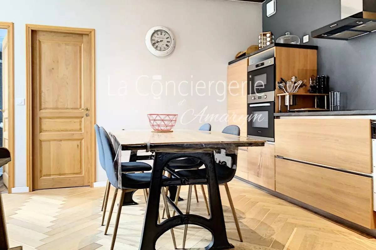 L’appartement, entièrement rénové pour offrir tout le confort moderne, conserve l’âme et le cachet de son histoire. Dès votre arrivée, vous serez enveloppé dans une ambiance chaleureuse et accueillante.