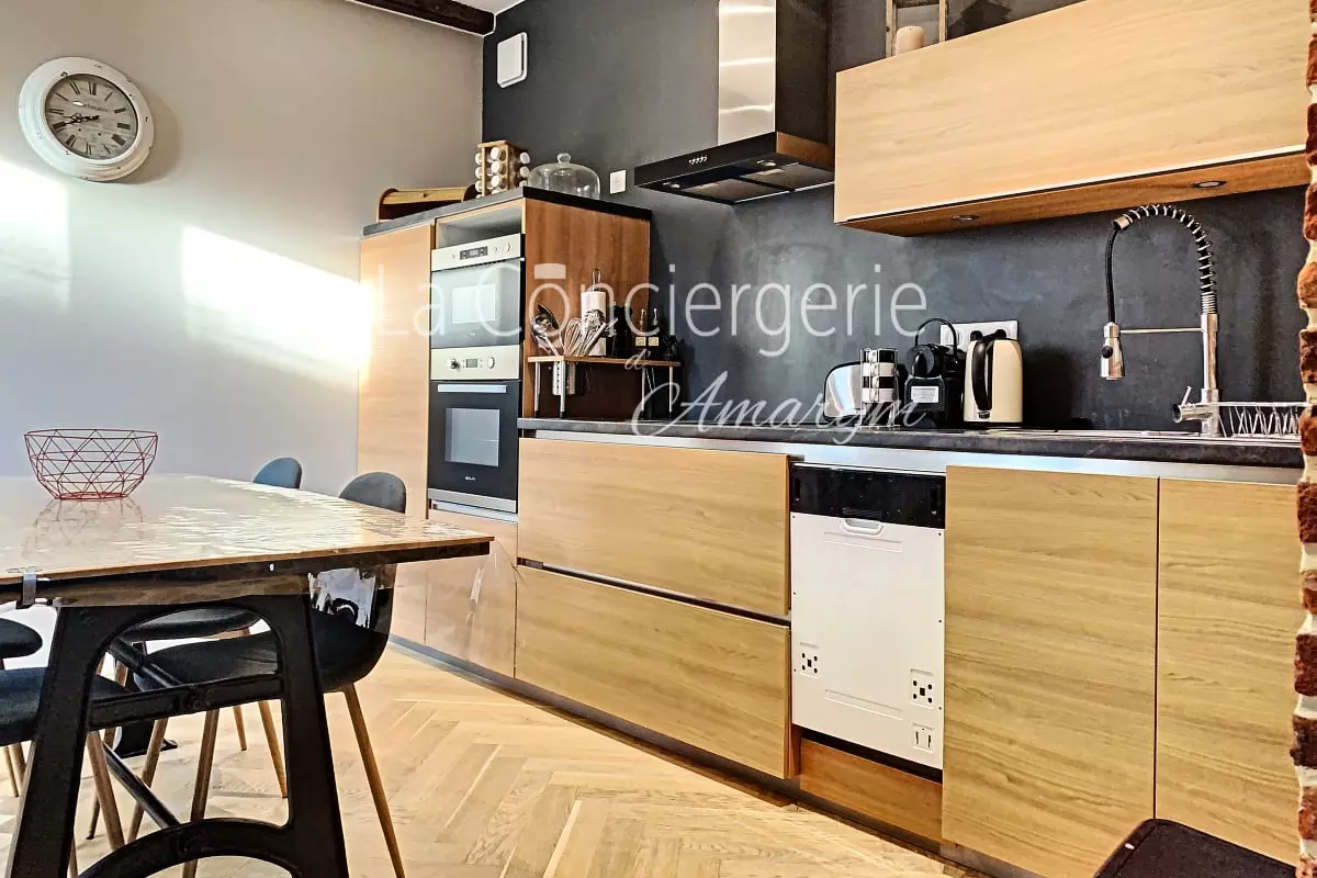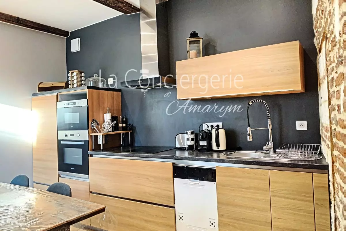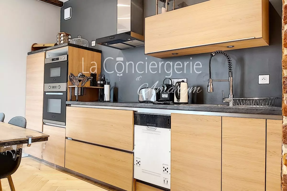 Une cuisine moderne et fonctionnelle : Parfaitement équipée, elle vous permettra de cuisiner comme à la maison. Avec ses équipements électroménagers récents, tout est pensé pour simplifier votre séjour.
