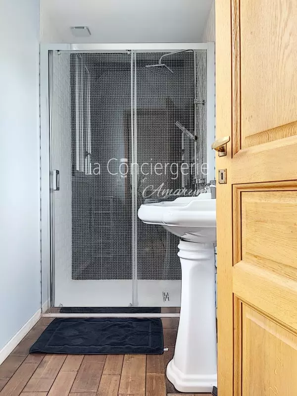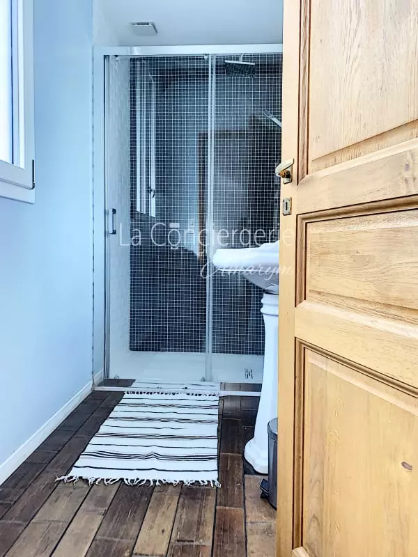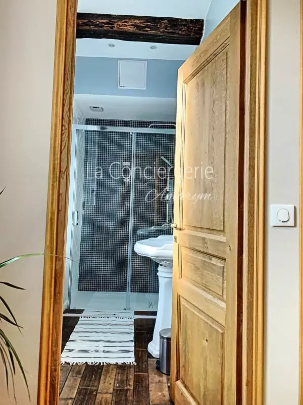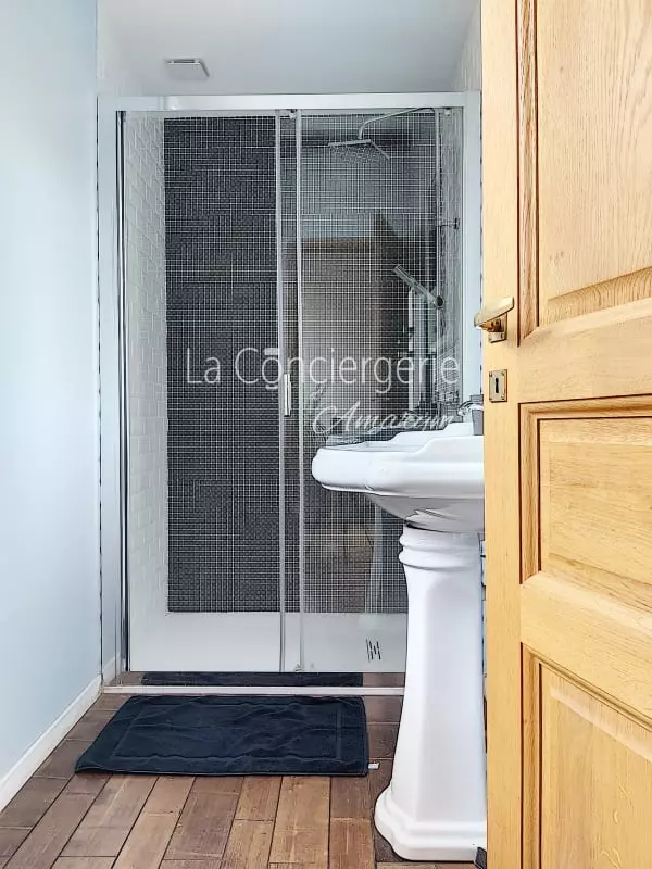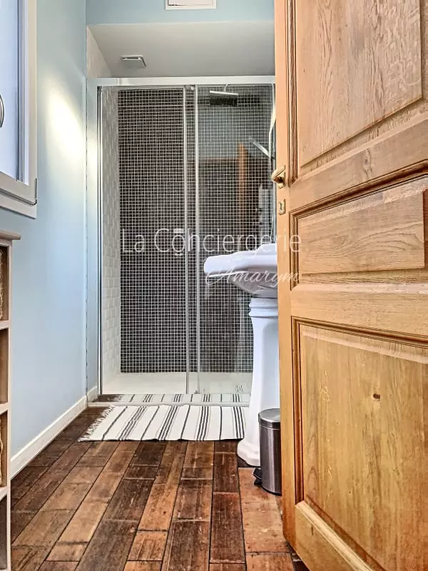 Une salle d’eau pratique et raffinée : La salle d’eau dispose d’une douche à l’italienne spacieuse et d’un meuble vasque design. Les toilettes séparées offrent un confort supplémentaire.