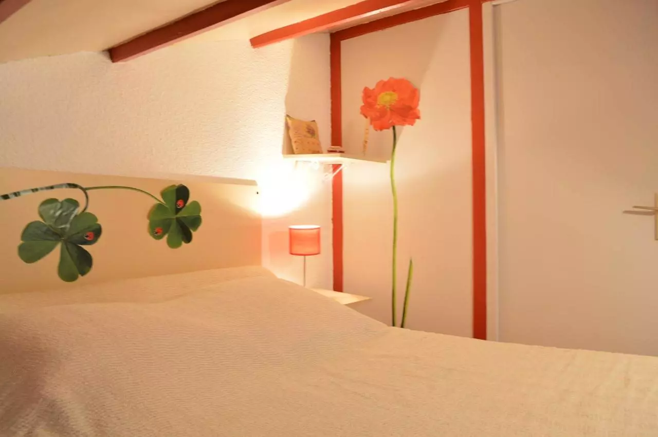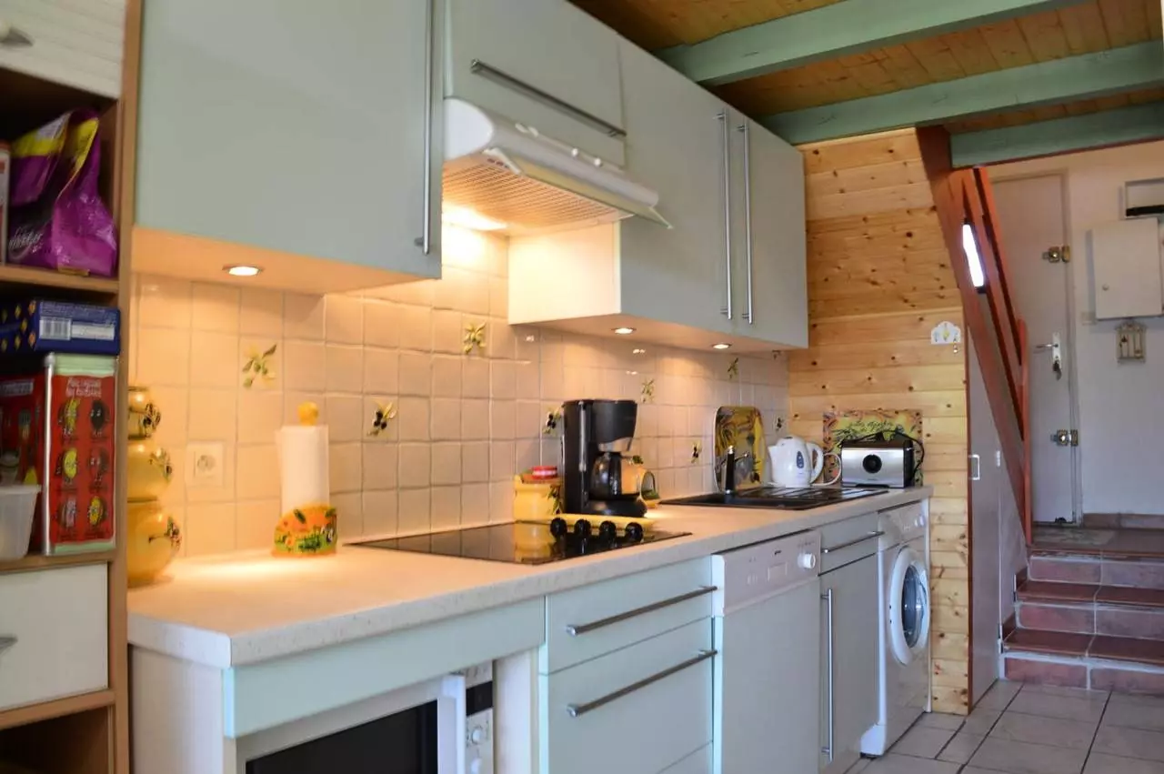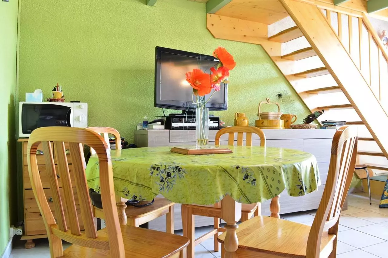 Cette location de maison de vacances comprend un séjour avec canapé et télévision (sous réserve d'une bonne réception) , un coin cuisine équipé ,une chambre avec un lit mezzanine deux personnes, et une salle d'eau avec WC. A l'étage, se trouve une chambre et une mezzanine climatisée avec accès indépendant.