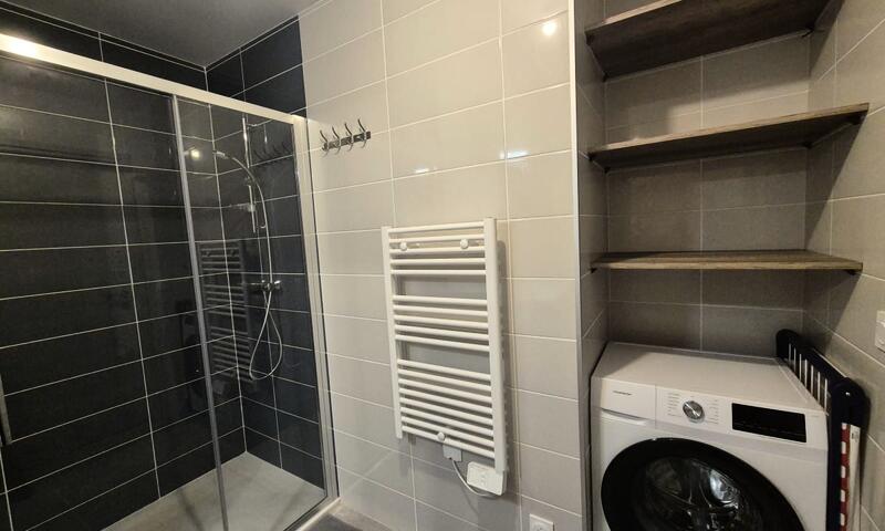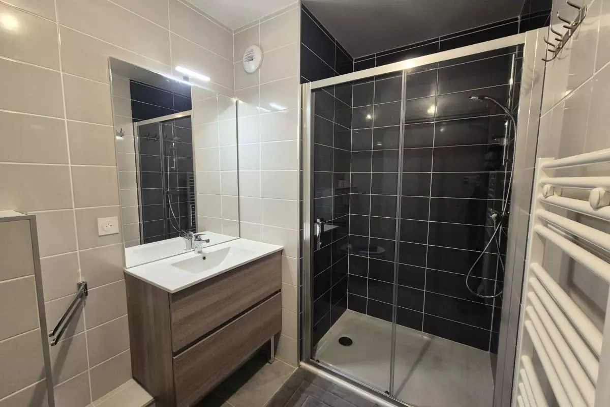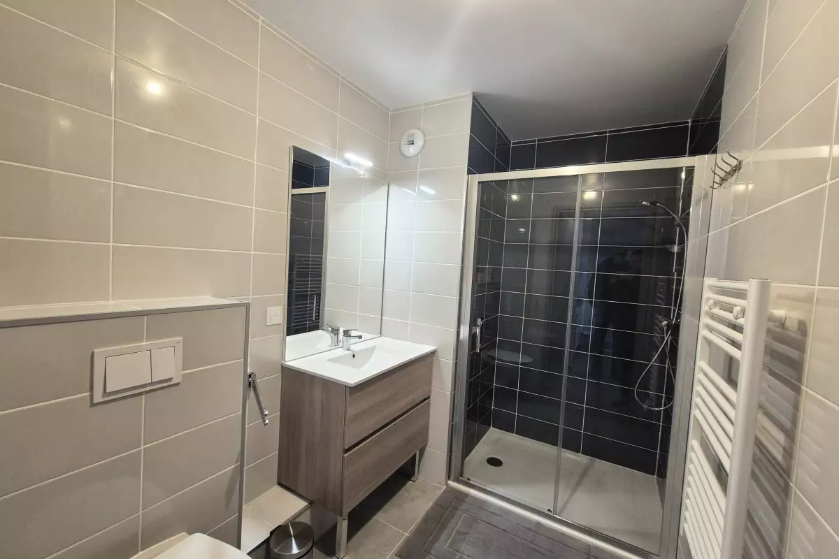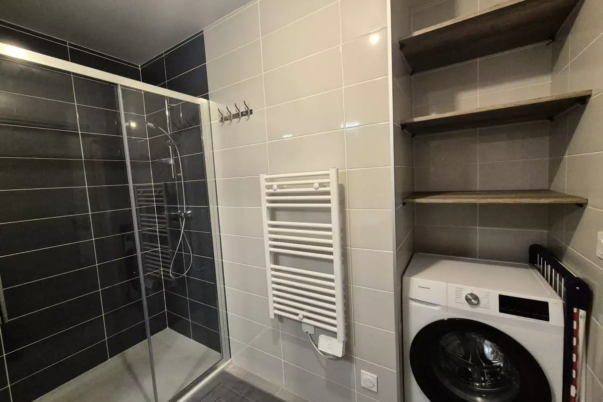 - Salle de bain : Douche à l’italienne, machine à laver, et WC intégré.