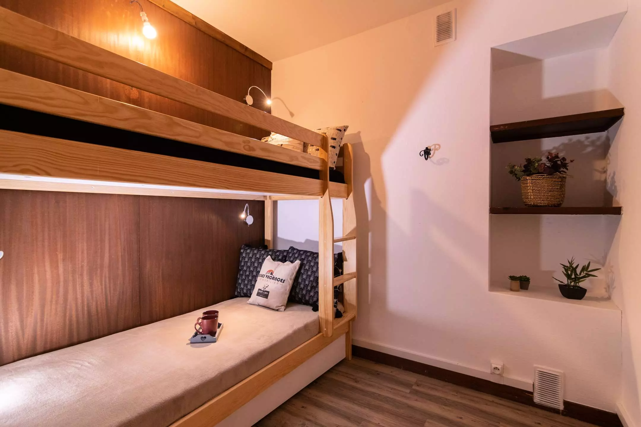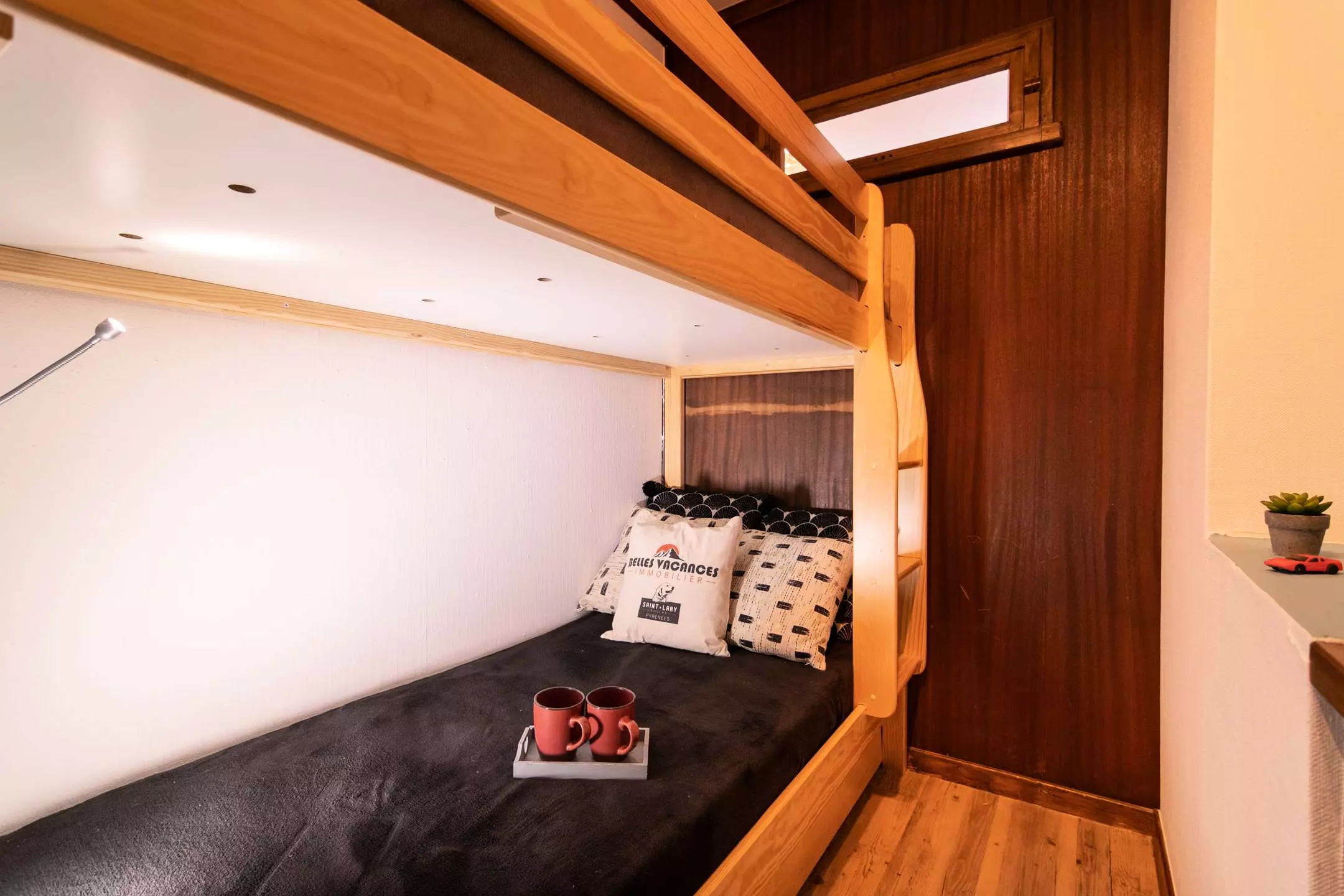 De deux cabines avec chacune 2 lits superposés(2 en 90 ) -