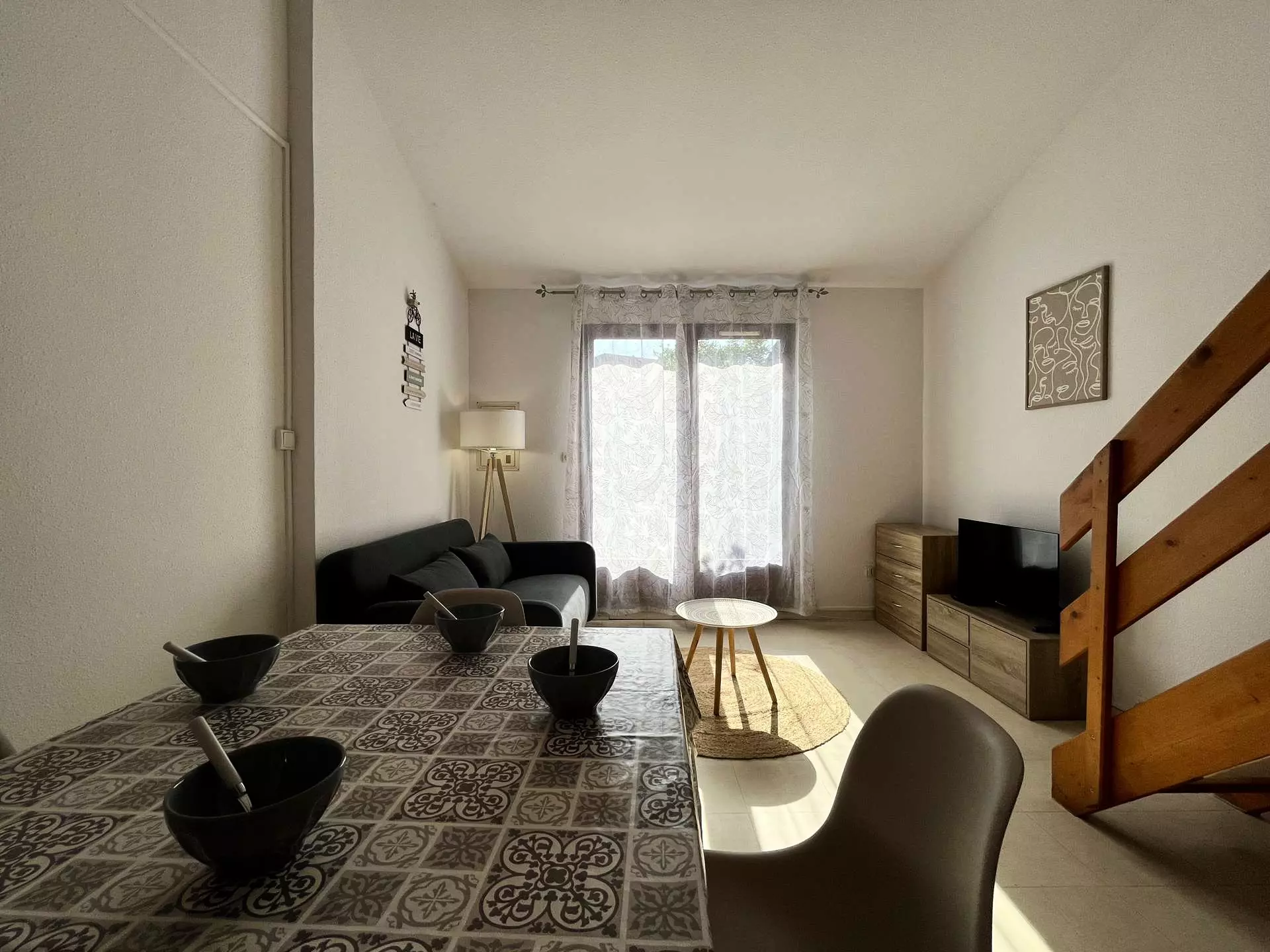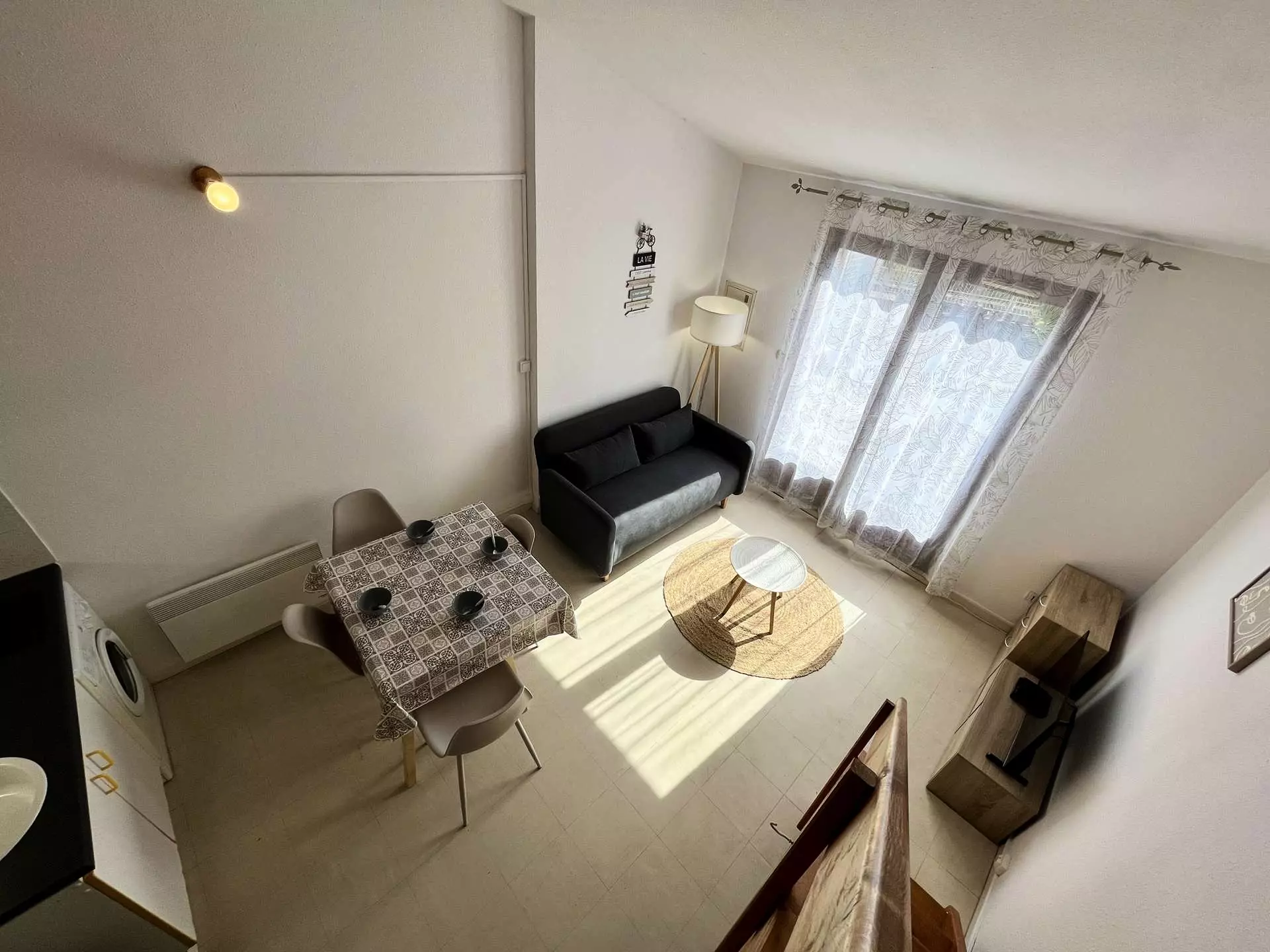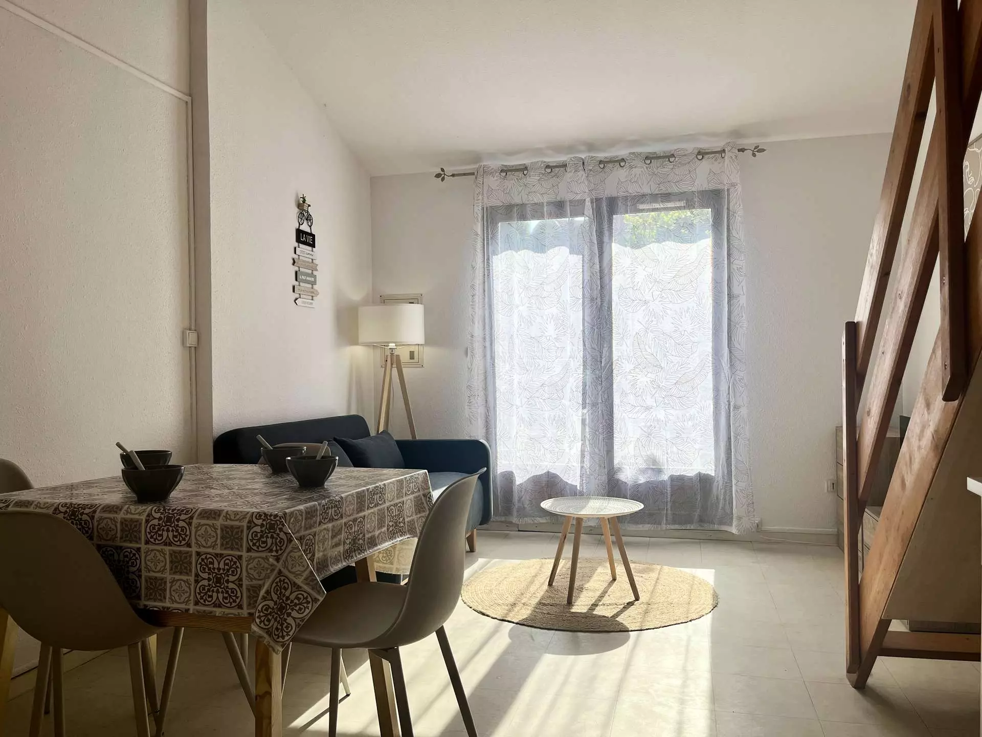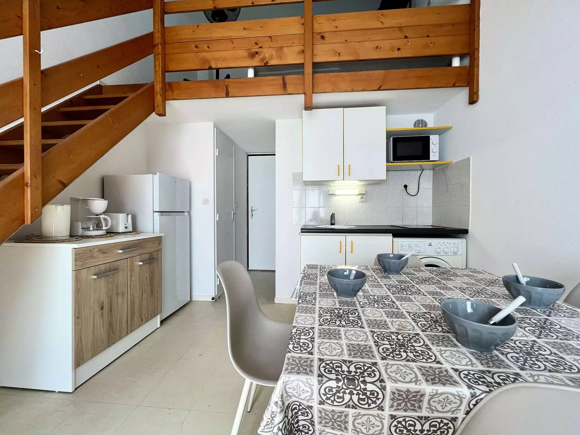 Cette location proche de la plage entièrement rénovée est aménagée en un séjour canapé convertible deux places, son espace repas avec coin cuisine équipé, d'une salle d'eau et wc séparés. A l'étage une mezzanine ouverte avec deux lits d'une personne. Agréable terrasse pour prendre vos repas.