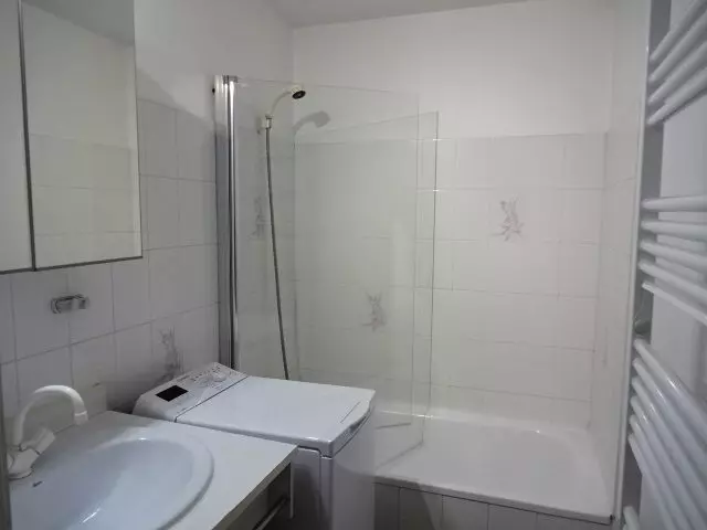 Une chambre avec un lit en 140 et placard de rangement, une salle d'eau avec douche italienne et un lave-linge et un wc séparés. Casier à ski et place de parking extérieur. WIFI dans l'appartement.